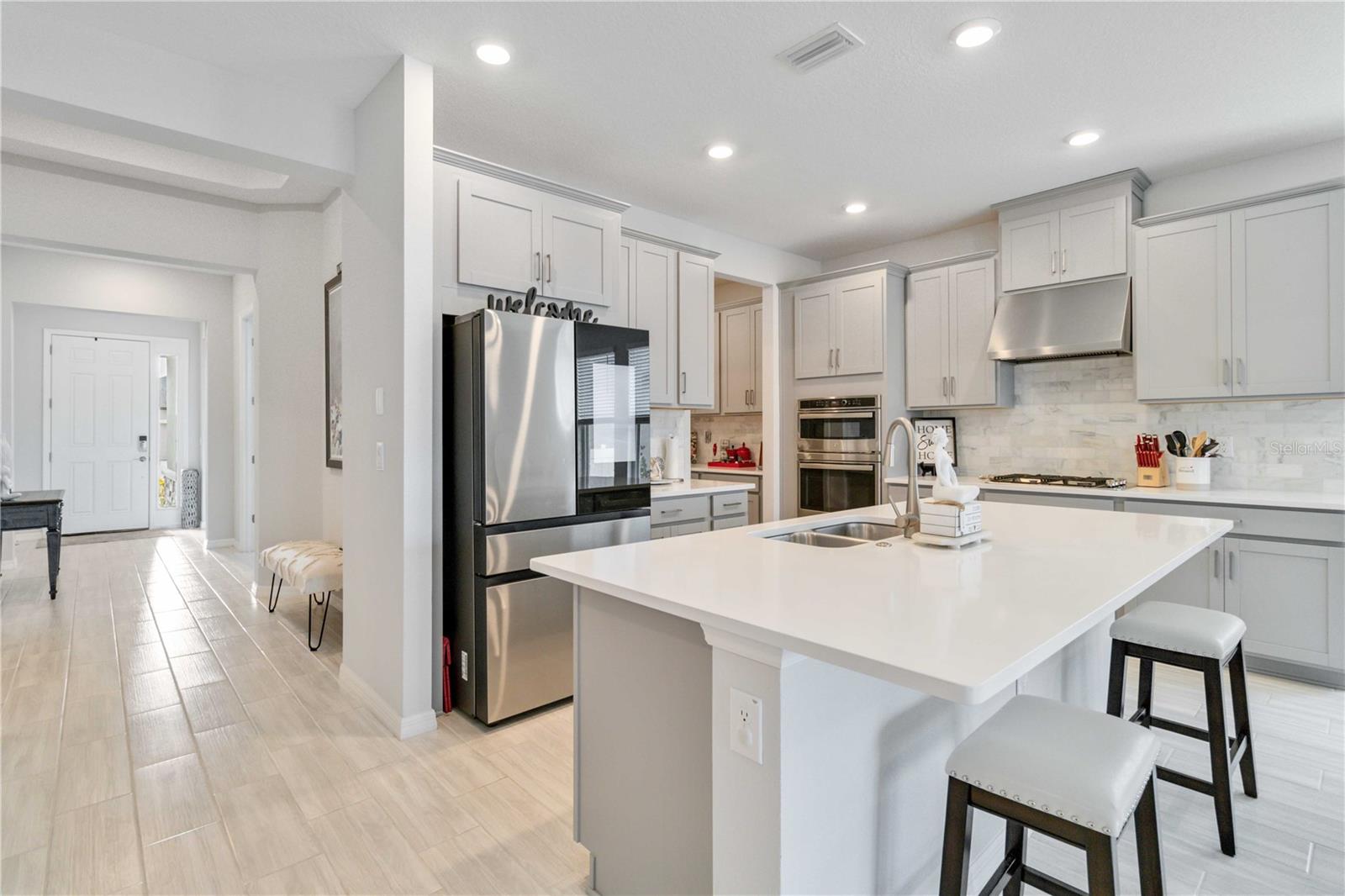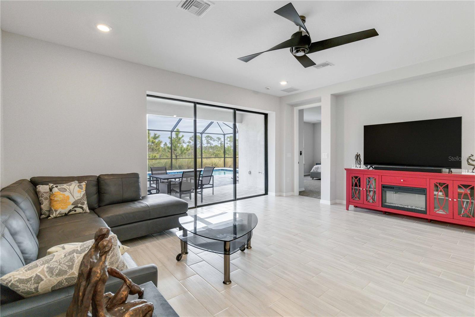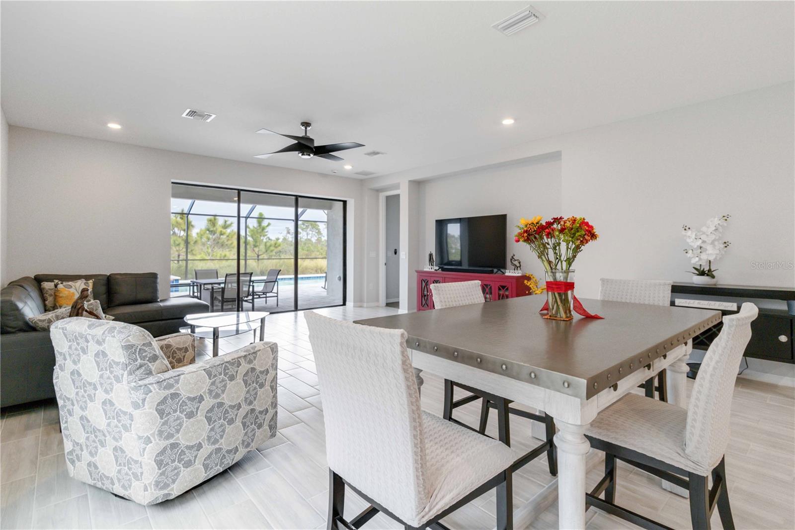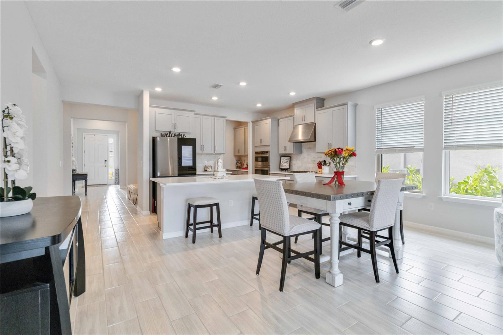 PRESERVE VIEW! HEATED CUSTOM SALT WATER POOL! 4 MILES TO THE BEACH. This stunning Antigua model by Taylor Morrison is located in the gated community of Palmero offering 2,400 sq. ft. of living space and 3,090 sq. ft. of total of luxury living with 4 bedrooms and 3 full bathrooms. The highlight of this home is the outdoor entertainment area custom designed by the seller with no expense spared. This piece of paradise features a custom 14x28 heated saltwater pool and spa, surrounded by a 28' x 40' caged paver deck and a natural preserve surrounded by Oscar Scherer Park for ultimate privacy. The pool and spa also feature a remote control system for easy control and for added enjoyment the lanai has the connections in place for an outdoor kitchen. Inside the home you will find an exceptional open floor plan accented with eight-foot doors and crown molding. A gourmet kitchen with gas stove, vent hood, upgraded refrigerator and center island. The chef in the family will love the additional coffee bar and oversized pantry room. This home also offers a flex room with French doors that is currently used as an office but also could be a wonderful hobby room or den. There are 4 bedrooms designed to promote privacy for everyone. The front bedroom serves as an ensuite with a generous bedroom and full bath, while central in the home you will find two additional guest bedrooms that share a full bath. The Master Bedroom, located at the back of the home, provides serene views of the pool and wildlife. The Master Bathroom includes dual sinks, a walk-in shower, and a deep soaking tub, with access to a custom walk-in closet and the utility room for added convenience. Built to 2023 code standards and situated in a coveted FLOOD ZONE X, the home offers full hurricane protection and peace of mind. Although it is just minutes to the Gulf beaches, this 2023 new construction sits in a high and dry neighborhood with no flooding. Palmero offers a range of amenities, including a resort-style pool, spa, volleyball and basketball courts, a playground, and fire pit, all with a LOW HOA and NO CDD fee. The pet-friendly community also has its own dog park. Close to highly-rated schools like Pine View School for the Gifted and Laurel Nokomis School, as well as the new Sarasota Memorial Hospital of Venice, this home combines luxury and convenience.