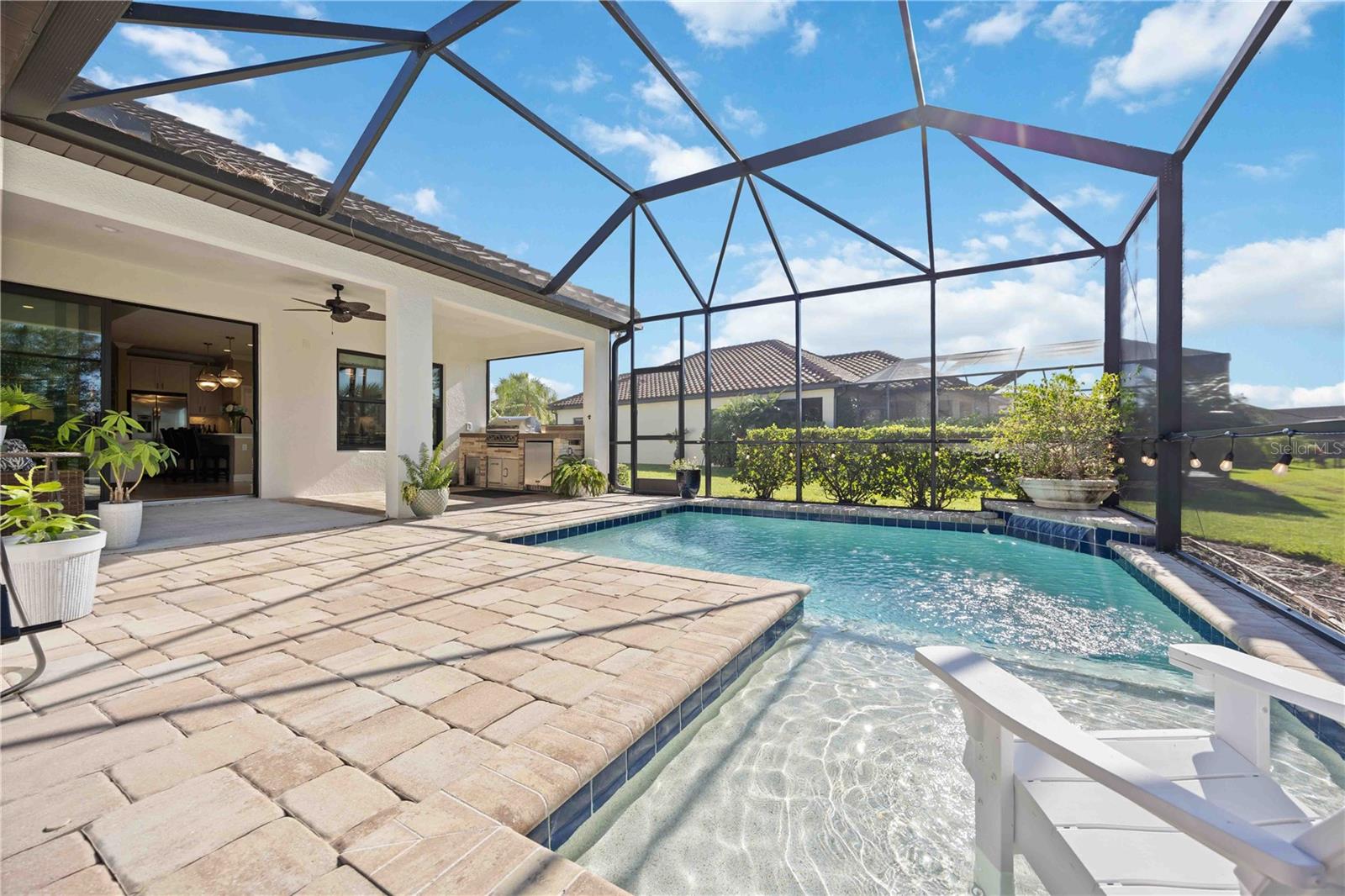 PRICE REDUCTION!! HEATED POOL, OUTDOOR KITCHEN, GENERATOR, IMPACT WINDOWS, PRESERVE VIEW, PREMIUM LOT, NEARLY NEW AND MOVE IN CONDITION!! Don't waste time and money by buying a boring new model. EVERYTHING YOU WANT IS RIGHT HERE WAITING FOR YOU TO MOVE IN! Luxurious Pool Home in Vicenza! Welcome to your private retreat in the highly sought-after gated community of Vicenza in Nokomis, where luxury meets convenience. Built in 2020 and impeccably maintained, this stunning 3-bedroom, 2.5-bath home plus office/hobby room (or formal dining room) sits on an oversized premium lot with serene preserve views and added privacy along a community easement. Step inside to discover crown molding throughout, hardwood flooring in the main living areas, and a bright open floor plan designed for modern living. The gourmet kitchen features 42” upper cabinets with crown molding, quartz countertops, a large center island, and a spacious walk-in pantry—ideal for the home chef. Enjoy natural gas cooking with a gas range, dryer, pool heater, and tankless hot water heater adding both efficiency and comfort. The inviting living room showcases built-in custom shelving, an electric fireplace, and designer lighting and fans that elevate the home’s refined style. The primary suite offers a true retreat with stylish barn doors on the dual closets, custom built-in shelving, and a spa-inspired ensuite bath. Experience Florida living at its finest in your heated saltwater pool complete with waterfall and fountain features, surrounded by lush tropical landscaping and an outdoor kitchen with built-in grill, refrigerator, and sink—perfect for entertaining year-round. The home is equipped with impact windows and doors and a natural gas generator for peace of mind. Located in a no CDD, low HOA community, residents of Vicenza enjoy resort-style amenities including a sparkling community pool and spa with cabanas, clubhouse with social activities, pickleball and bocce ball courts, scenic walking trails, and a paw park. Conveniently close to the Myakka River, multiple Gulf beaches, downtown Venice, I-75, and top dining and shopping. Not in a flood zone. Furniture available under separate contract for an effortless move-in. Rare opportunity to own a pool home with premium upgrades in one of Nokomis’ most desirable communities!