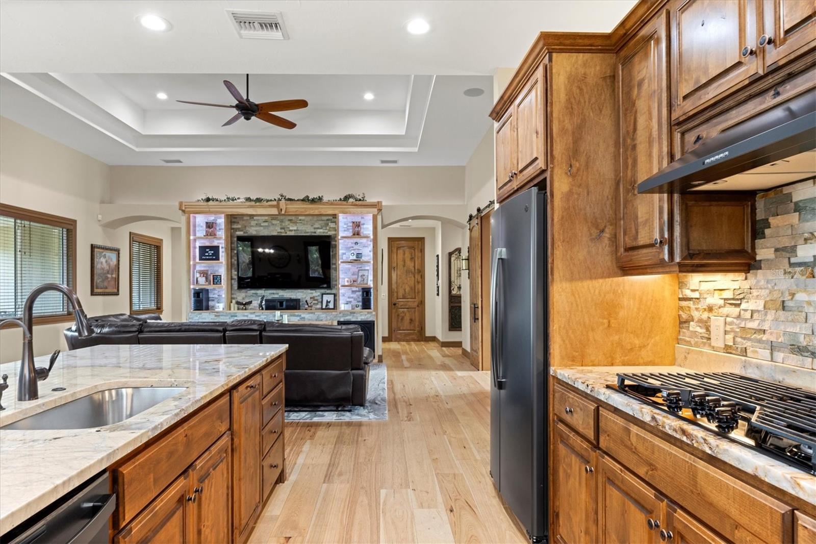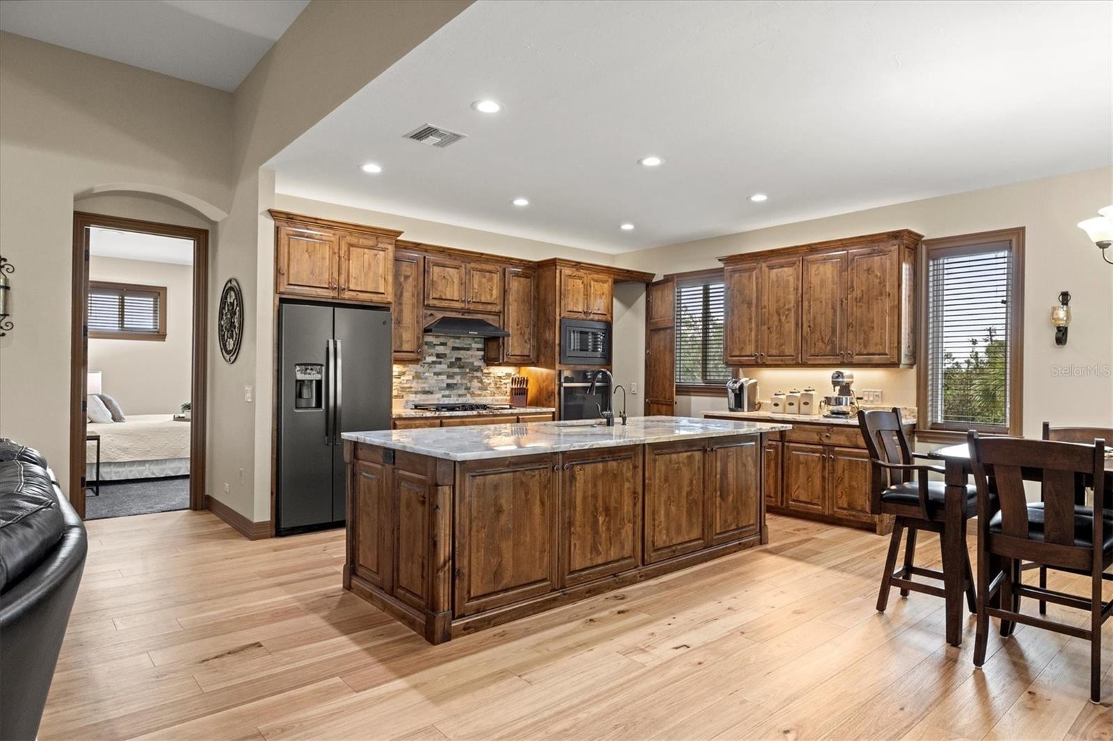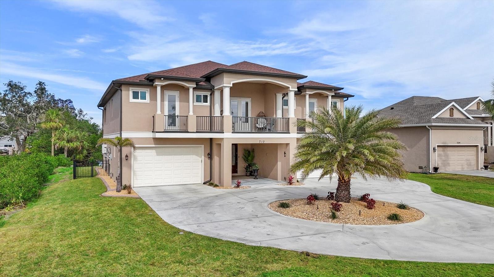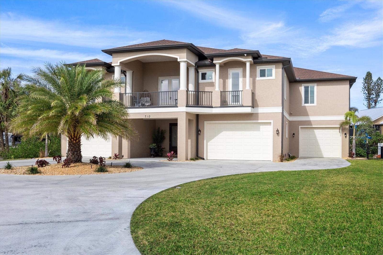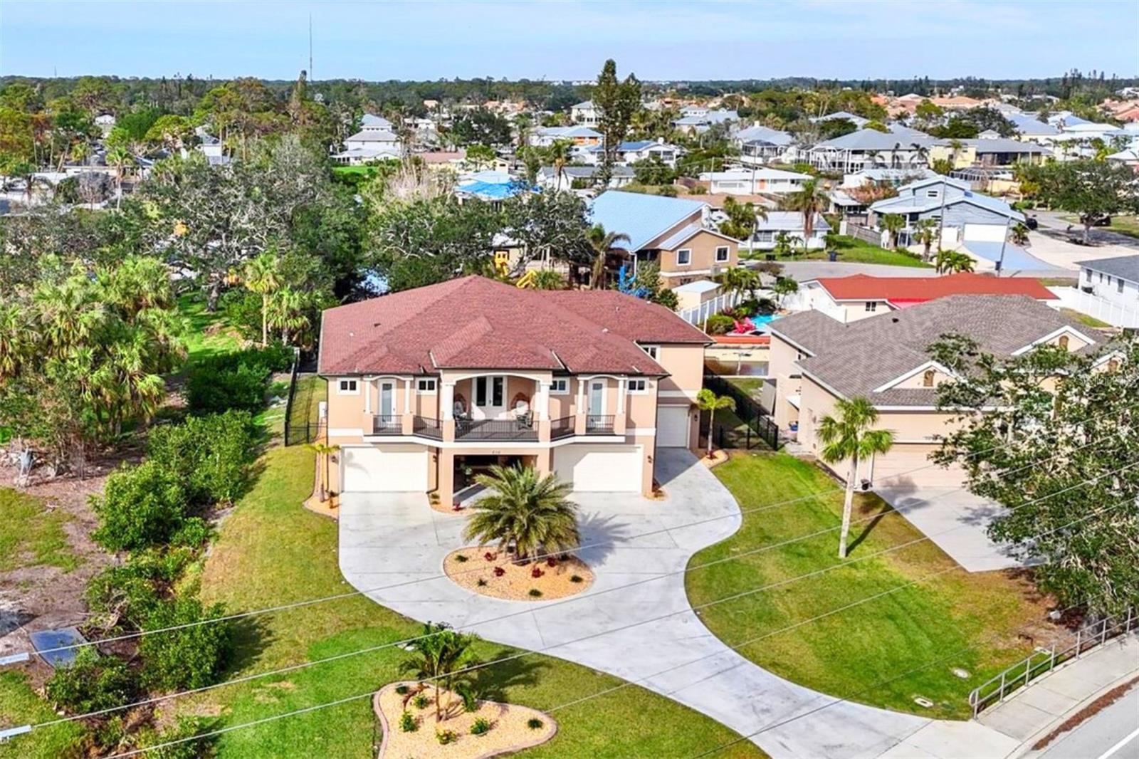 Expansive Estate on Nearly Half an Acre, Just Minutes from Nokomis Beach and Offering Easy Boating Access to the Gulf of Mexico! This exceptional 2020-built home offers four bedrooms, three and a half baths, and a spacious three-car garage, perfectly designed for luxurious coastal living. Why wait 3-5 years to build when you can move right into this home and start living the Florida lifestyle? Built by a renowned builder as his personal residence, this home leaves no detail overlooked, featuring concrete exterior wall construction on both floors designed to exceed Florida Building Codes with added protection against flooding and wind resistance up to 180 MPH, all windows and doors are impact resistant, there is a whole home standby Generac generator, and spray foam insulation. A grand circular driveway and mature landscaping set the stage for this impressive residence. Enter the lower floor through double leaded glass doors into a beautiful foyer with staircase and versatile flex rooms, currently, these spaces include a media room, music room, and den—plus, an elevator closet is already in place for future convenience. On the main floor, you'll find a spacious open living area with beautiful Hickory and Acacia wood flooring, a tray ceiling, and a built-in entertainment center. The kitchen and dining area features a large center island, alder wood cabinetry, translucent granite countertops that allow under-cabinet lighting to glow from beneath, a hidden walk-in pantry, a gas cooktop, and a stone backsplash. An adjoining office with custom built-ins, separated by dual barn-style doors for both style and privacy, with French doors that open to the veranda. The spacious primary ensuite bedroom has a tray ceiling, private patio access, and a massive walk-in closet with custom shelving. The luxurious primary bathroom has a soaking tub, a tiled Roman-style shower with multiple showerheads, and an oversized dual vanity with granite countertops. Both guest bedrooms are ensuite, with both offering private patio access and a walk-in closet - perfect for family and guests. The beautifully appointed laundry room includes ample granite countertop space, cabinets, and a utility sink. Step through one of the access doors to the upper patio area, where you'll find a spacious, relaxing spot that overlooks the backyard and canal, a great place to unwind and enjoy grilling your fresh catch after a day of fishing. The canal borders the property with a concrete sea wall, with water depth of approximately 3-4' at low tide. Just beyond, Lyons Bay has been dredged all the way to the Venice Jetties, offering easy access to nearby sandbars and waterfront restaurants right from your backyard. There is plenty of space for a pool, allowing you to easily create your own outdoor oasis. Additional highlights include underground electric, a 500-gallon underground propane tank, a well and irrigation system, a fenced backyard, 8' tall doors throughout, custom trim and casings on all windows, a whole-home audio system, security system, central vac, and pre-installed electrical conduit and water lines for a future boat lift. Beyond the stunning home, you’re just a 5-minute walk to the beach, restaurants, tiki bars, and conveniently located near I-75 and the Legacy Trail. This home must be seen in person to fully appreciate all of its incredible details and features. Contact us today to schedule your private showing.