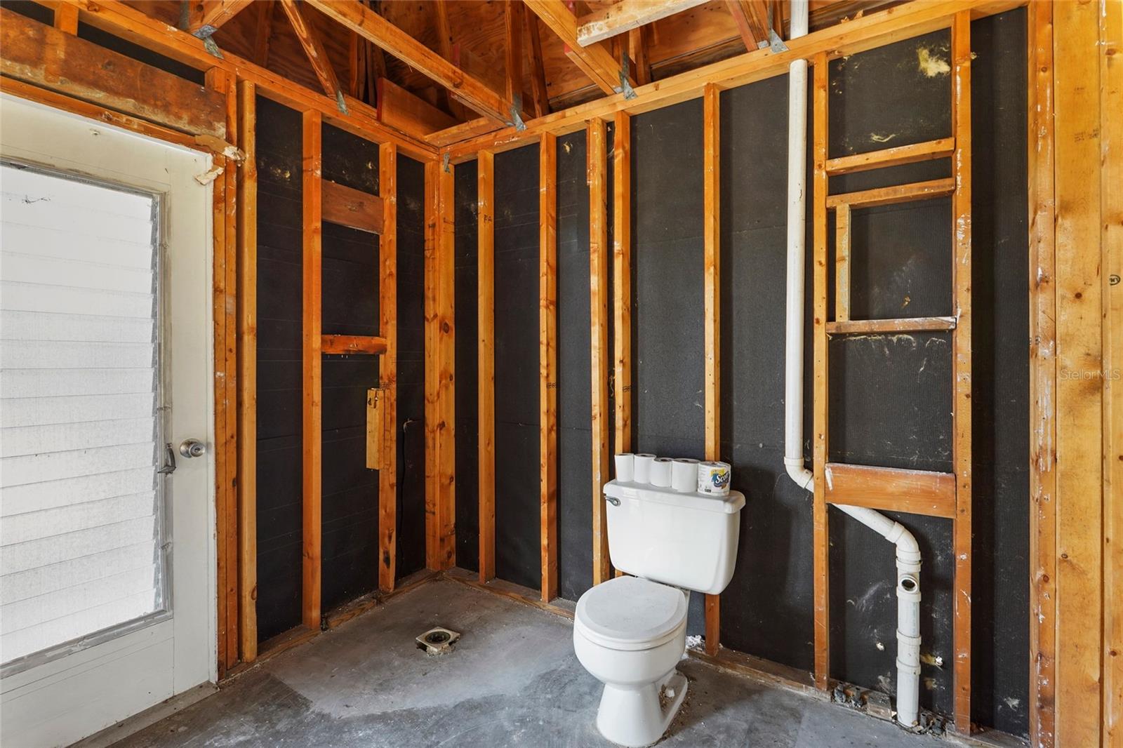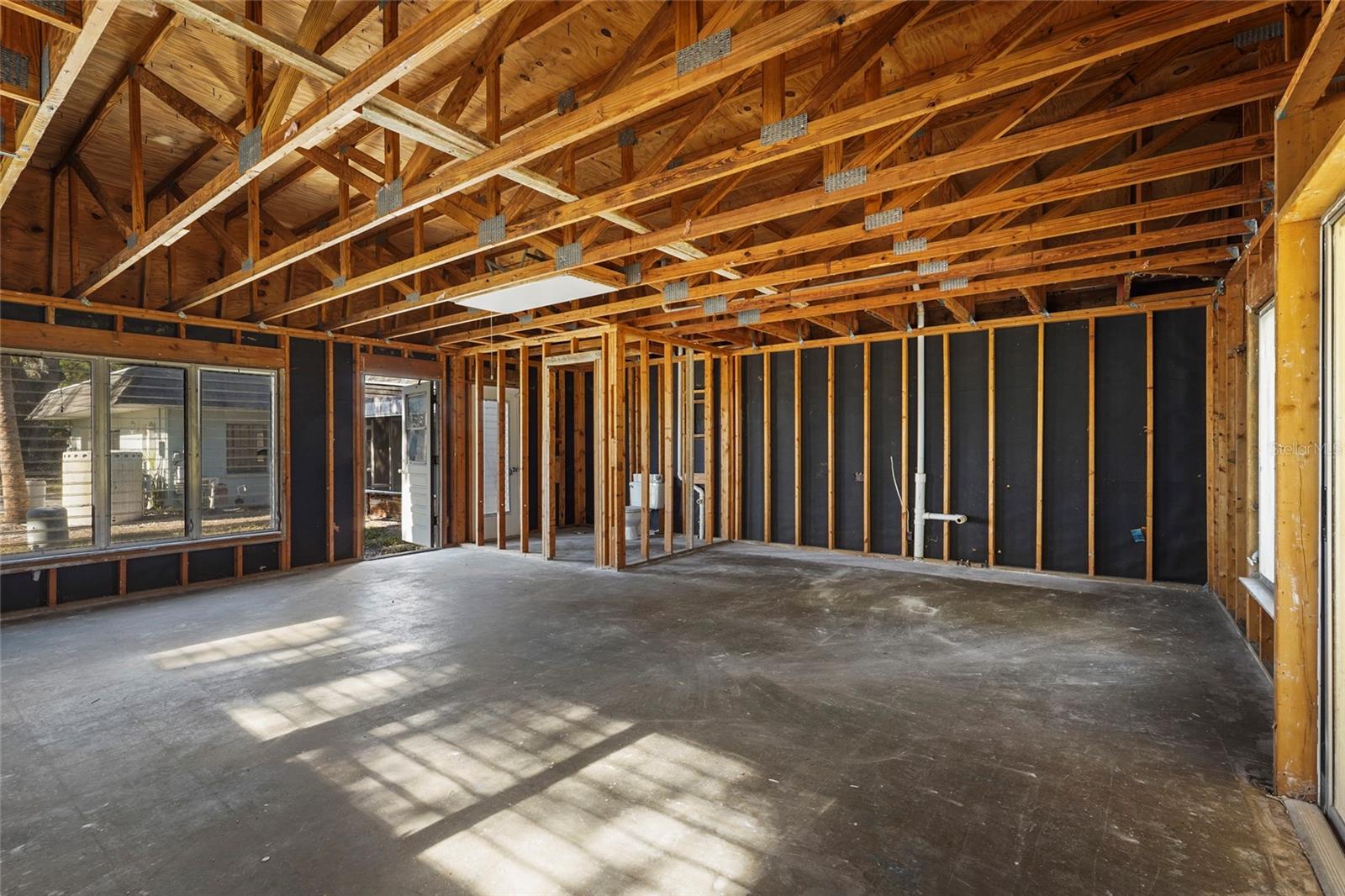 Rare opportunity to acquire a 1-acre, no-HOA property in Mission Valley Estates featuring an existing main residence plus detached guest house, oversized pool, and exceptional location, offered down to the studs and ready for a full custom rebuild. The property totals 3,348 square feet and offers a five-bedroom, three-and-a-half-bathroom layout across two structures. The 2,756 square foot concrete block main house is configured with a first-floor primary suite and three additional bedrooms located on the upper level, while the 592 square foot detached guest house / mother-in-law suite is a one open-space layout and includes its own kitchen and full bathroom, offering excellent flexibility for guests, extended family, or future use. Both structures were intentionally taken down to the studs as part of a planned owner renovation that is no longer moving forward due to a change in plans. This condition is not related to flooding — the property has never flooded and is located in Flood Zone X. Major infrastructure improvements are already in place, including new roofs on both structures installed in 2023, private well and septic (with a new septic system and drain field installed in 2010), concrete block construction, and an oversized two-car garage. The property will require new plumbing, electrical, HVAC, insulation, and full interior build-out, offering a true blank slate for customization without demolition risk or unknown conditions. The home sits on a gorgeous, tree-lined lot featuring mature, 100+ year-old oak trees, creating a truly special and park-like setting rarely available in this area. The grounds have been well manicured and the property is tucked away on a quiet cul-de-sac with virtually no traffic, offering both privacy and tranquility. Outdoor features include a large, well-maintained pool with generous deck area, ideal for entertaining or future outdoor enhancements. The property will be conveyed as one full acre following a lot split, and a survey with clearly outlined parcel boundaries will be provided. There are no deed restrictions and no HOA, and zoning allows for flexibility, including the ability to add an ADU or additional guest quarters, subject to county approval. Mission Valley Estates is known for its large lots, custom homes, and privacy, while remaining conveniently located three miles to the beach, four miles to Venice Island, and with easy access to I-75, shopping, dining, and everyday conveniences. The property is also located near several highly regarded Sarasota County schools, including Laurel Nokomis School, Venice High School, Pine View School, and other well-known options in the area. This property is ideal for a buyer seeking full design control who understands the value of starting with solid structures, new roofs, established infrastructure, an existing pool, and a rare, oak-canopied acre in one of Nokomis’ most desirable non-HOA neighborhoods. Property is being sold as-is and interior build-out is required.