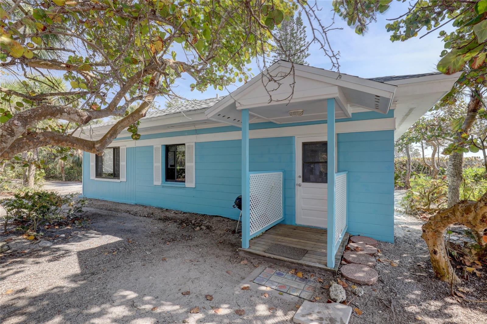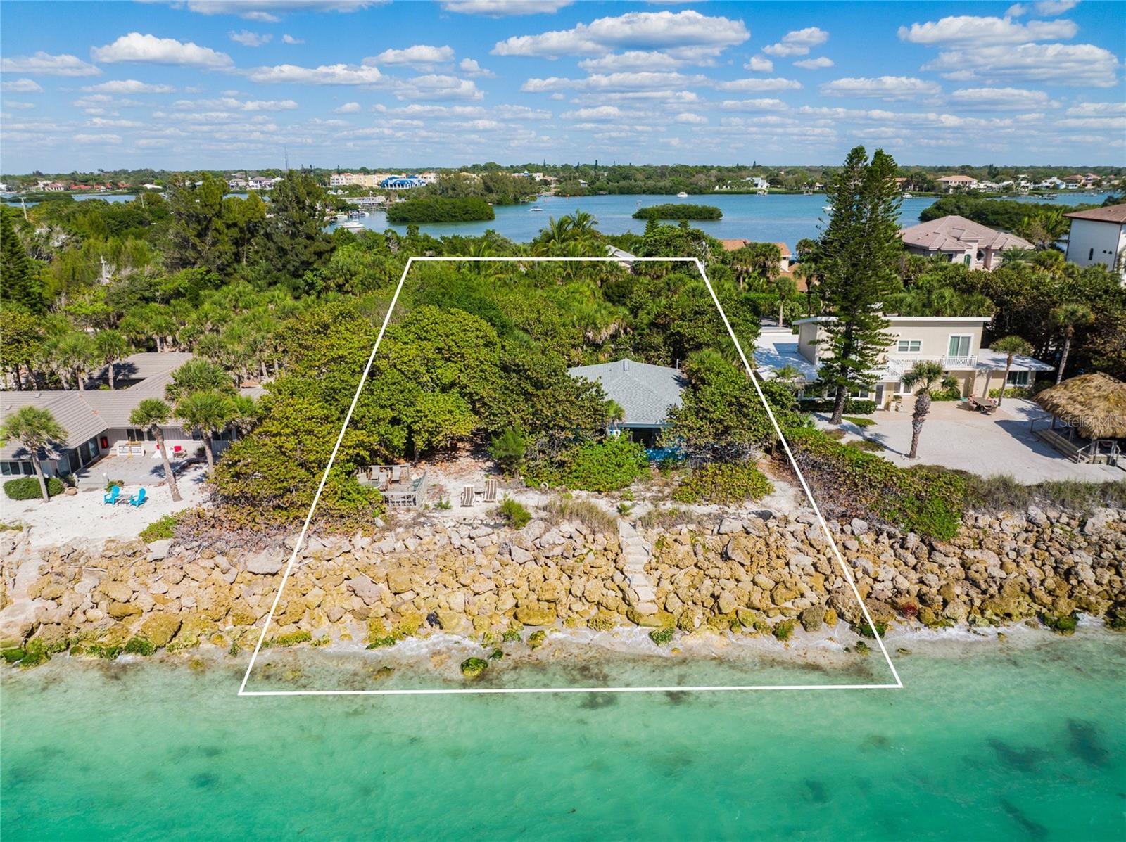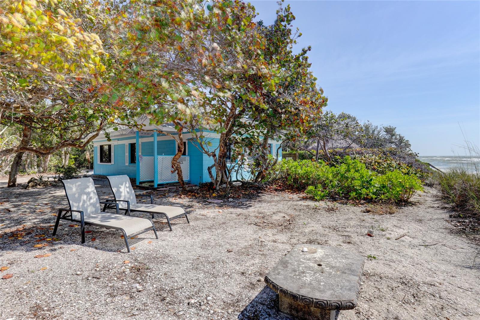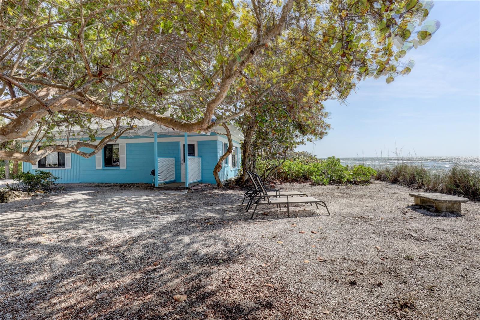 Gulf Front "Vintage Florida Cottage" perched on a half an acre, and freshly updated from top to bottom, plus turn-key furnished with everything new! New luxury vinyl waterproof flooring throughout, new kitchen including appliances, cabinetry, countertops, and accessories. Newly updated bathrooms with walk-in showers, shower glass, marble vanities, and more. Roof done in 2021, AC replaced 2020, and new full size washer-dryer. Enjoy endless warm Gulf breezes by day and magnificent sunsets in the evening. The Casey Key residents own their beaches with no public access within miles of this property. Located just south of the historic Blackburn Point "swing bridge" offers easy on and off access to this magical island. Embrace the Island lifestyle, golf cart to nearby marinas, tiki bars, restaurants, grocery store and more. Casey Key, one of the most exclusive barrier islands on the Florida Gulf Coast is just a few minutes to Downtown Sarasota and St Armand's Circle as well as The Island of Venice to the south. Convenient and easy access to I75 and all nearby airports, plus private air travel options are available on The Island of Venice, less than 10 minutes away. The cottage is in excellent condition and would be a great beach house to enjoy the property until you were ready to build; also makes a great rental property. Yes you have found paradise, Come Live on Vacation!