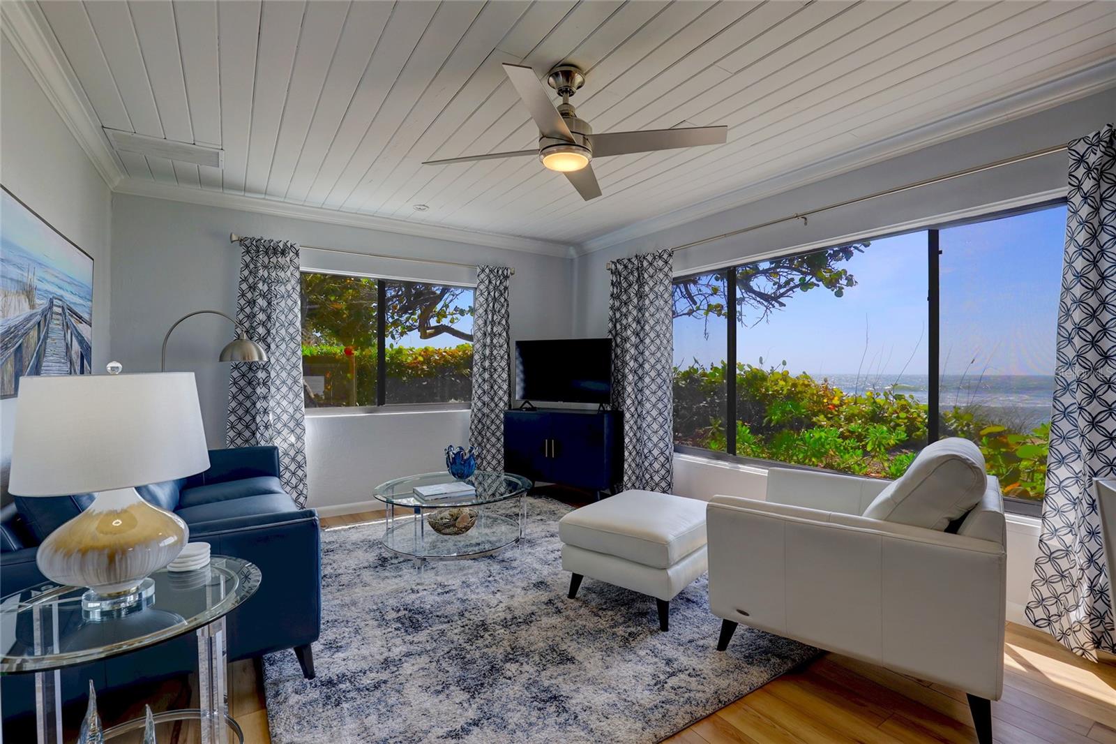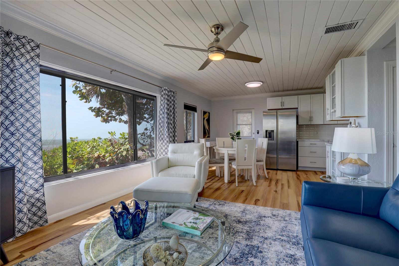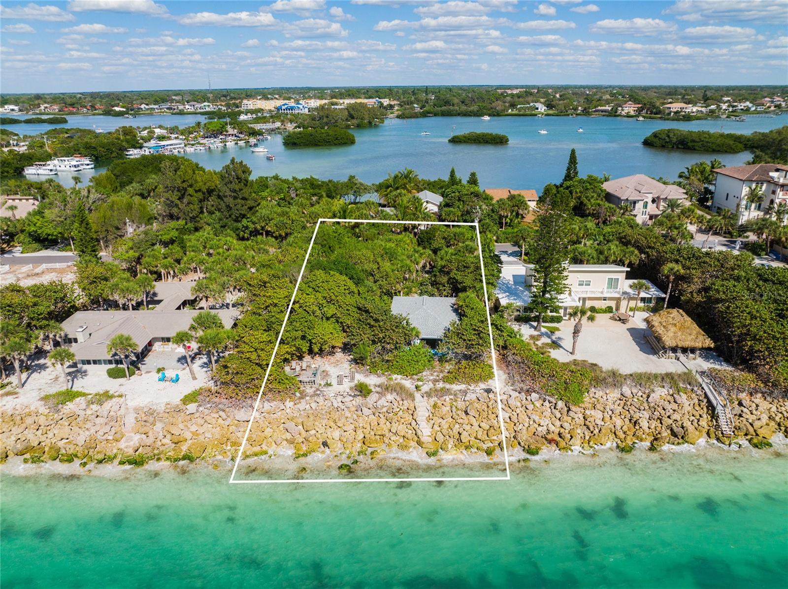 Gulf Front "Vintage Florida Cottage" perched on a half an acre, and freshly updated from top to bottom, plus turn-key furnished with everything new! New luxury vinyl waterproof flooring throughout, new kitchen including appliances, cabinetry, countertops, and accessories. Newly updated bathrooms with walk-in showers, shower glass, marble vanities, and more. Roof done in 2021, AC replaced 2020, and new full size washer-dryer. Enjoy endless warm Gulf breezes by day and magnificent sunsets in the evening. The Casey Key residents own their beaches with no public access within miles of this property. Located just south of the historic Blackburn Point "swing bridge" offers easy on and off access to this magical island. Embrace the Island lifestyle, golf cart to nearby marinas, tiki bars, restaurants, grocery store and more. Casey Key, one of the most exclusive barrier islands on the Florida Gulf Coast is just a few minutes to Downtown Sarasota and St Armand's Circle as well as The Island of Venice to the south. Convenient and easy access to I75 and all nearby airports, plus private air travel options are available on The Island of Venice, less than 10 minutes away. The cottage is in excellent condition and would be a great beach house to enjoy the property until you were ready to build; also makes a great rental property. Yes you have found paradise, Come Live on Vacation!