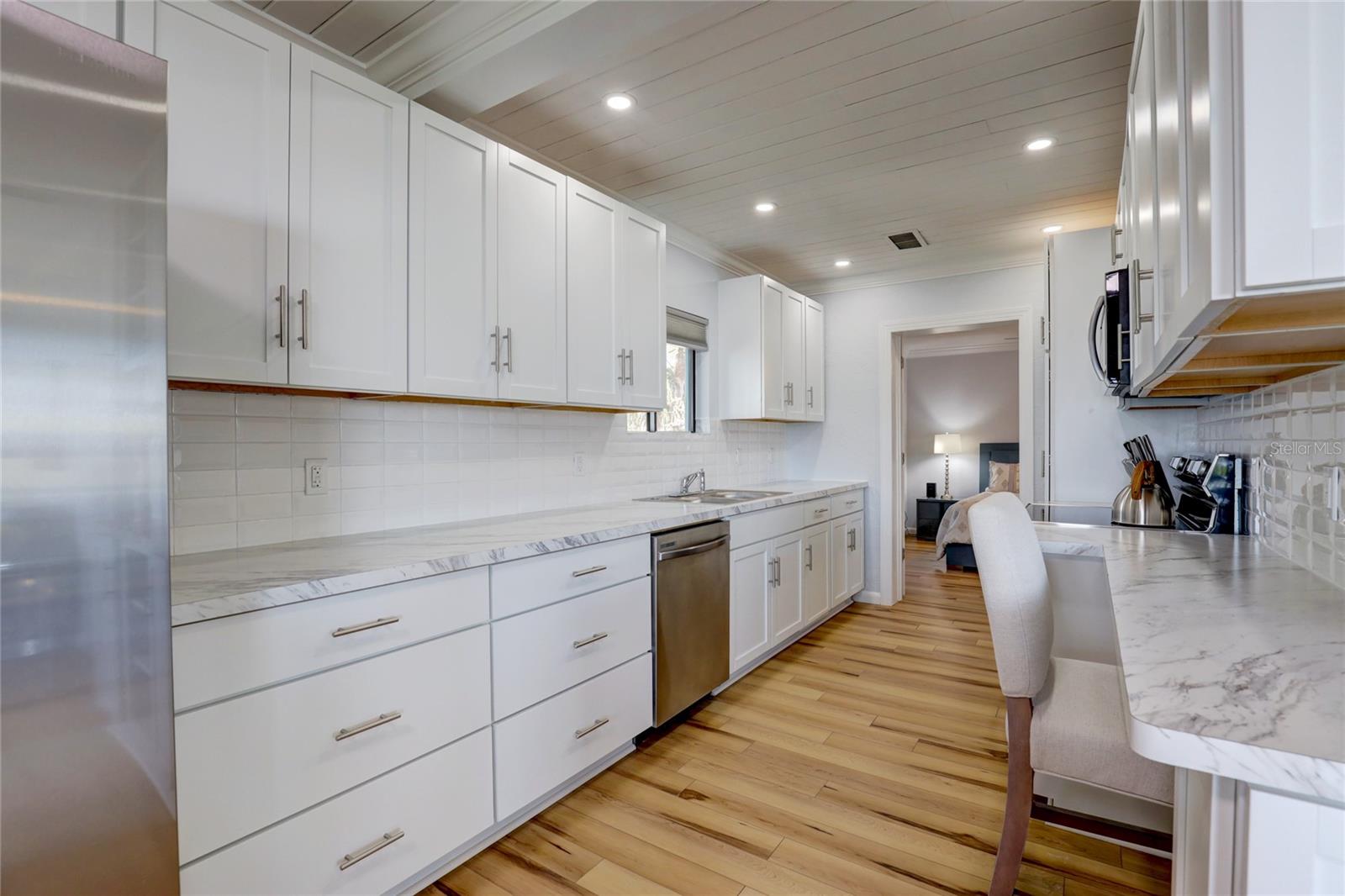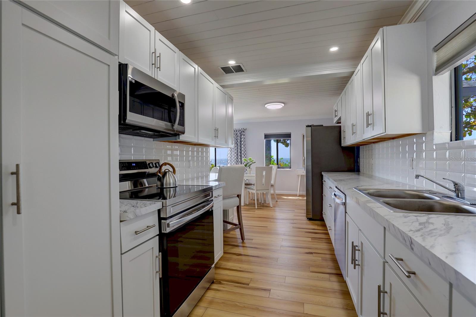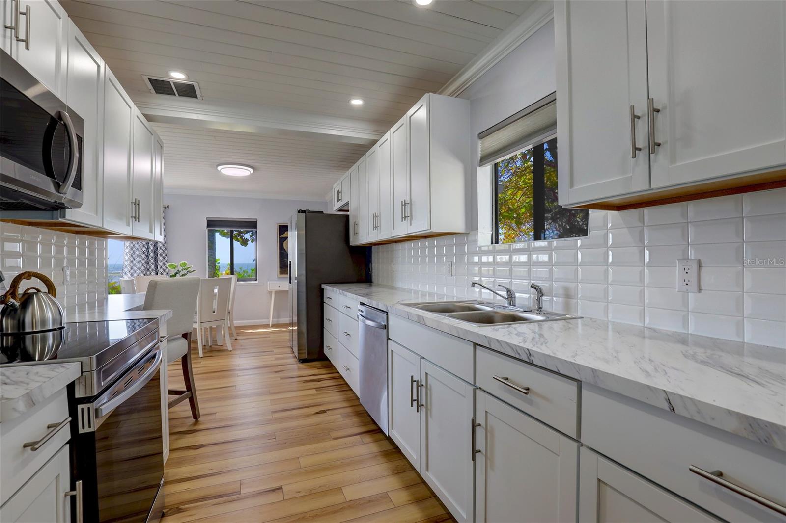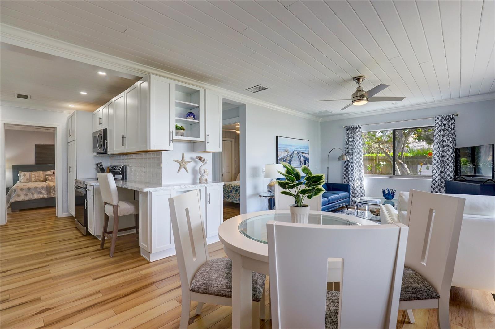 Gulf Front "Vintage Florida Cottage" perched on a half an acre, and freshly updated from top to bottom, plus turn-key furnished with everything new! New luxury vinyl waterproof flooring throughout, new kitchen including appliances, cabinetry, countertops, and accessories. Newly updated bathrooms with walk-in showers, shower glass, marble vanities, and more. Roof done in 2021, AC replaced 2020, and new full size washer-dryer. Enjoy endless warm Gulf breezes by day and magnificent sunsets in the evening. The Casey Key residents own their beaches with no public access within miles of this property. Located just south of the historic Blackburn Point "swing bridge" offers easy on and off access to this magical island. Embrace the Island lifestyle, golf cart to nearby marinas, tiki bars, restaurants, grocery store and more. Casey Key, one of the most exclusive barrier islands on the Florida Gulf Coast is just a few minutes to Downtown Sarasota and St Armand's Circle as well as The Island of Venice to the south. Convenient and easy access to I75 and all nearby airports, plus private air travel options are available on The Island of Venice, less than 10 minutes away. The cottage is in excellent condition and would be a great beach house to enjoy the property until you were ready to build; also makes a great rental property. Yes you have found paradise, Come Live on Vacation!
