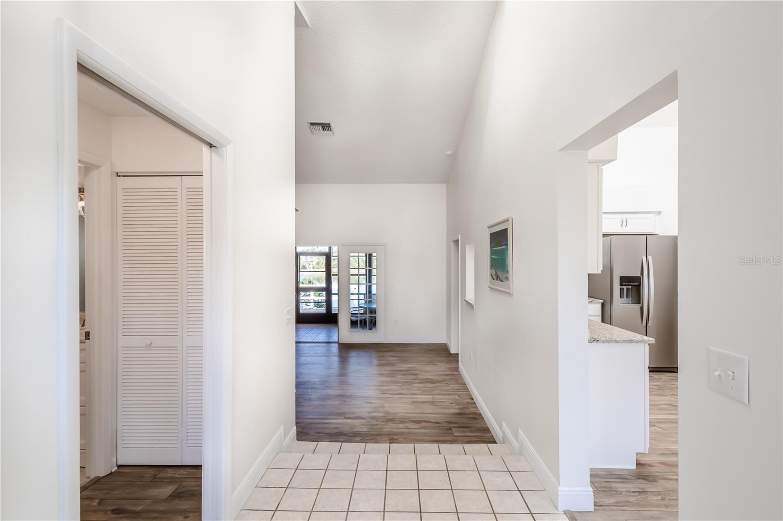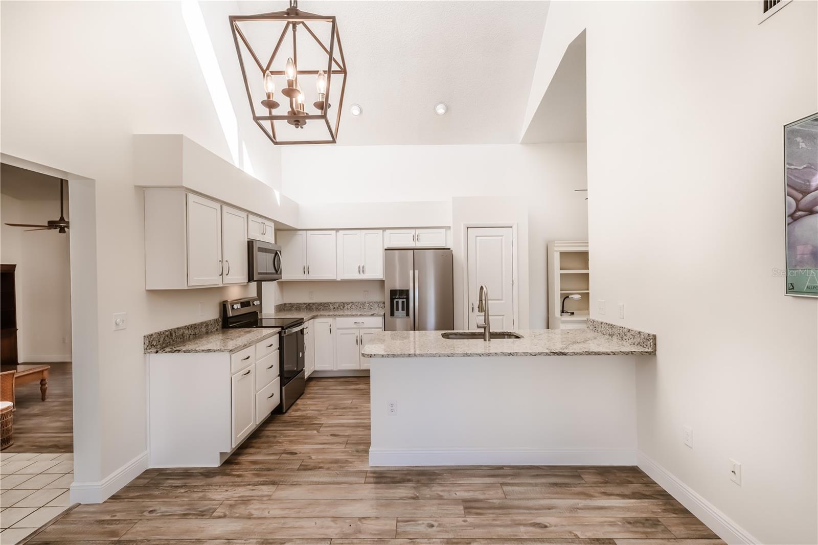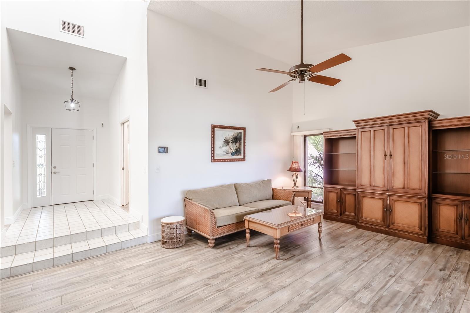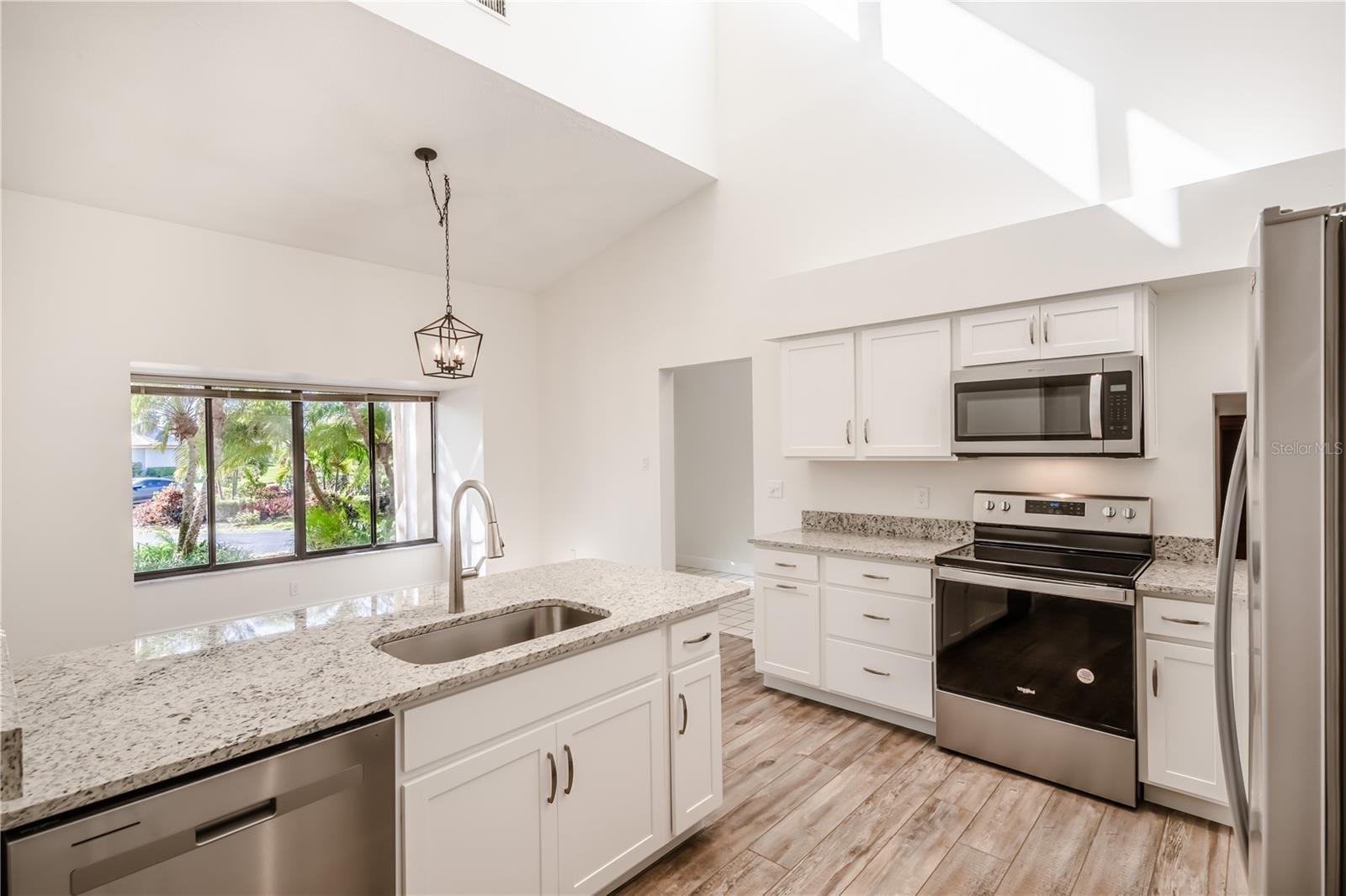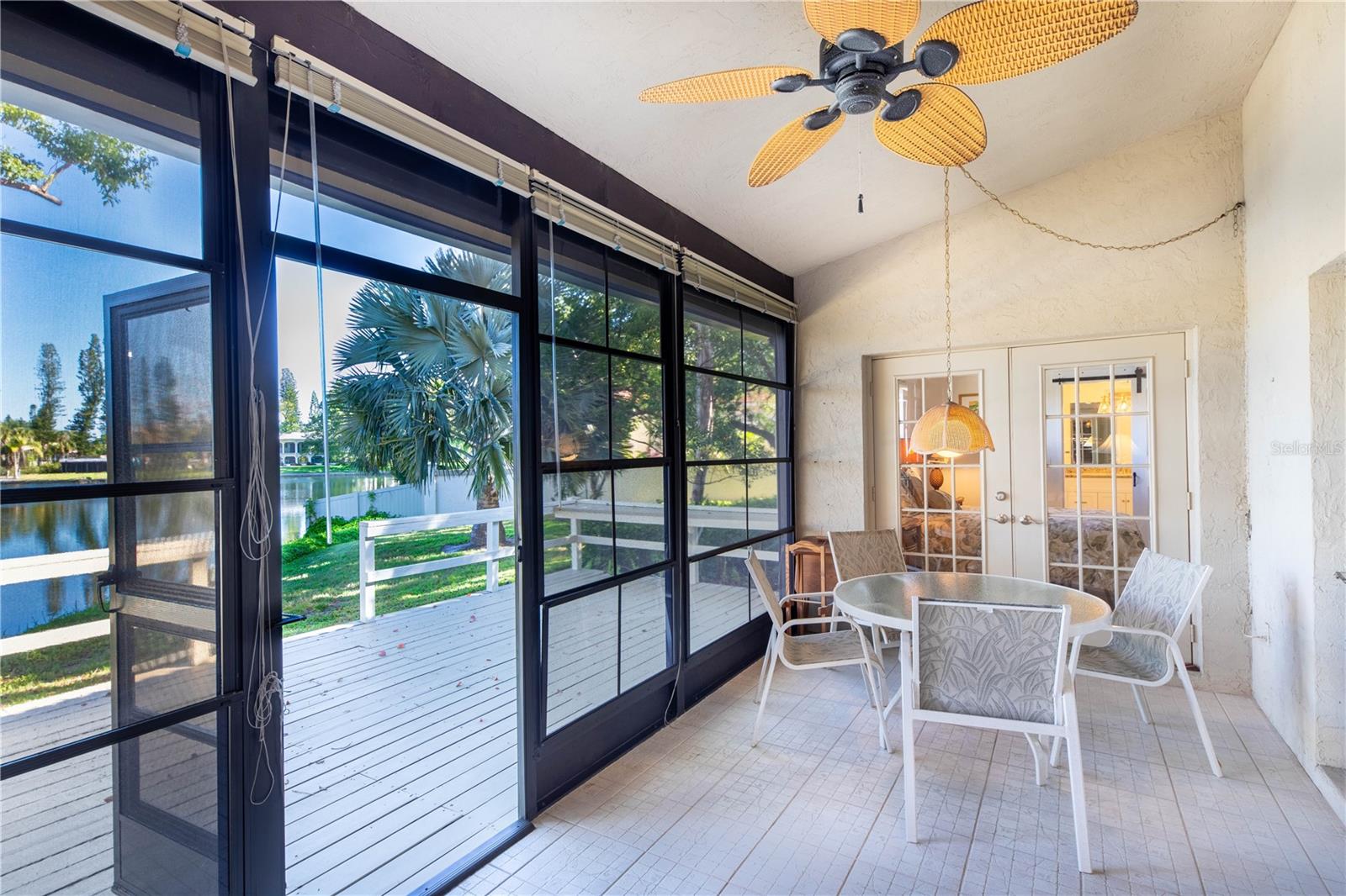 Welcome to your new home in the well-established gated Inlets community. This West of the trail- Resort-style community is less than 2 miles from Nokomis Beach. This lovely home sits at the crest of a quiet cul-de-sac surrounded by palm trees, mature foliage, and well-maintained colorful landscaping. This home has recently been extensively renovated. As you walk up you are greeted by the great clerestory windows which provide just the right amount of natural light. Walk inside and you're welcomed with a sleek ceramic tile which transitions to new LVP flooring and tasteful 5.5-inch baseboards throughout the main living area. The distinct architecture is noted throughout this home with soaring high ceilings, a pass-through kitchen window, and continued vaulted ceilings throughout. The FULLY renovated kitchen and adjoining dining room await your arrival. New slow-close cabinetry, granite countertops, matching Whirlpool appliances, and a bonus office area or breakfast nook. The living room leads out to your screened/vinyl enclosed lanai with French doors, custom tile and new tinted vinyl window coverings. That's not all. This leads out to your private deck (26x12) which has a serene and private lake view! Surrounded by mature Florida landscaping, partially shaded and enjoyed year-round. Hurricane shutters surround the home and provide extra peace of mind. A short walk or 1 minute bike ride to the clubhouse. This active community is the place to be. The amenities in the Inlets include pickleball courts, tennis courts, exercise center, and a pool and spa. Your HOA payment also includes- Cable TV, Internet, Exterior Insurance, Lawn care, and Irrigation. Loads of activities and community events to keep an active and social lifestyle. Less than 5 miles to Historic Downtown Venice and Venice Beach! Where you can enjoy fine & casual dining, boutique shopping, theatre, weekly farmer's market and periodic craft & art shows. This home has all the elements for relaxing, comfortable and easy-care living. Very accessible to I-75, Sarasota Memorial Hospital, US 41 and 4 major airports. LIFESTYLE, LOCATION, LOW MAINTENANCE! Your piece of Paradise awaits.