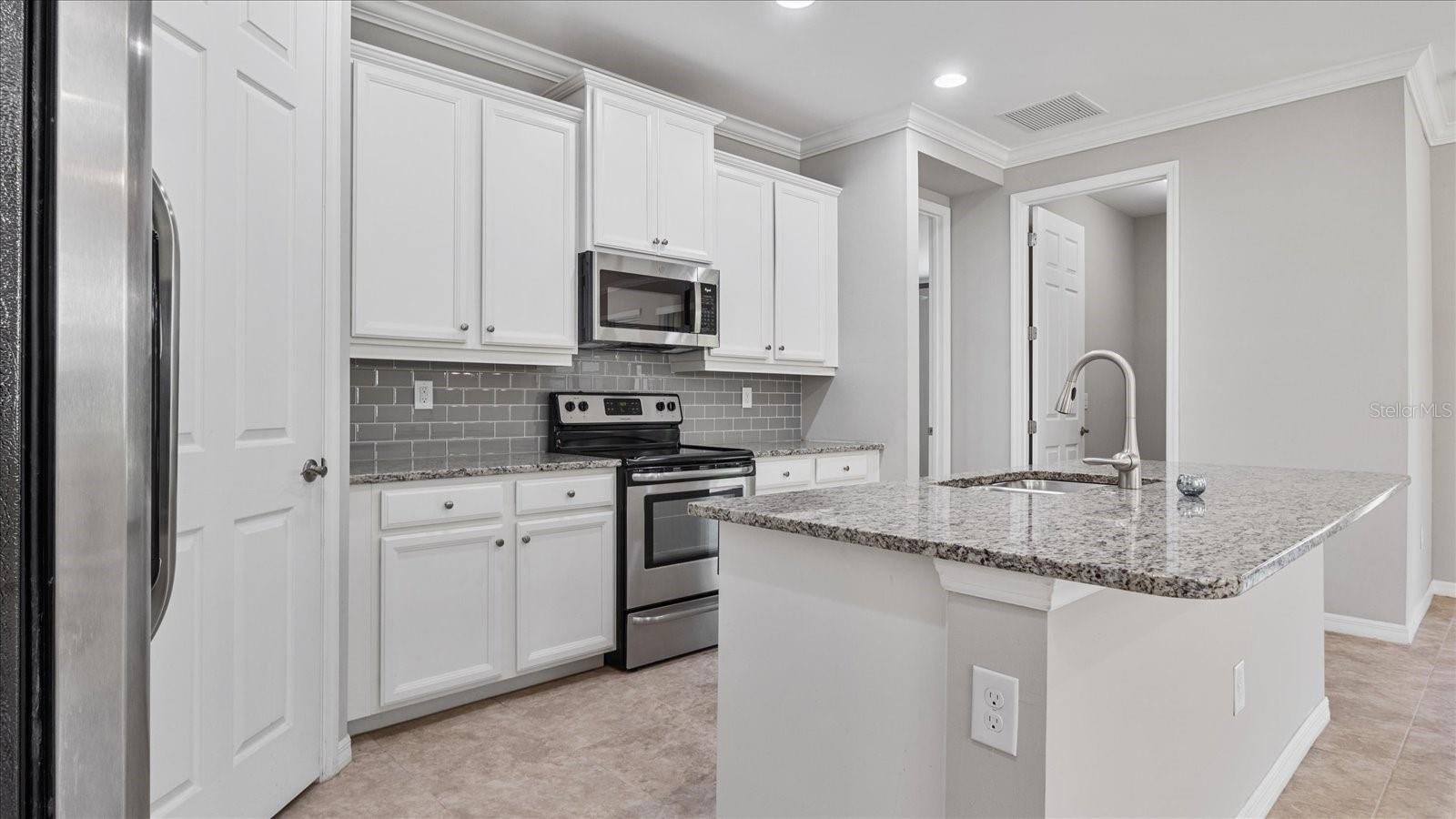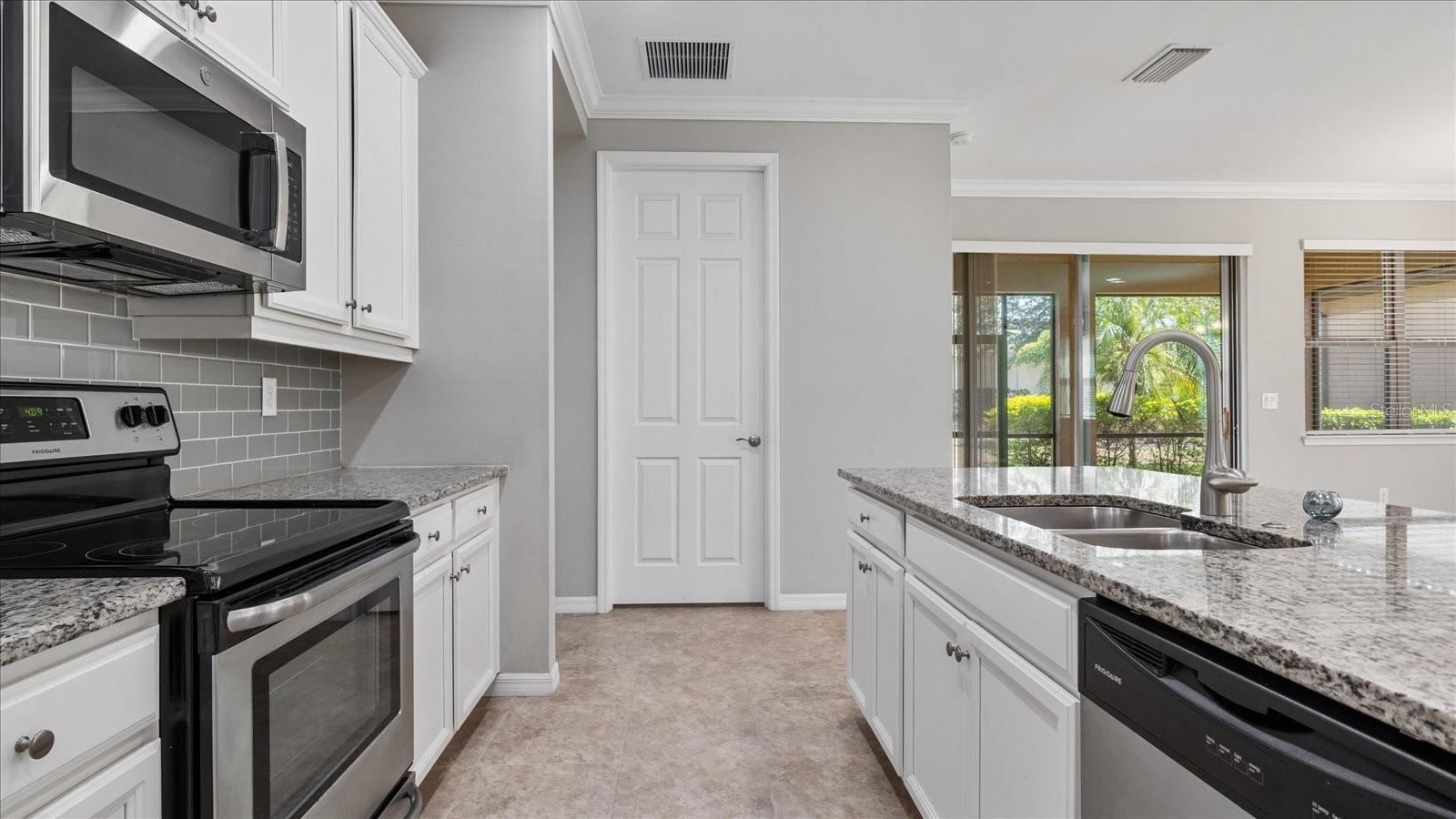 Fabulous Clifton floor plan 2 BEDROOMS PLUS DEN/OFFICE AND 2 BATHS AND 2 CAR GARAGE. This floor plan includes 2 large walk-in closets in the master bedroom and a laundry room just outside the primary bedroom.This home has crown molding, granite counter tops, wood cabinets, upgraded paint and flooring and an upgraded back splash. With a large private lanai and yard space good enough to fit any size pool. Tiles are upgraded in this open and spacious great room floor plan that is perfect for entertaining family and friends! Get ready for your expectations to be exceeded! Toscana Isles AMENITIES include an onsite Social Director, Maintenance Free Lawn Care, Gated Community, Resort style-Beach entry-Infinity edge Pool overlooking 1 of 5 Lakes for Canoeing-Kayaking, Fishing, 2 Tennis Courts, Bocce Ball, Pickle Ball, High Tec Fully Equipped Fitness Center, area for Pilates, Yoga & Dance, Dog Park, Playground, Catering style Dining Room and Bar with pool table and several big screen TV’s! Secluded and private yet minutes away from I75 for access to Naples or Tampa