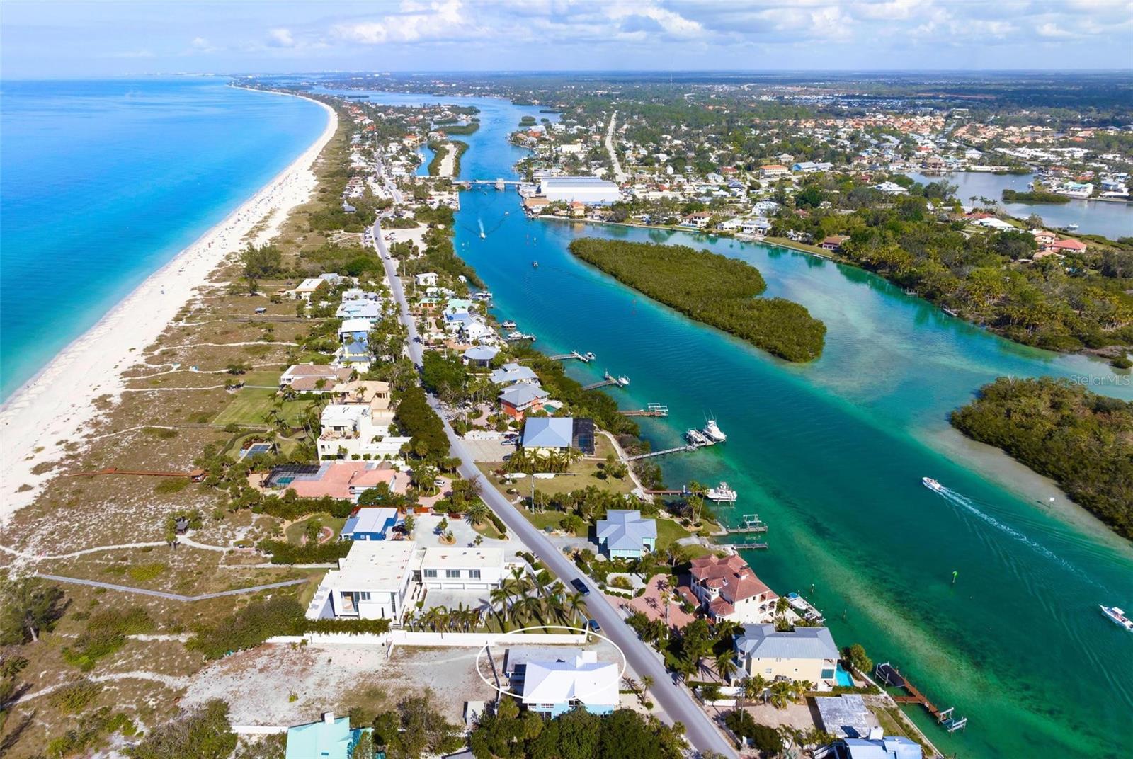This true beach retreat on Casey Key provides you with a private deeded access wide pathway to the sandy beach on the Gulf of Mexico and a dock easement across the street on the Intracoastal Waterway. It is truly the best of both worlds! Recently renovated, and keeping with a modern beach cottage vibe, the property delivers updated amenities, 2 bedrooms, 1.5 bathrooms, and a den/office that could serve as a 3rd bedroom. The outdoor patio area with fireplace, grill, outdoor shower, and fenced yard ensures privacy for your outdoor relaxation. Conveniently located between Nokomis Beach and the Venice Jetty, you'll have access to great waterfront restaurants, a marina, nearby water sports, and grocery stores.