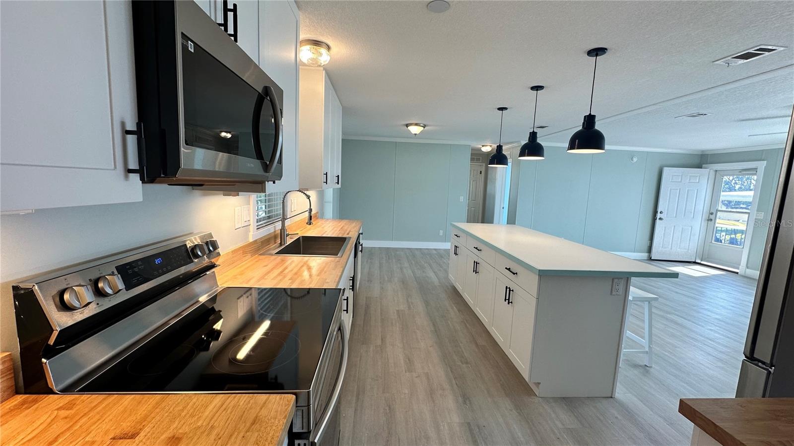 Check out this large open concept 3-bedroom home with its high ceilings and lots of natural lighting has all new Stainless steel appliances including refrigerator, stove microwave, and deep single basin sink. Beautiful cabinetry with soft closed doors and butcher block counters. A large kitchen island with wainscoting and extended seating for 4 with industrial dome pendants. New vinyl plank flooring throughout with new base and crown molding. Large primary bedroom with walk in closet and ensuite bathroom with oversize vanity, shower, and garden tub to relax in after a hard day of playing. Split floor plan with bedrooms 2 & 3 on opposite side of the house with a guest bathroom for greater privacy when guest come to visit. Updates include power pole in 2014, shed in 2019, A/C and new front and side porches with stairs in 2022. Also, this home has an indoor laundry / bonus / pantry room. King’s Gate Club is an active 55+ co-operative community that boasts a strong family-like community where neighbors care about each other and wave as they pass by. KGC is only few miles away from Nokomis beach/North Jetty and a few minutes to Venice Beach and the quaint ole downtown Venice shopping center.