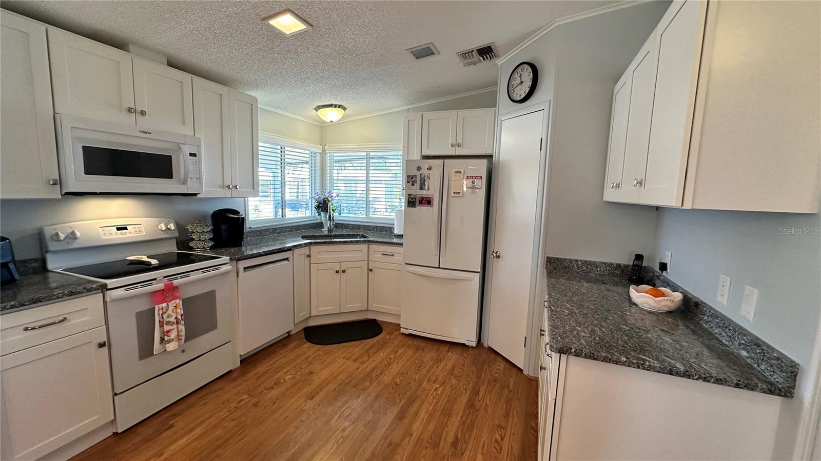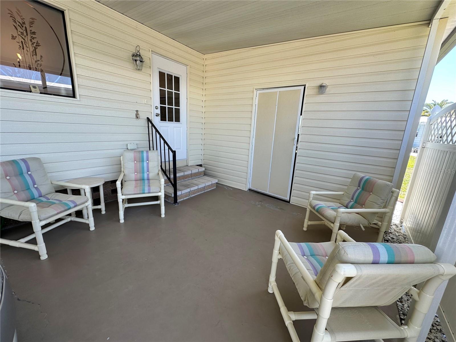Welcome to this beautiful, updated turnkey home with new shaker style kitchen cabinets, large walk-in pantry and granite counters that flow into the dining room with built-in cabinets and resurfaced counters. Newer comfortable furniture with laminate floors and fixtures throughout. The lanai off the front of the living has PGT windows. Oversize master bedroom with large walk-in closet and large ensuite bathroom boasting lots of storage. The guest bathroom is a nice size with its own linen cabinet. New carport with privacy fence and a quaint sitting area under cover. New A/C in2022 with transferable warranty and updated power pole. If you’re looking for an updated castle in an active 55+ resident-owned cooperative gated community where everyone knows your name and neighbors wave as they pass by, then King’s Gate Club is the place for you! As a proud owner within our club, you can enjoy a lengthy list of activities that utilize the abundant amenities including a clubhouse, an oversized swimming pool with lap lanes, fitness club, saunas, hot tub, game room, craft room, billiards, woodworking shop, 6 pickleball courts, shuffleboard, and tennis. All this is located just 4 miles from the north Jetty and less then 15 miles away is the famous Siesta Keys with its cool white quartz sand! Welcome to another day in paradise.