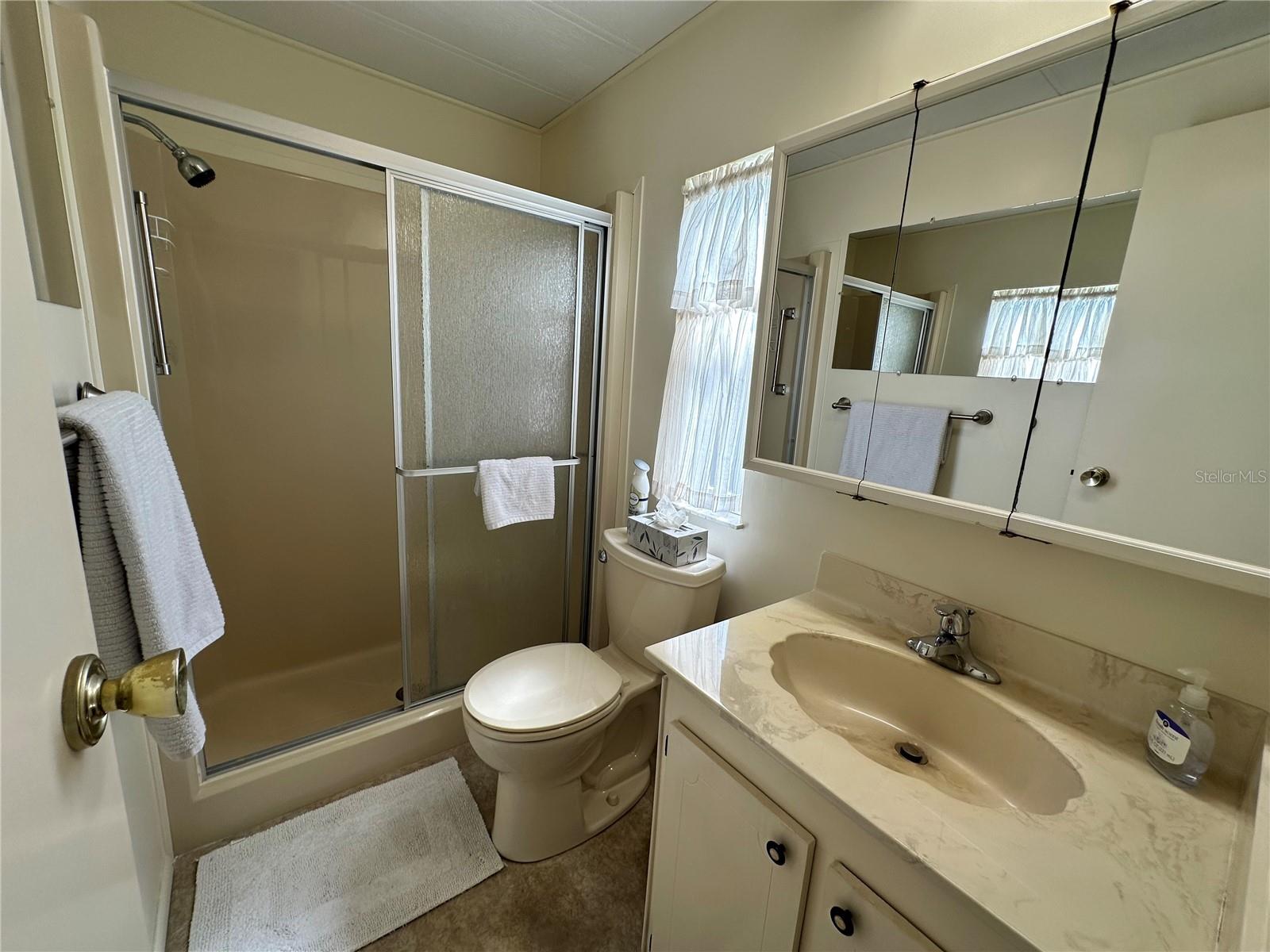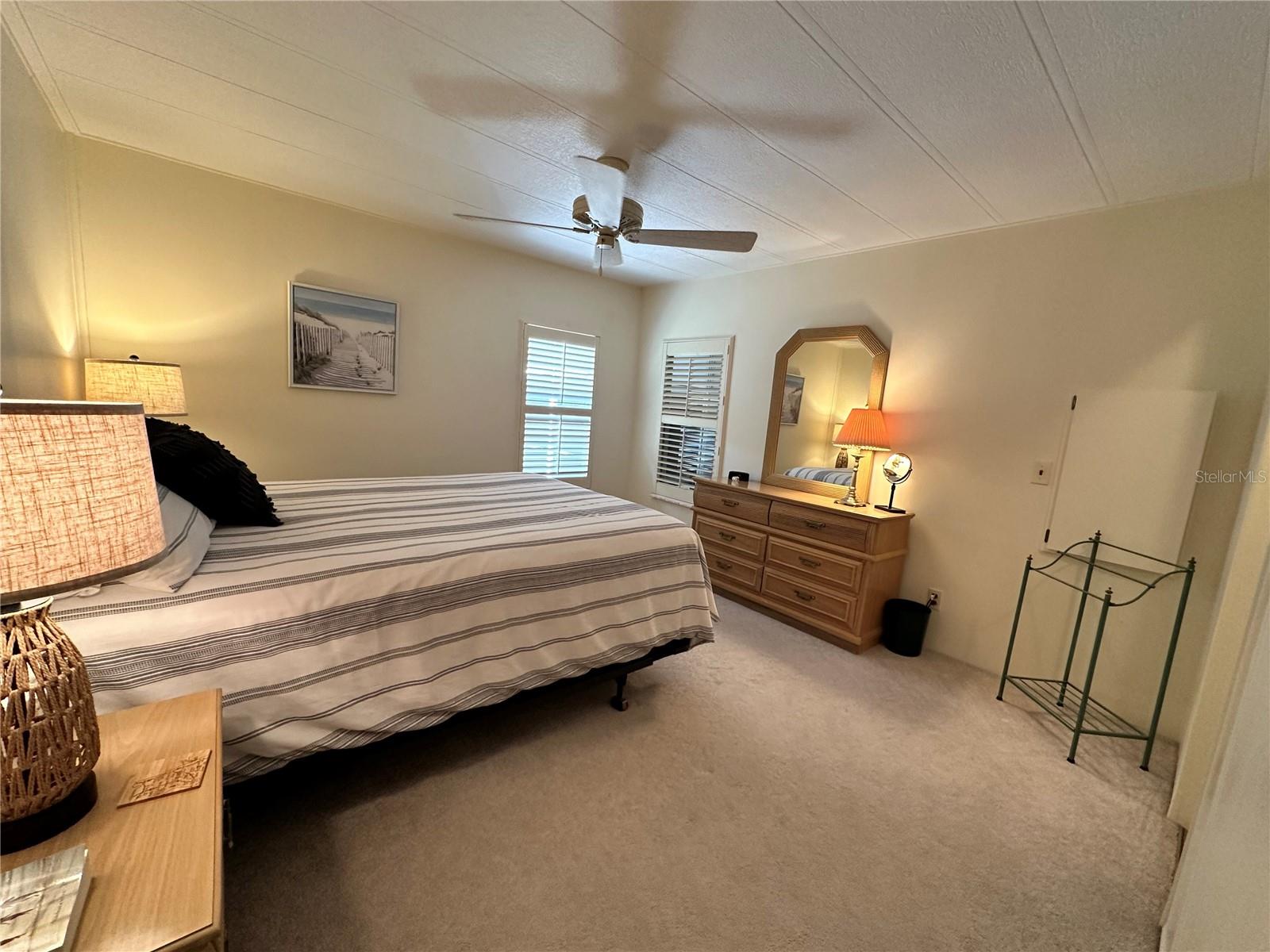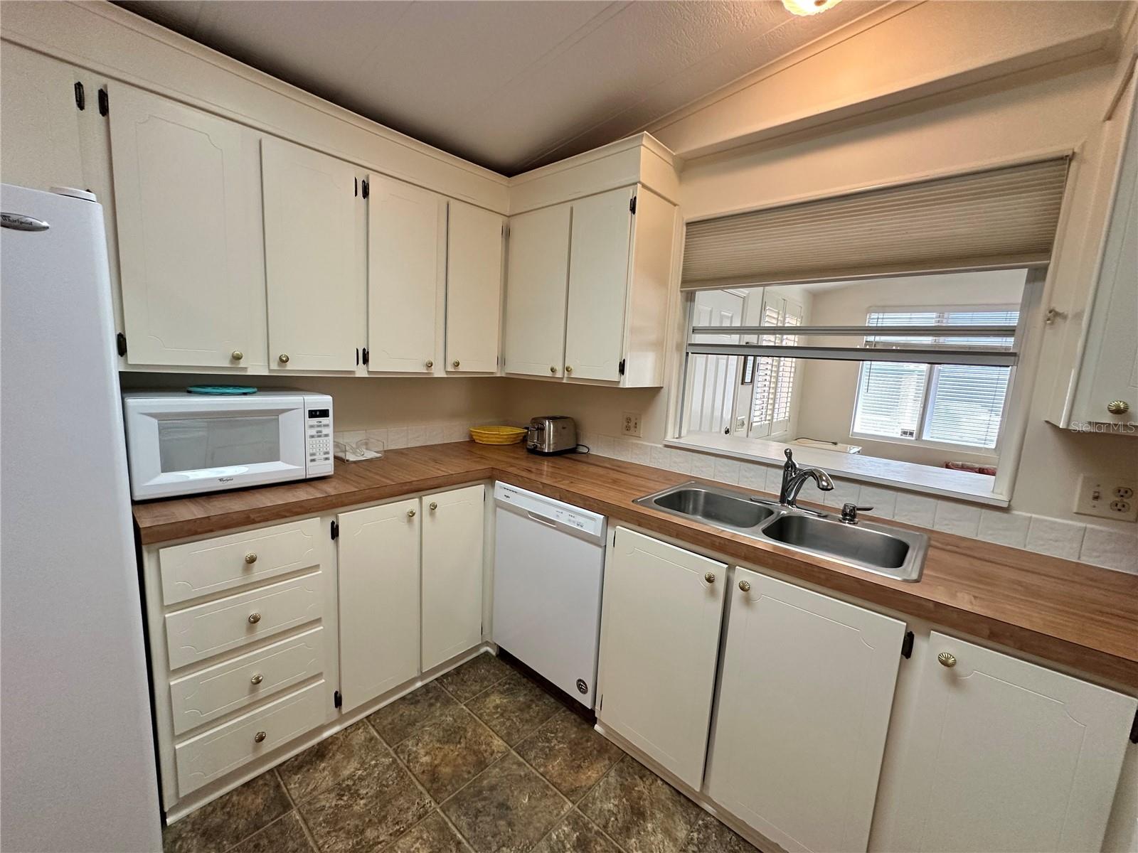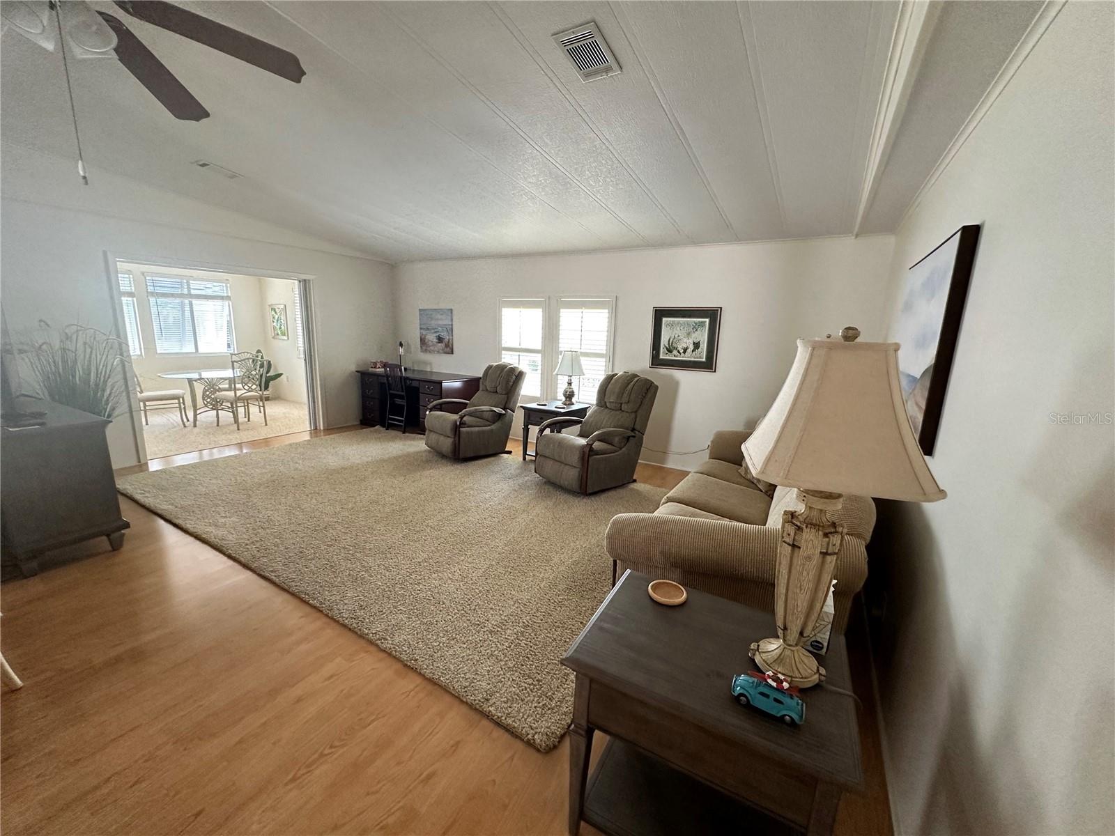 Beautifully decorated, this turnkey ready home is in a premier 55+ active, cooperatively owned community is just a hop in the car and minutes to beaches, shopping, restaurant, and I-75, yet hidden from public view! This new and completely furnished home with cathedral ceilings, skylight, laminate floors and newer carpeting in the bedrooms. Also has upgraded windows and plantation shutters in every room! The front screen room was converted to a wood framed family room with pass through window from the kitchen adding almost an additional 250 sq. feet of comfort for Florida living. Newer York A/C was installed in 2020. Metal roof over done in 2010. This home has an oversized shed divided into a spacious laundry room and large storage room with a workbench and shelving for storage. Sliding glass doors open in a screen room and a private backyard lined with trees for nesting birds. This gated community has numerous activities, all run by volunteers. The many amenities include a clubhouse, an oversized swimming pool with lap lanes, 24-hr fitness room, hot tub, game room, craft room, woodworking shop and outdoor activities like pickleball, shuffleboard and tennis. Now is the time to purchase your retirement home and start living the life you always dreamed of!
