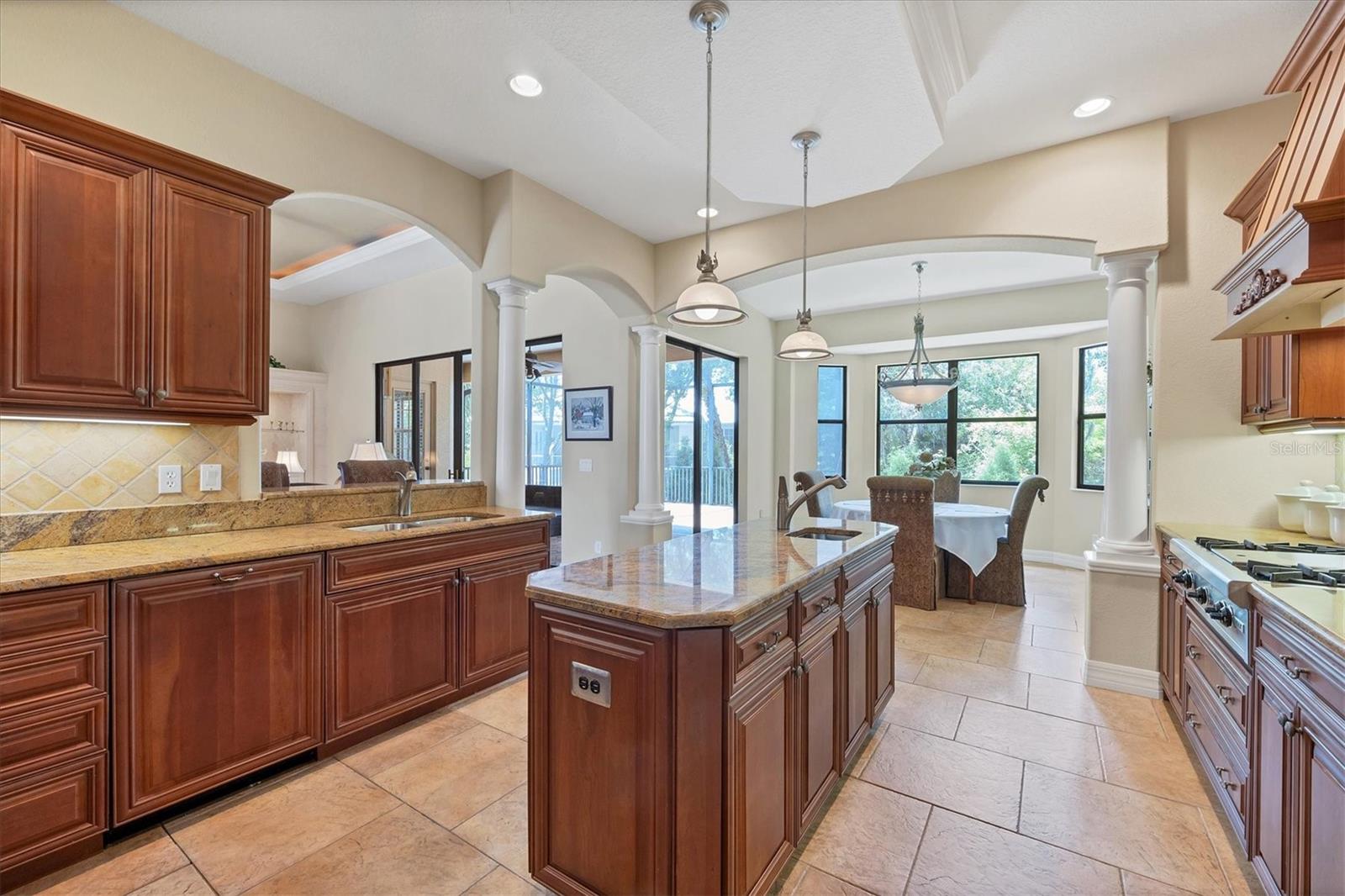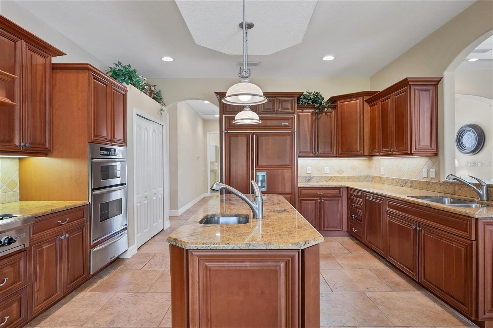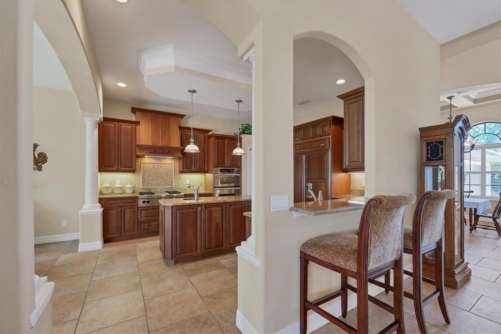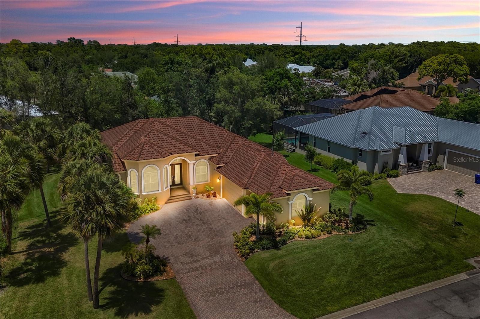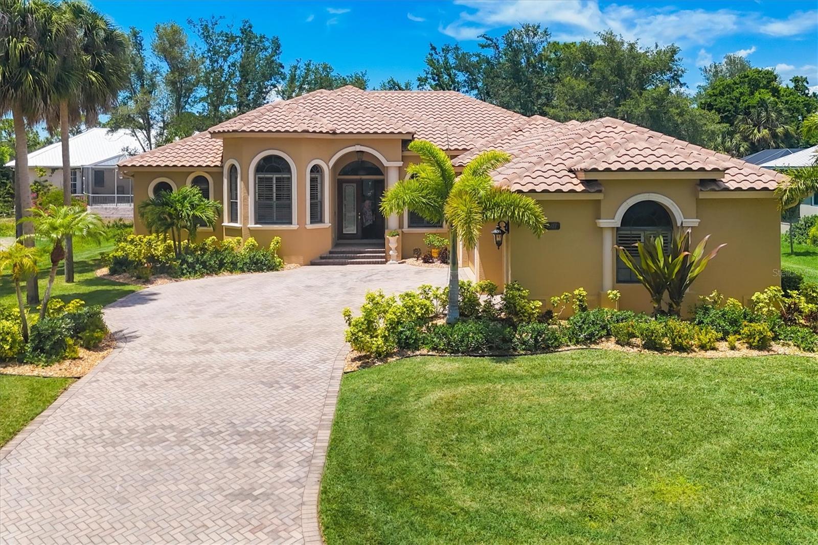 Welcome to this one-of-a-kind custom-built home in the highly desired community of Laurel Landings Estates in Nokomis.Minutes away from Nokomis Beach! Gas is connected throughout the house (very low electrical bill). The residence exudes an elegant blend of stunning modern Mediterranean design and an open floor plan thoughtfully designed with tranquil separate retreats for privacy and relaxation. This custom-built home from Coachman Homes features 2675 sq ft of living space with a 3-car, 675 sq ft attached garage with epoxy floors to match the AC! TILE ROOF! HIGH ELEVATION! .Office space with cherry floors and built-in cabinets. Gourmet kitchen with Wolf gas stove, custom range hood, and warming drawers. Built-in oven with microwave 1 1/4 granite countertops with stone backsplash. Sub-zero 670 refrigerator with matching wood cherry cabinets in the kitchen, a cooking island with a sink, and dual garbage disposals. The home features high 12-foot-detailed ceilings with crown moldings and rope lighting all surrounded by a radiant barrier in main areas. High end lighting fixtures and fans with special-order crystal french door knobs and hardware. Solid wood 8-foot interior doors with matching 6" casement and round arched entry pillars in the main area and kitchen. Rounded corner drywall with spanish knockdown. Master bedroom features a large walk in closet with stunning master bath, and a walk-in shower with jacuzzi tub and dressing area.Plantation shutters in exterior windows. Laundry room with wash tub and matching cabinets with new Maytag commercial washer-dryer . The exterior has stone trim mouldings and is freshly painted, with gutters and downspouts installed in 2023. OVERSIZED 3 CAR GARAGE. Paver driveway with new landscaping in river rock to accent this stunning executive lived in home. Complete set of steel hurricane shutters. Radiant barrier in ceiling attic; sound acoustic in all exterior walls tile roof with a 900-square-foot screened porch and built in barbecue grill with stainless-steel range hood. Central vacuum system with floor sweep-outs and an intercom with integrated door bell. Cat 5-wire propane-powered gas dryer, gas stove and water heater,propane tank is full. Private dock with storage and direct water access to the Gulf of Mexico for 2 BOATS ! Live the dream in this private boating community, Laurel Landing Estates. 1.2 miles from Nokomis beach and 2 minutes from I-75, this home is the one you have been looking for. First time ever on the market from new. This property is a true estate in every sense of the word, offering not just a home, but a lifetime of luxury and memories. Those who entertain will love the outdoor area.Built-in outdoor kitchen with gas barbecue grill and hood, irrigation system, intercom system, and central vacuum. The lot itself provides a backyard oasis of seclusion and privacy. Magnificent park-like setting, mature landscaping, and wildlife galore. If you enjoy boating and fishing, you'll be impressed with this community's private gated dock, boat storage for larger vessels, and boat ramp from Shakett Creek leading out to the open waters of The Gulf of Mexico. The community of Nokomis offers top rated schools, and is a very close drive to I-75, Tamiami Trail, Sarasota Memorial Hospital, Legacy Trail and 3 miles from Nokomis Beach and Casey Key. Don't miss this opportunity to own a piece of Floridian paradise. Schedule your private showing today before this gem of a home is gone.