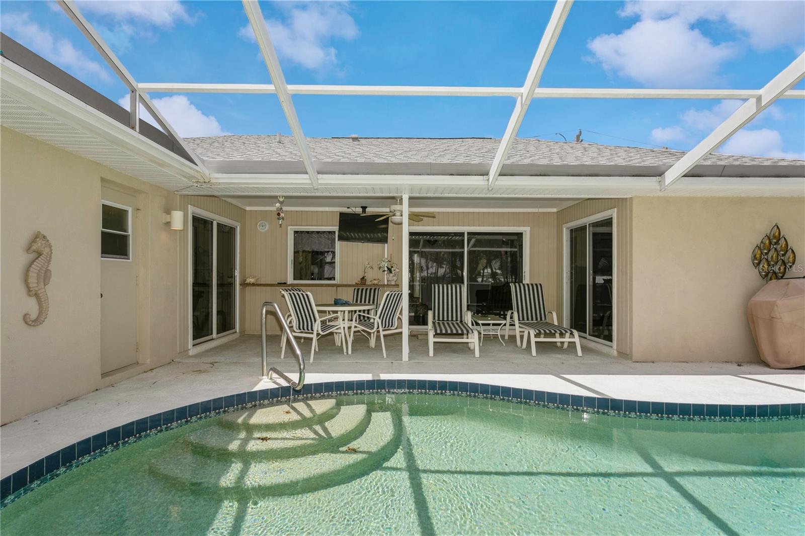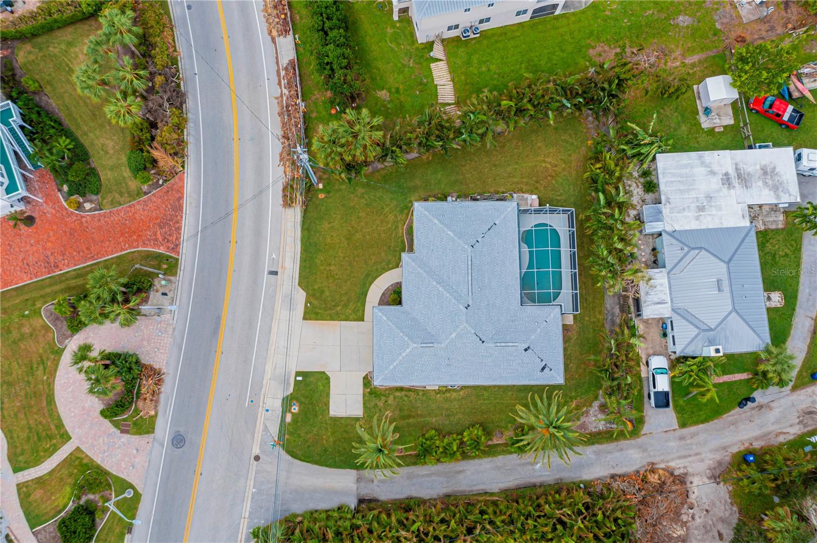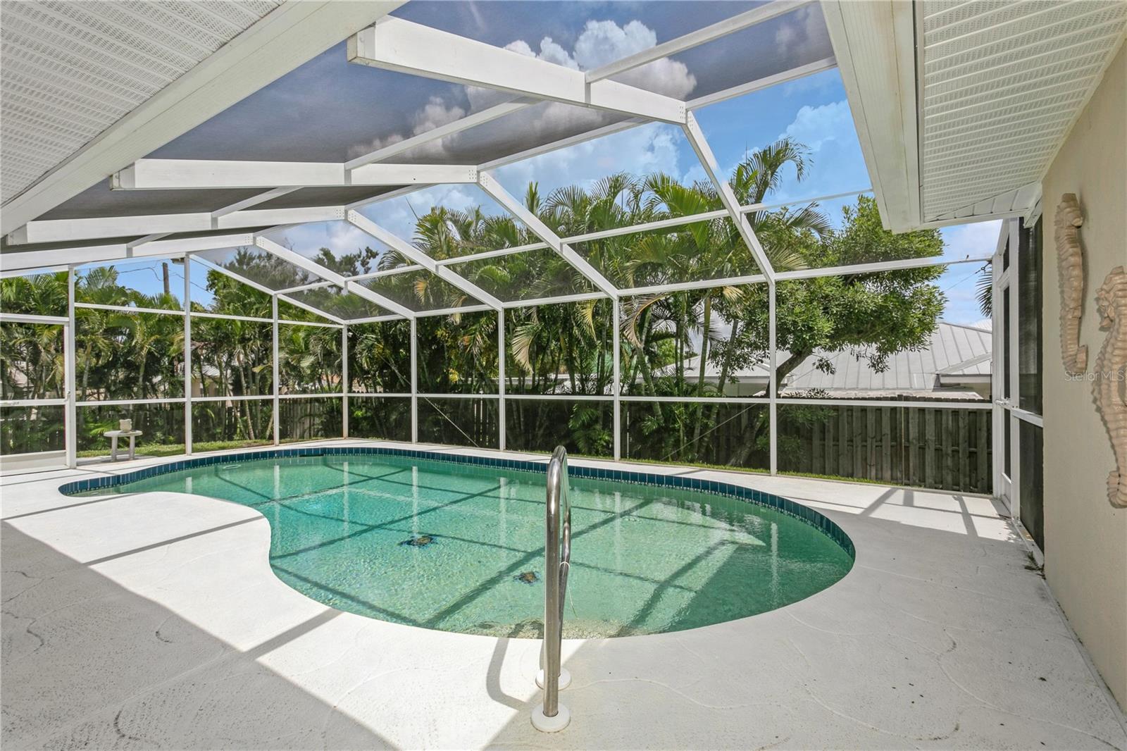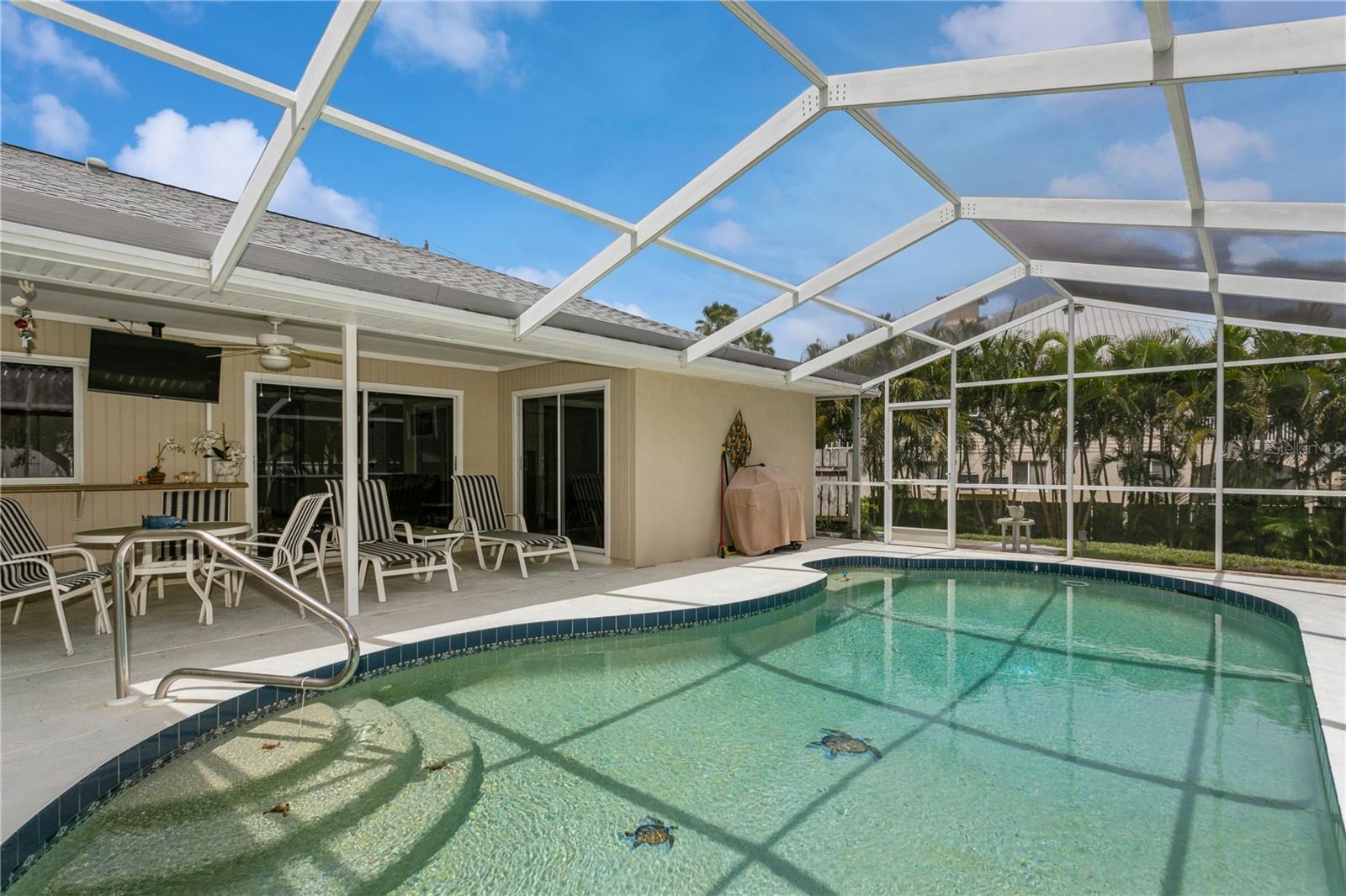 NOKOMIS BEACH IN YOUR NEIGHBORHOOD!public beach just one half (1/2) mile west on Albee Road to CASEY KEY, 2 bedroom, 2 bath home with 2 car garage, heated and caged swimming pool, built in 1990 and well maintained, some furniture and furnishings may be included, shingle roof installed September 2022, concrete block construction with stucco finish, NO NEIGHBORHOOD FEES, NO CDD, NO RULES AND REGULATIONS, single family residential use only, placed high above the street for good drainage and compliance for homes located in a designated flood zone, excellent curb appeal with attractive landscaping, Sarasota County central water service, septic tank, private well for sprinkling and irrigation, electric heat pump for swimming pool replaced March 2025, free form pool measures 14'x27', 3 sets of sliding glass doors open to the porch and pool area, kitchen is centrally located and has a pass through window to the covered porch and pool area, walk in closet in primary bedroom, "knock down finish" on the ceilings-no popcorn! This neighborhood flooded during hurricane Milton-but NOT this house because it is situated at a high elevation above sea level. located west of U.S. 41 with fast beach access, ride your bike or golf cart to the beach, plenty of free parking at NOKOMIS BEACH.