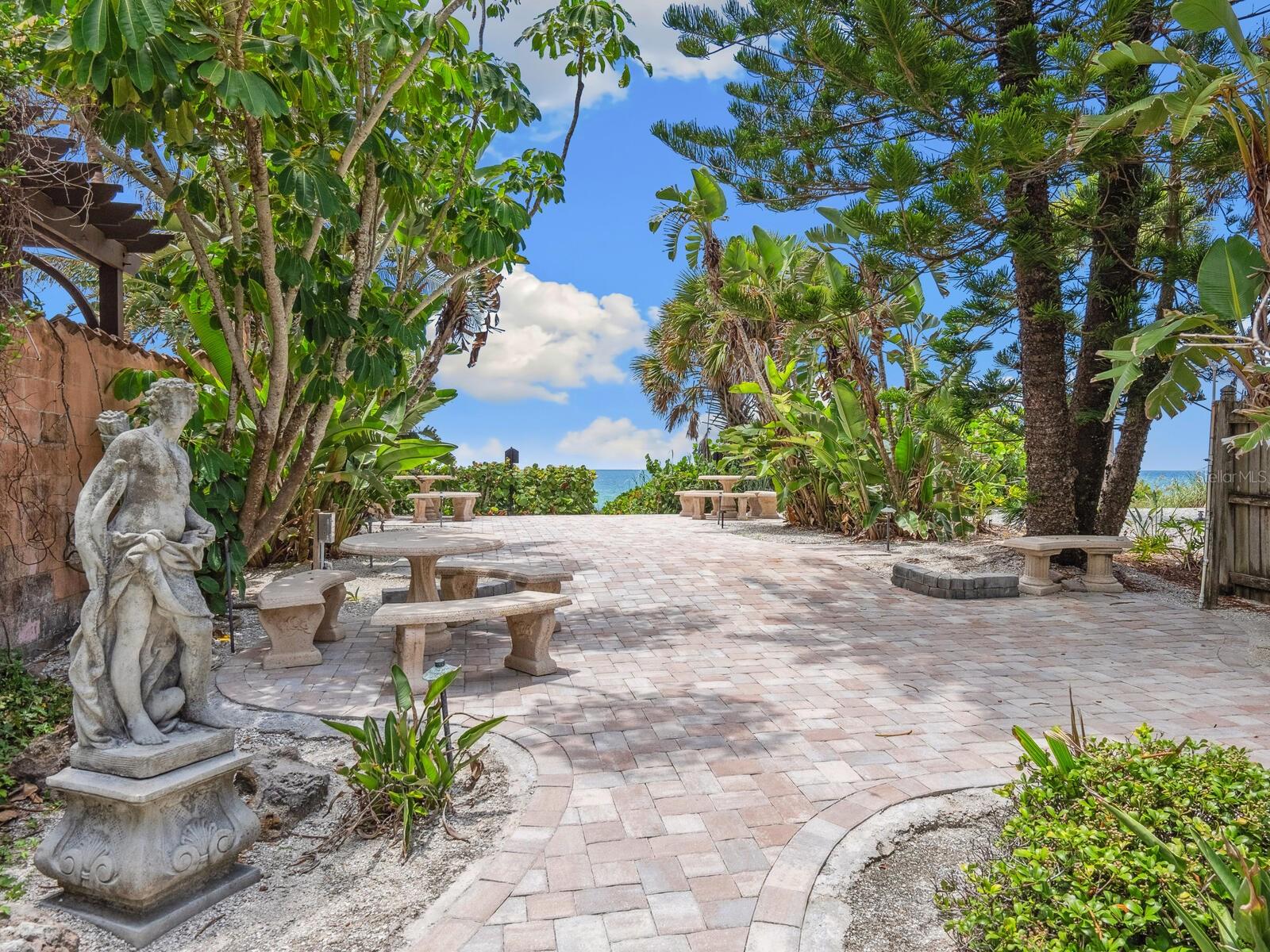 Located within the only private gated community on exclusive Casey Key, this stunning two-story custom home seamlessly blends tradition with a refined coastal lifestyle. Thoughtfully remodeled in 2022, the residence features an elegantly updated kitchen with a butler's pantry, modern bathrooms, a redesigned laundry room, natural wood flooring, a new roof, and a full home generator—ensuring both beauty and peace of mind. The first floor showcases an expansive kitchen that flows into a grand great room with a striking fireplace, a formal dining room, a private office/den, and a spacious primary suite overlooking the pool. Upstairs, you’ll find three guest bedrooms, a second living area, and a balcony with tranquil views of Casey Key. Car enthusiasts will appreciate the oversized garage, while the lushly landscaped grounds for both privacy and serenity. The resort-style pool and spa are surrounded by custom travertine decking and a covered outdoor entertaining area. A versatile game room provides space for recreation, fitness, or a home office. Residents of Casey Key Estates enjoy exclusive amenities including deeded beach access to the Gulf of Mexico, a gated entrance, pickleball and tennis courts, an Intracoastal fishing pier, and a kayak launch.
