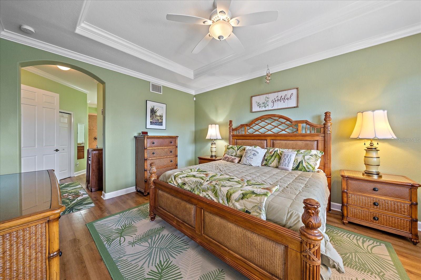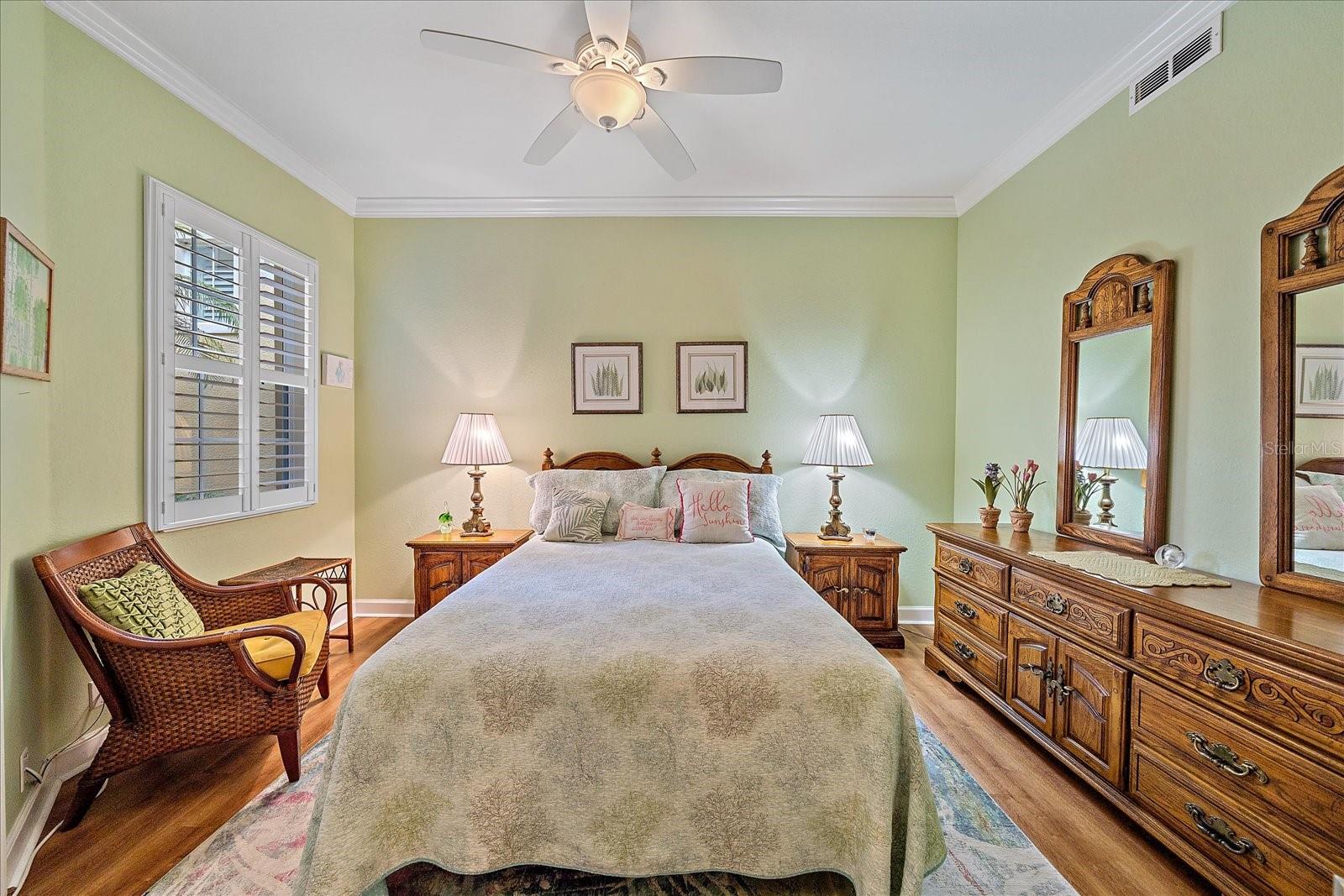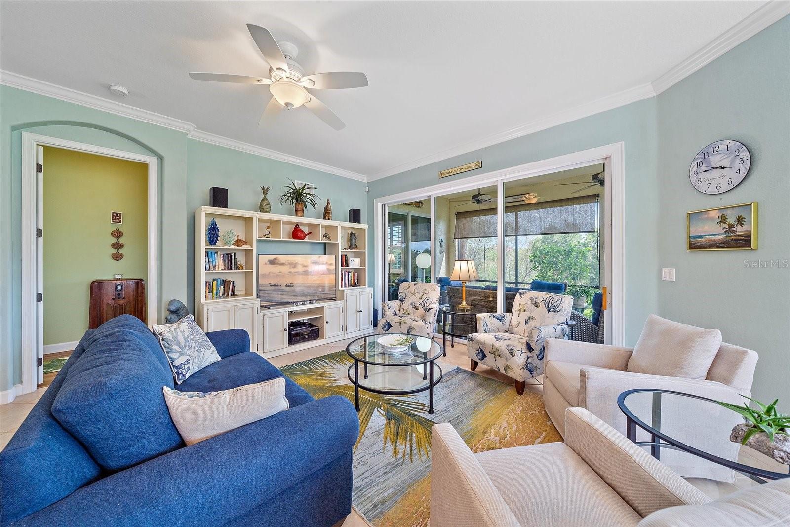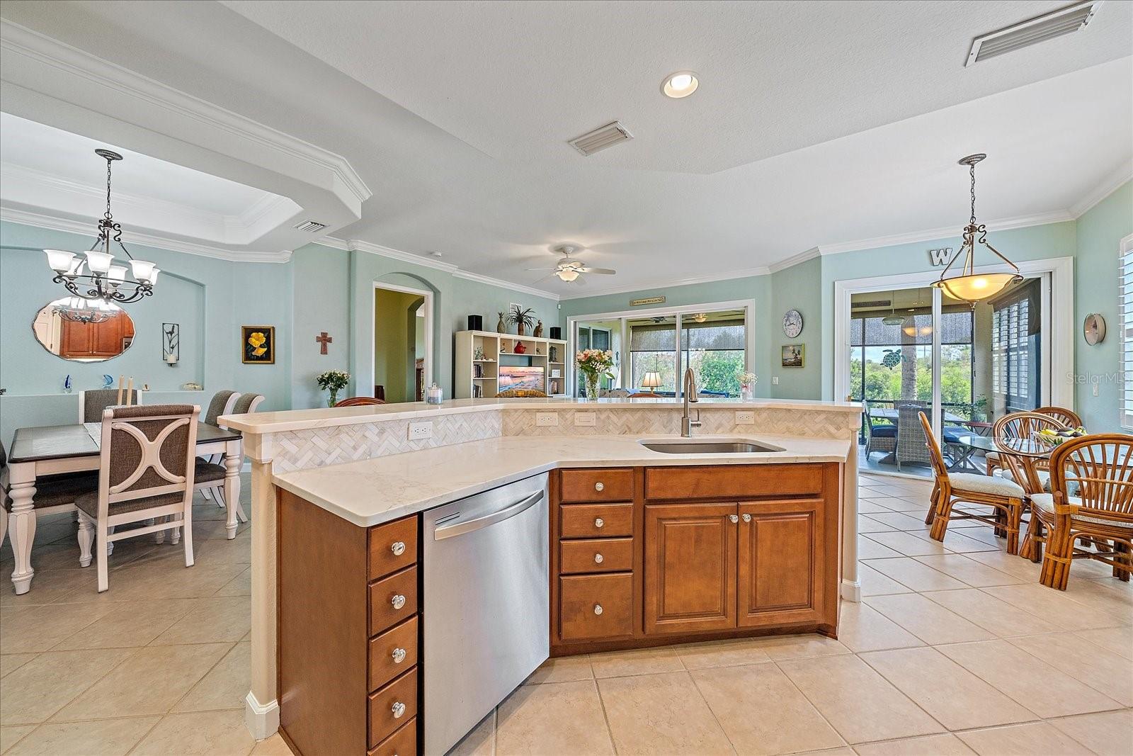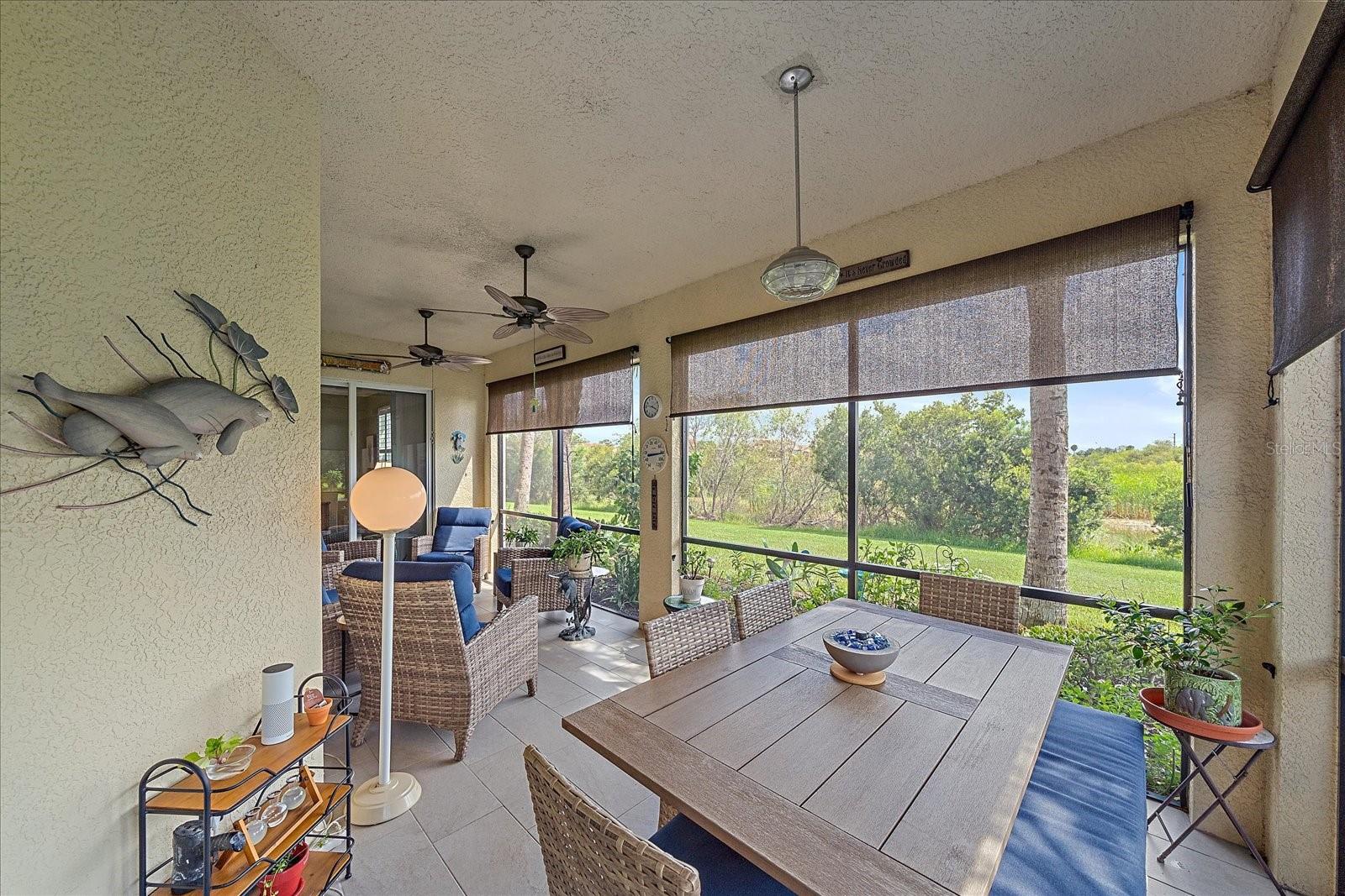 Welcome to your dream ground-floor condo where the Florida lifestyle meets comfort and luxury! This move-in ready home has been meticulously maintained and updated throughout the years. This community is filled with luxury amenities and serene landscape views. It's maintenance-free living at its finest, leaving you more time to enjoy life's pleasures. Nestled in the sought-after Venetian Golf & River Club, a 24-hour guard and gated community, in North Venice. Step inside this beautiful condo to discover a spacious Corsica floor plan spanning 1,753 square feet, featuring three cozy bedrooms and two pristine bathrooms. The living area greets you with high tray ceilings, hurricane IMPACT windows and sleek tile flooring, creating an airy and inviting atmosphere. Crown molding and plantation shutters add a touch of elegance throughout the home. The heart of this home is the kitchen, featuring soft-close cabinets with crown toppers, dazzling Quartz countertops that perfectly complement the stylish herringbone tile backsplash and a brand-new extended 20 inches quartz bar for casual dining or your morning coffee. A spacious walk-in pantry ready to hold all your gourmet ingredients and cookware. Modern appliances include a new Bosch refrigerator and a Kenmore gas cooktop ensuring your culinary exploits are both stylish and functional. The primary bedroom serves as a peaceful retreat, complete with recent updates like laminate flooring and a shade on slider for those lazy Sunday mornings. It also boasts an ensuite bathroom with a double sink vanity and a spacious walk-in shower, your own private spa day awaits every day! The additional bedrooms could be used as a den or office. They are both spacious and functional, featuring updated laminate flooring, ample closet space, and ceiling fans. Enjoy the screened-in lanai overlooking lush preserves, the perfect backdrop for your morning yoga or evening cocktails. The lanai is updated with tile flooring and roll-up shades, ensuring comfort and privacy. Living in this community means unparalleled access to resort-style amenities. Located just a short stroll from the River Club. Whether you fancy a dip in the heated pools by the tiki bar, enjoy a stroll through the 70-acre nature park, a game of tennis with friends, or a day spent on the 18-hole championship golf course, it's all available at your doorstep. Not to mention the Venetian River Club, where fitness and fun meet with facilities like a gym, Pilates classes, and more. Convenience is key, and this condo strikes the perfect balance between leisure and convenience. You'll have easy access to I-75, shopping, dining, The Legacy Trail, Venice Myakka River Park, and Sarasota Memorial Hospital - Venice Campus. Plus, you're never too far from Florida's stunning beaches and picturesque parks, providing endless opportunities for relaxation and recreation. One year home warranty included in the sale. So, if you're looking for a life of leisure and luxury, where every day feels like a vacation, make this beautiful condo your home, and invest in a Florida lifestyle where every day feels like a personalized retreat. Come find your slice of paradise here; you know you deserve it!