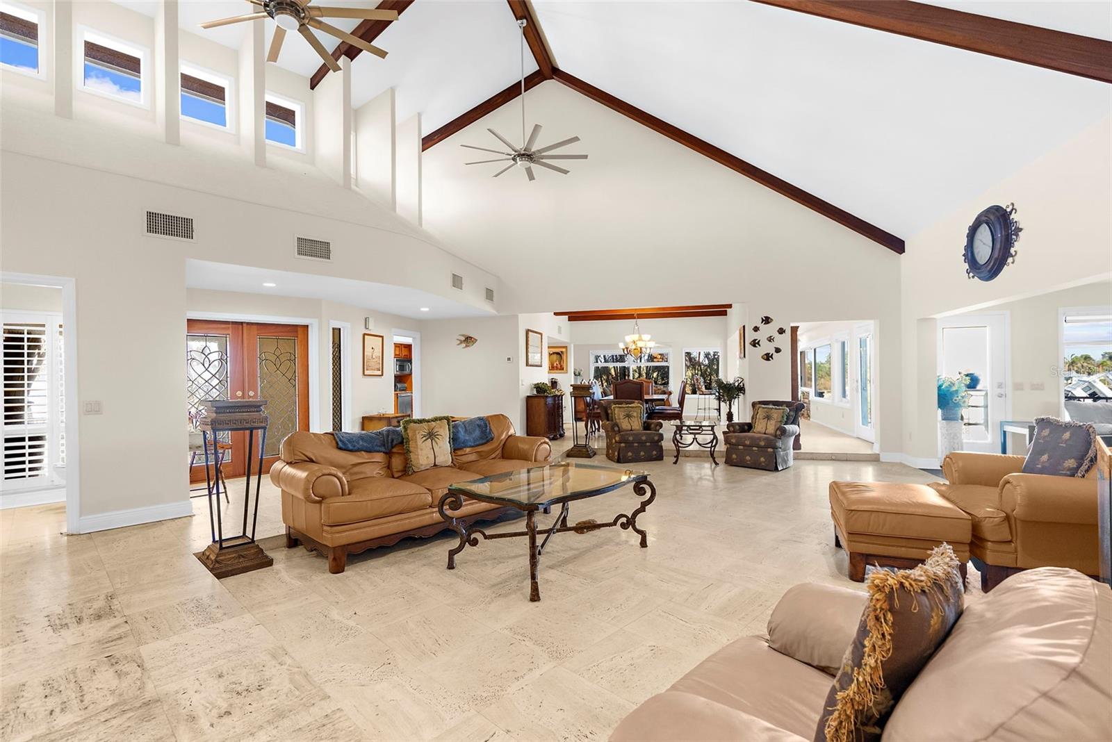 A RARE CASEY KEY OPPORTUNITY — Discover a 4,300+ sq. ft. STORM-RESISTANT waterfront residence that blends privacy, craftsmanship, and breathtaking bay views on one of Florida’s most exclusive barrier islands. This move-in ready estate sits on the serene shores of Little Sarasota Bay, offering a deep-water dock, a steel-roofed covered boat slip, a deep-water wet slip, and a 10-foot private deeded easement to a pristine Gulf beach. Inside, the light-filled Open Concept Living design features 18-foot vaulted Epi wood beam ceilings, custom stonework, and travertine marble floors, all oriented to capture sweeping 180-degree waterfront views overlooking the pool, spill-over spa, and Epi wood deck. The main-floor primary suite enjoys panoramic bay vistas, two large walk-in closets, and a jetted soaking tub, while the two upper-level guest suites each include walk-in closets and open to a charming shared balcony. A fourth bedroom/bonus room provides flexible living options. Additional features include an oversized two-car garage, two driveways with parking for up to 10 vehicles or a motorhome, and a rare 3,500+ sq. ft. climate-controlled lower-level storage space. Situated on a magical stretch of Casey Key with no high-rises, no traffic congestion, and resident-owned beaches, this private island offers an unmatched blend of tranquility and convenience. Residents enjoy warm Gulf breezes, quiet shoreline walks, and golf-cart access to nearby tiki bars, restaurants, grocery store, pharmacy, dog groomer, boutique shopping, and more. Located just west of the historic Blackburn Point Bridge, the property provides excellent proximity to Sarasota and Venice, top-rated schools, fine dining, cultural attractions, and world-class medical facilities. Casey Key is the only barrier island in the region with an expressway connection from Tamiami Trail directly to I-75, ensuring effortless travel to all major international airports and private aviation options within minutes. Recently recognized as the most coveted street address in the nation, Casey Key offers a truly unparalleled coastal lifestyle.