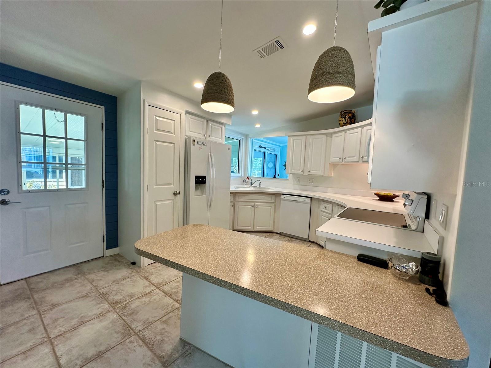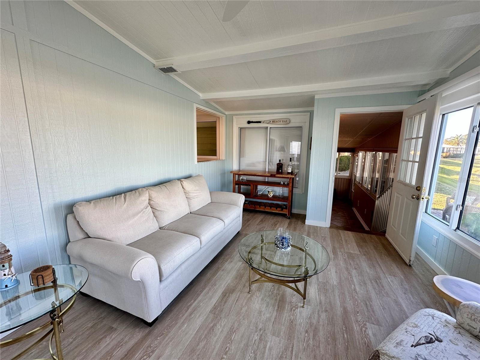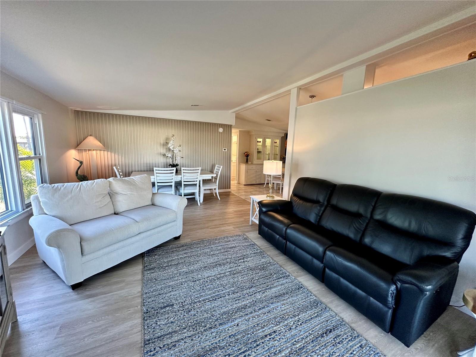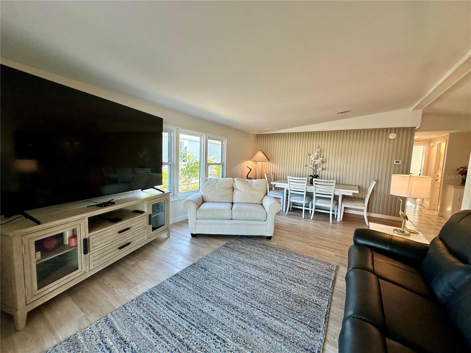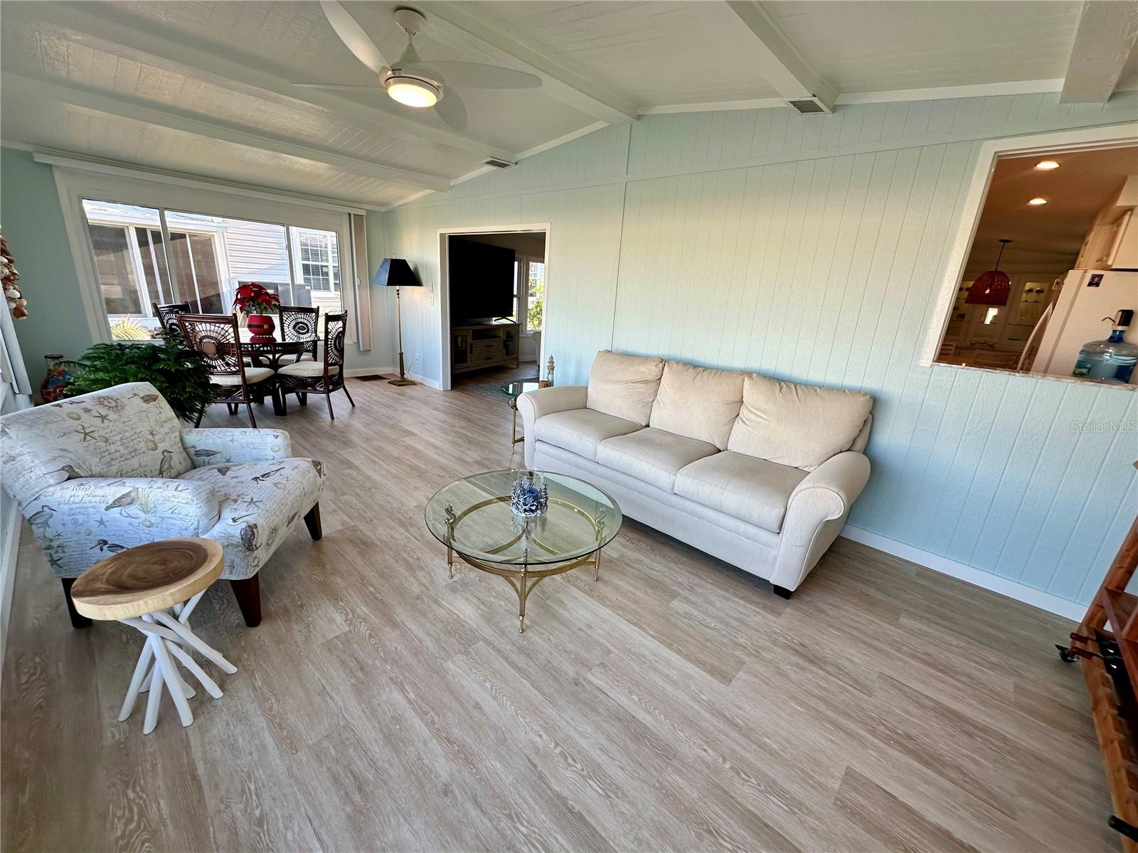 Outstanding remodeled home with many unique features on the lake for your consideration. Large kitchen with new appliances and separate dining table with striking shiplap accent wall and built-in cabinetry. The living room with a custom design accept wall and a massive entertainment area opens into a family room with an incredible view of the lake. Living with top-down bottom-up shades and family room with side sliding Hunter Douglas shades for that extra special touch. Walk down to the lower-level finished bonus room/office that is air conditioned and leads out to the back paver patio with outside seating as you enjoy living on the water and BBQ for grilling. The guest bedroom has one-of-a-kind custom built-in bunk room for visiting family with kids in addition to a walk-in closet. The primary bedroom with a rich wooden 4 pillar king bed with double closet and the ensuite bathroom has a large, tiled shower. New cathedral ceilings, sheetrock walls, luxury vinyl plank flooring, rebuilt Permaguard windows throughout and new roof. The finished laundry facility with utility sink is off the front tiled lanai. The carport will be repaired, parts on order. Start living like a royals in your very own castle right here at King’s Gate Club.