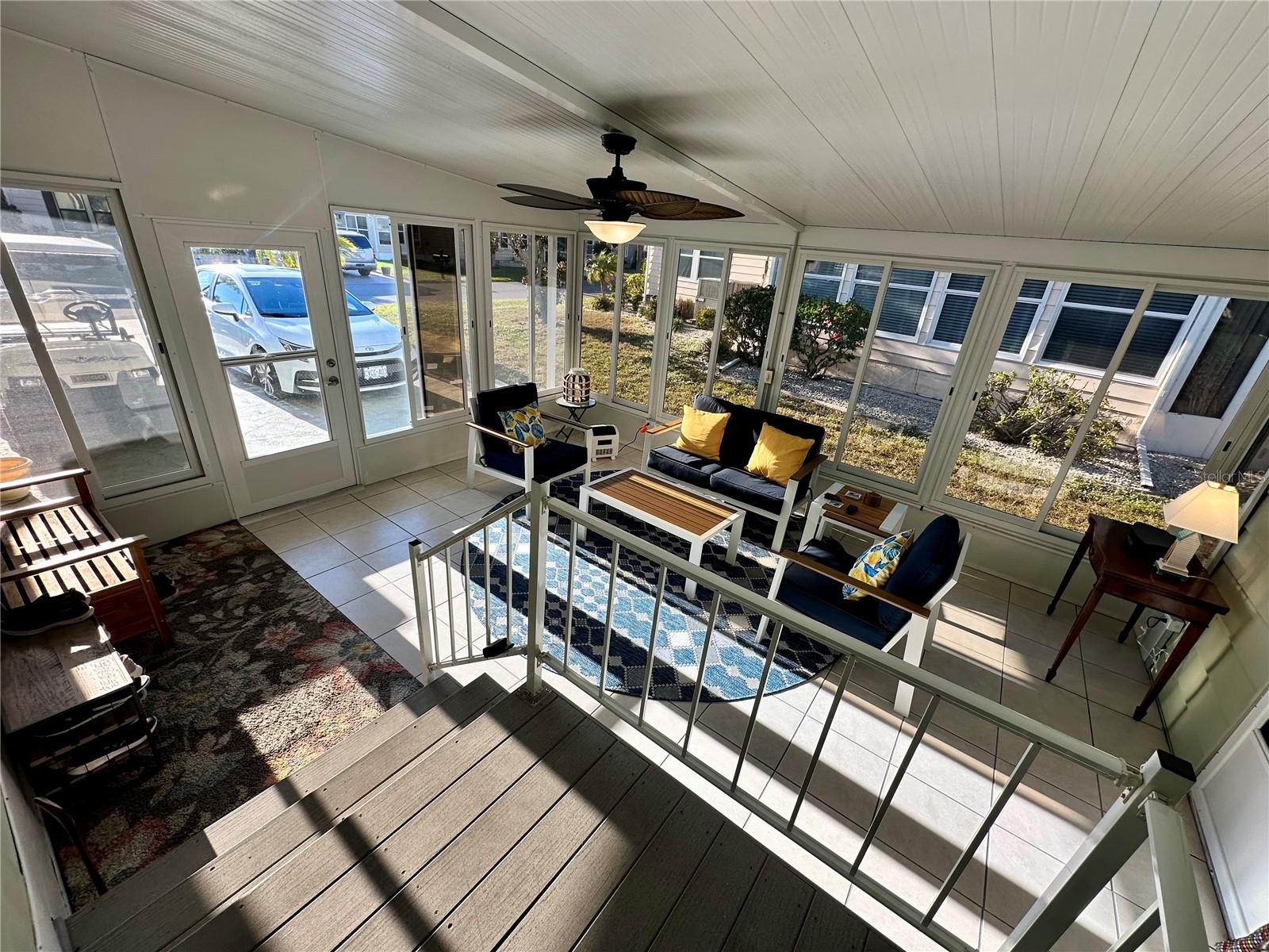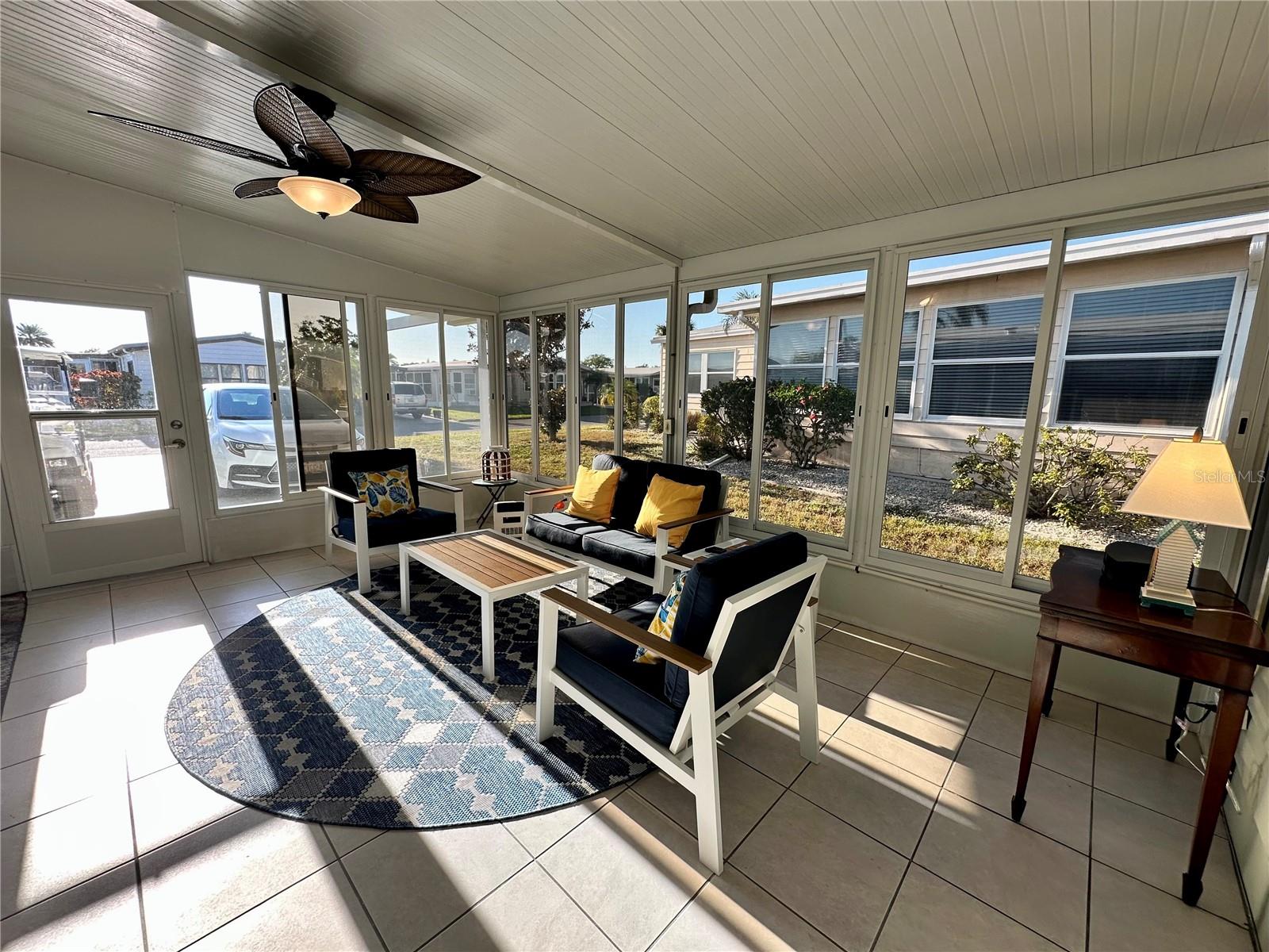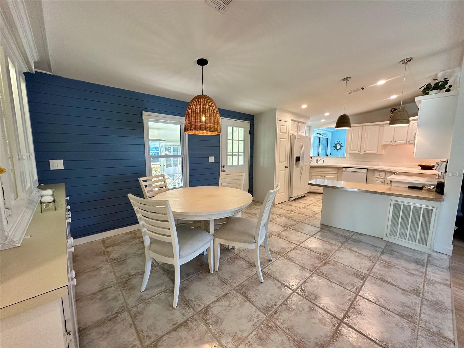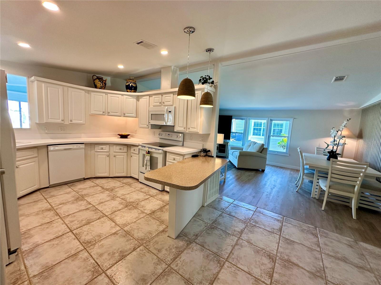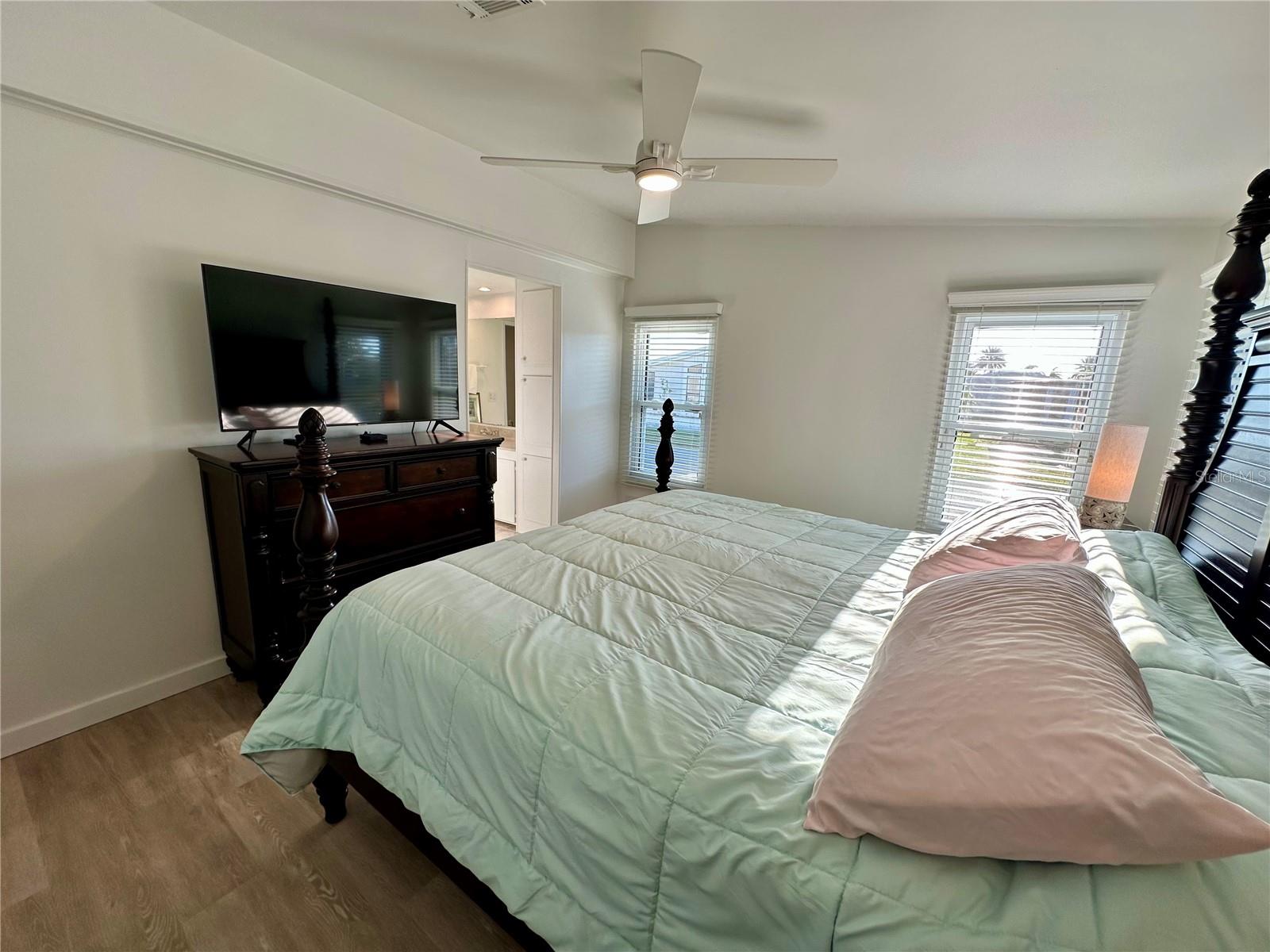 Outstanding remodeled home with many unique features on the lake for your consideration. Large kitchen with new appliances and separate dining table with striking shiplap accent wall and built-in cabinetry. The living room with a custom design accept wall and a massive entertainment area opens into a family room with an incredible view of the lake. Living with top-down bottom-up shades and family room with side sliding Hunter Douglas shades for that extra special touch. Walk down to the lower-level finished bonus room/office that is air conditioned and leads out to the back paver patio with outside seating as you enjoy living on the water and BBQ for grilling. The guest bedroom has one-of-a-kind custom built-in bunk room for visiting family with kids in addition to a walk-in closet. The primary bedroom with a rich wooden 4 pillar king bed with double closet and the ensuite bathroom has a large, tiled shower. New cathedral ceilings, sheetrock walls, luxury vinyl plank flooring, rebuilt Permaguard windows throughout and new roof. The finished laundry facility with utility sink is off the front tiled lanai. The carport will be repaired, parts on order. Start living like a royals in your very own castle right here at King’s Gate Club.