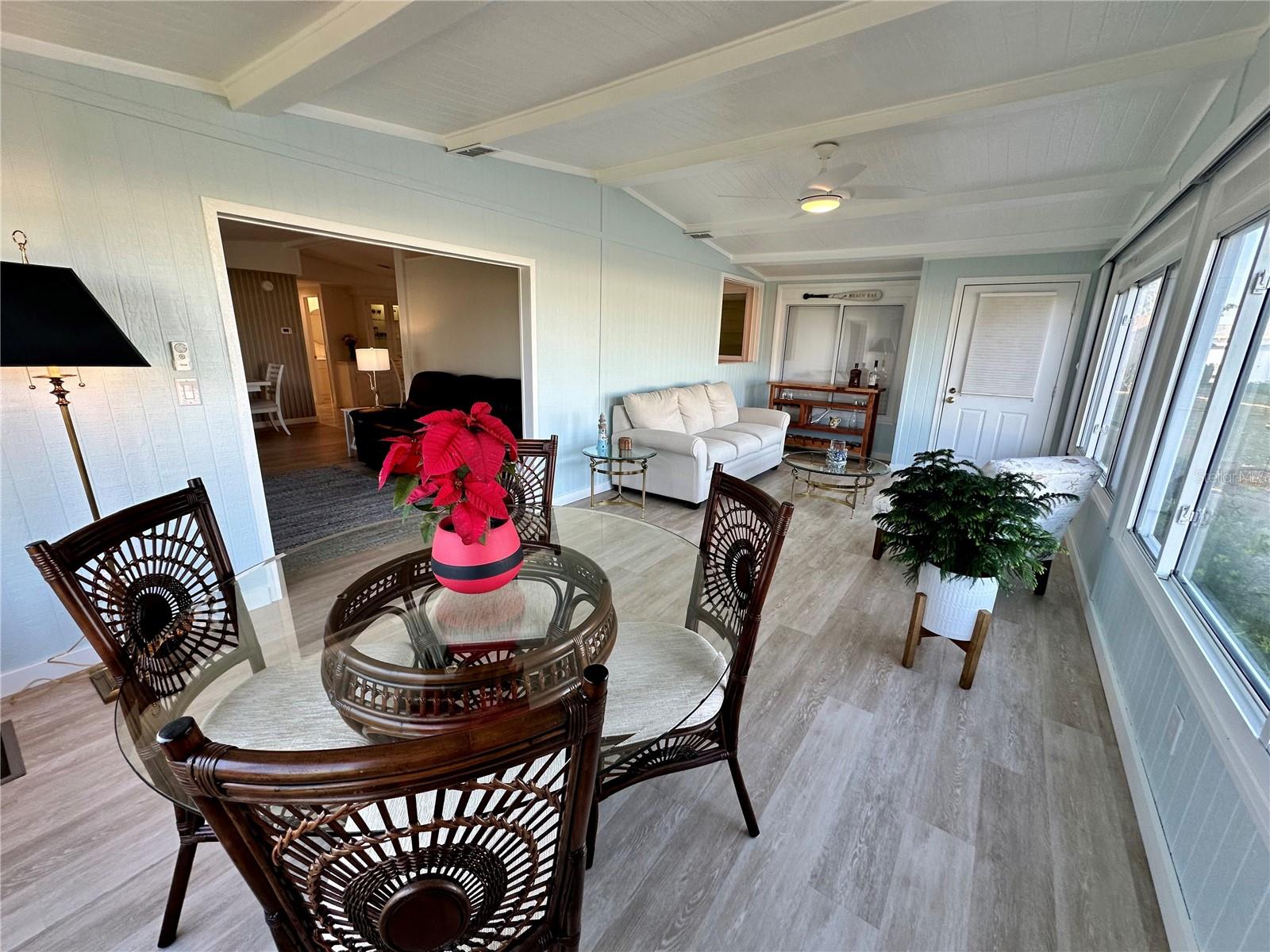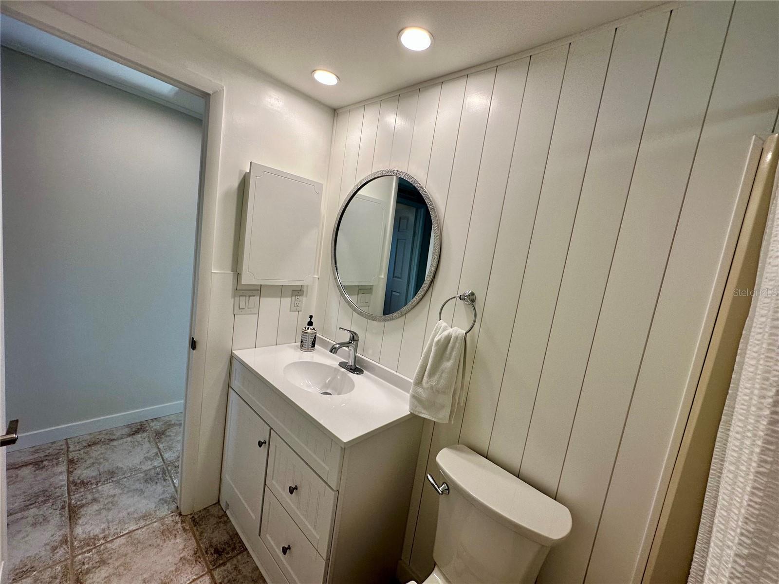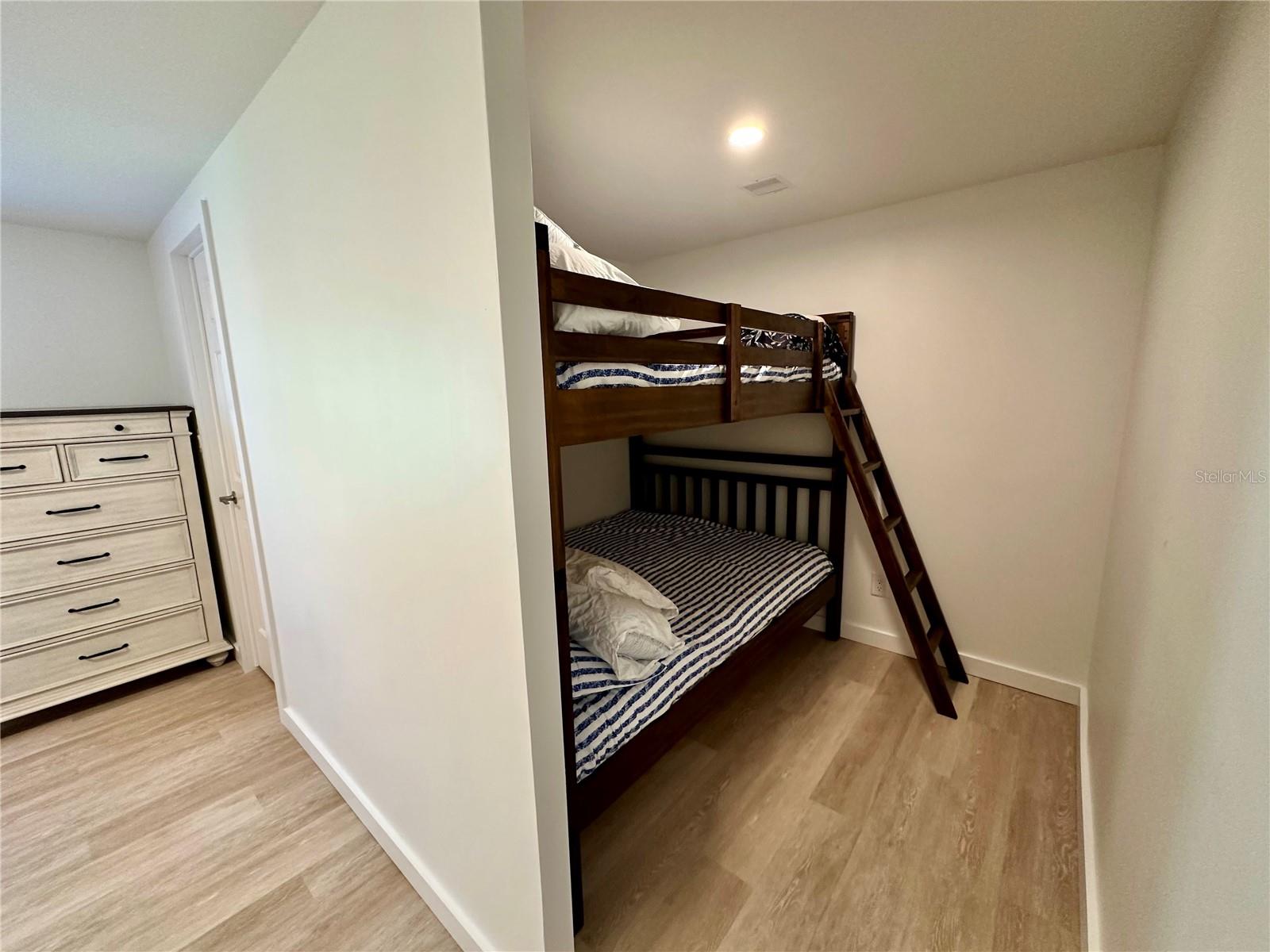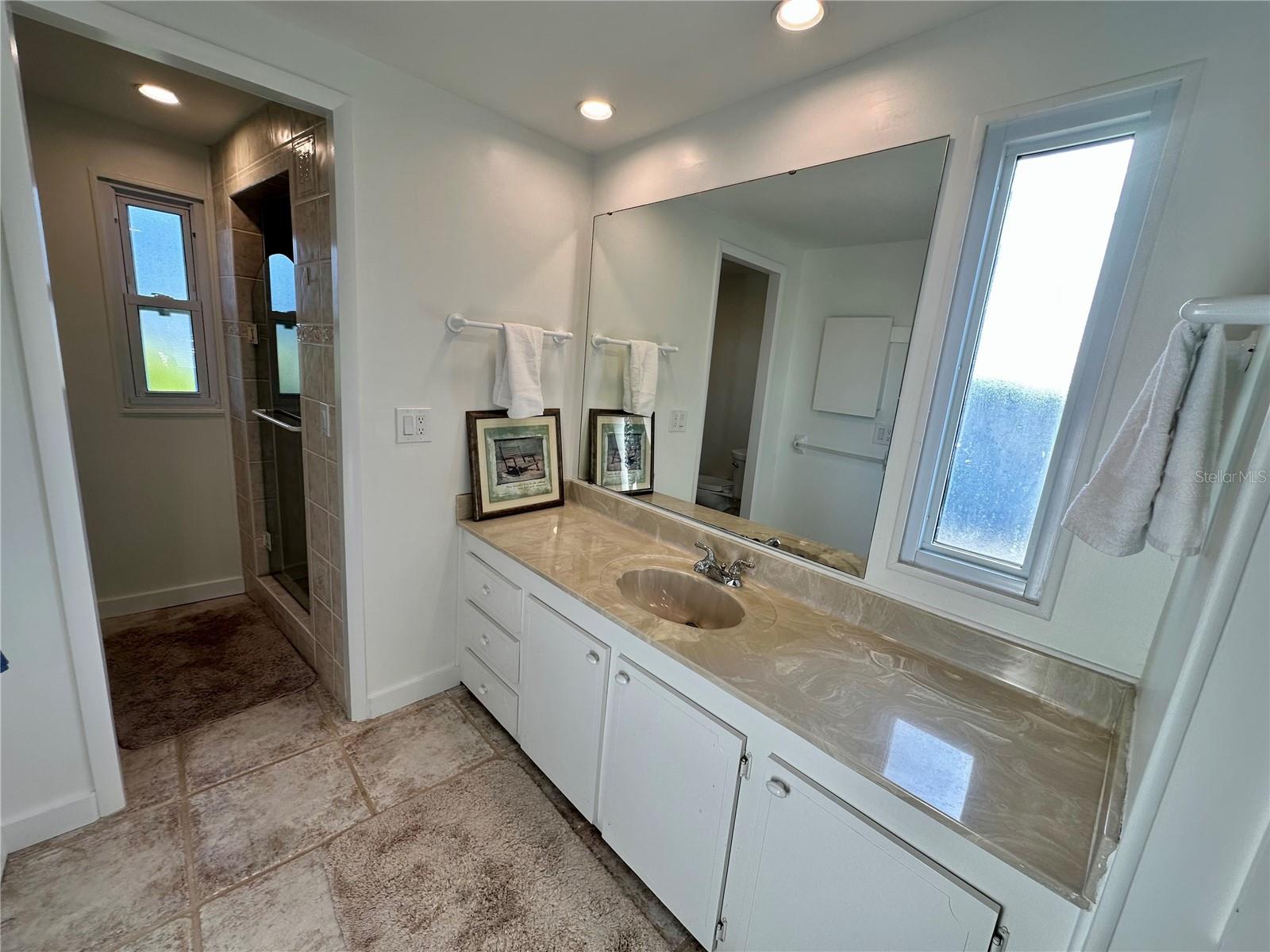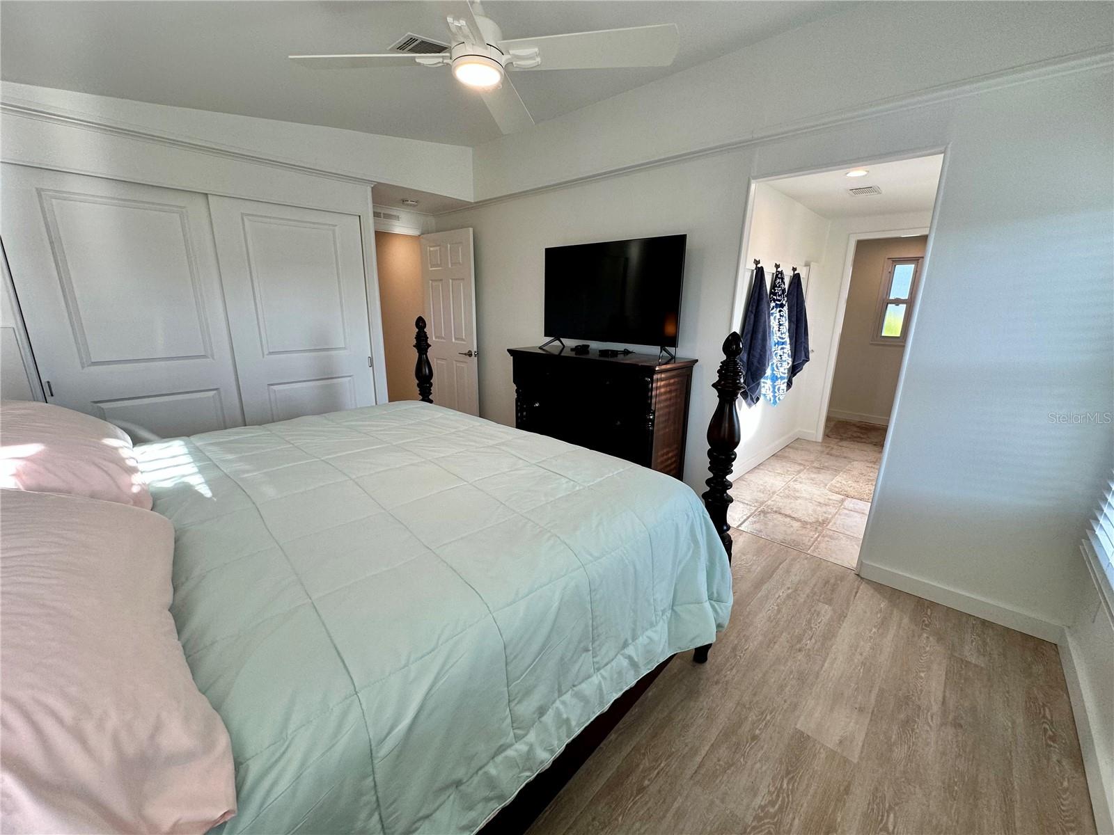 Outstanding remodeled home with many unique features on the lake for your consideration. Large kitchen with new appliances and separate dining table with striking shiplap accent wall and built-in cabinetry. The living room with a custom design accept wall and a massive entertainment area opens into a family room with an incredible view of the lake. Living with top-down bottom-up shades and family room with side sliding Hunter Douglas shades for that extra special touch. Walk down to the lower-level finished bonus room/office that is air conditioned and leads out to the back paver patio with outside seating as you enjoy living on the water and BBQ for grilling. The guest bedroom has one-of-a-kind custom built-in bunk room for visiting family with kids in addition to a walk-in closet. The primary bedroom with a rich wooden 4 pillar king bed with double closet and the ensuite bathroom has a large, tiled shower. New cathedral ceilings, sheetrock walls, luxury vinyl plank flooring, rebuilt Permaguard windows throughout and new roof. The finished laundry facility with utility sink is off the front tiled lanai. The carport will be repaired, parts on order. Start living like a royals in your very own castle right here at King’s Gate Club.
