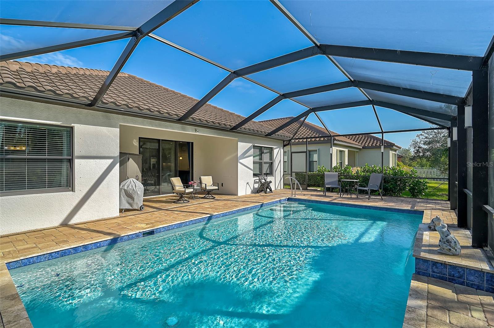 Motivated sellers who will entertain any and all reasonable offers. Welcome to your dream home in the highly sought-after Milano Villages! This stunning 3-bedroom, 3-bathroom Pool home with lighted pool and cage! Complete with a versatile den/study, offers the perfect blend of comfort, style, and convenience. Step inside to discover elegant tile flooring throughout, complementing the open and airy floor plan. The kitchen is a chef's delight, featuring stainless steel appliances, a tile back splash, and granite countertops that make cooking a joy. Ceiling fans are thoughtfully placed in every room, providing year-round comfort. The 3rd bedroom includes a private ensuite bathroom, perfect for guests or multi-generational living. Enjoy serene views of the sparkling pool from your main living areas or while relaxing on the patio—a tranquil oasis right outside your door. Milano Villages boasts an array of amenities, including a Clubhouse, 3 Pickleball Courts, 2 Bocce Ball Courts, Heated Pool and Spa and Dog Park. Located just minutes from downtown Venice and some of Florida’s most beautiful beaches, this home offers both a vibrant community lifestyle and easy access to coastal living. Don’t miss this opportunity to make this exceptional property your forever home. Schedule your showing today!