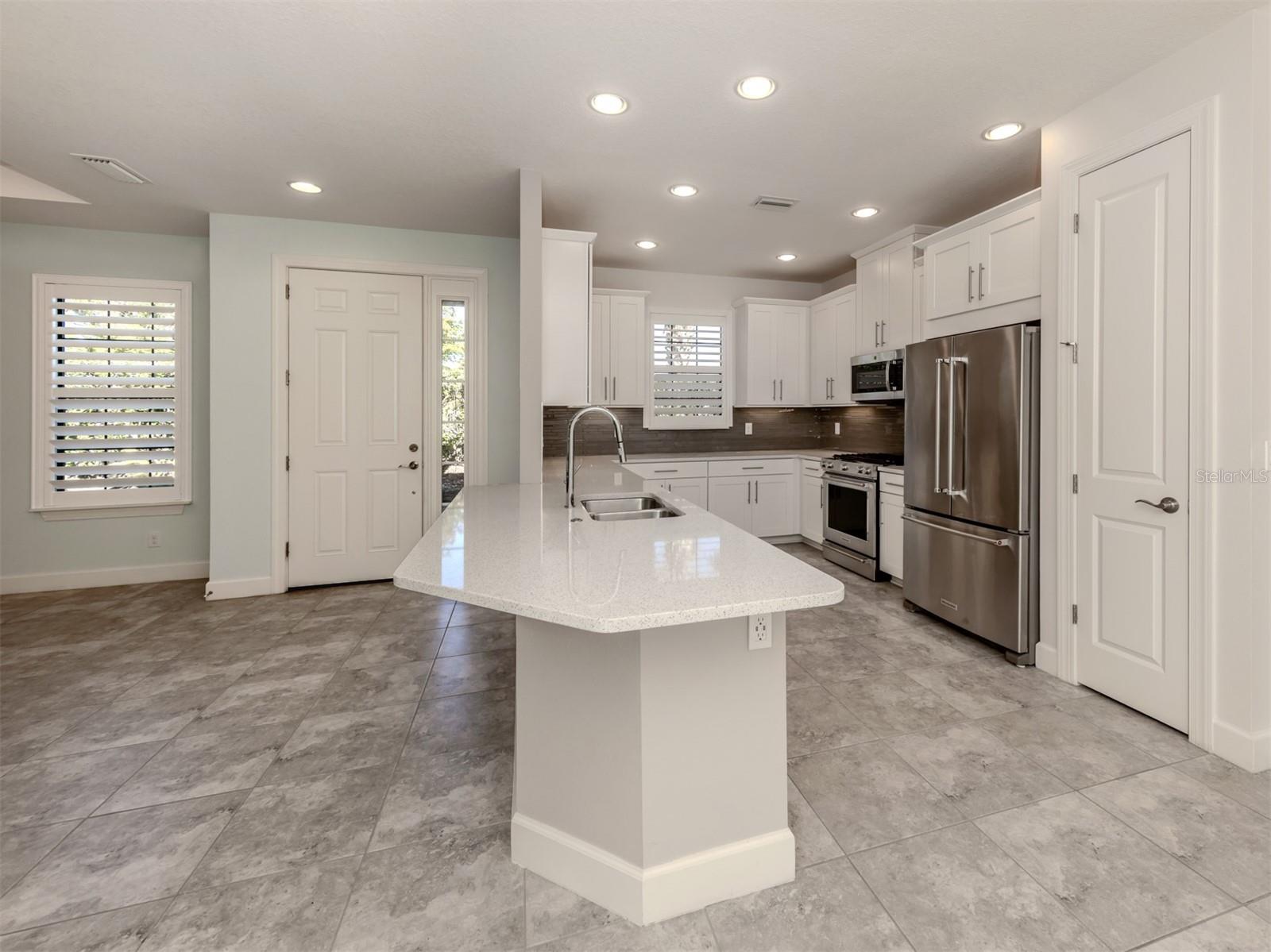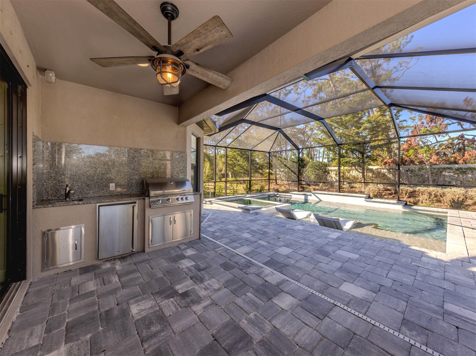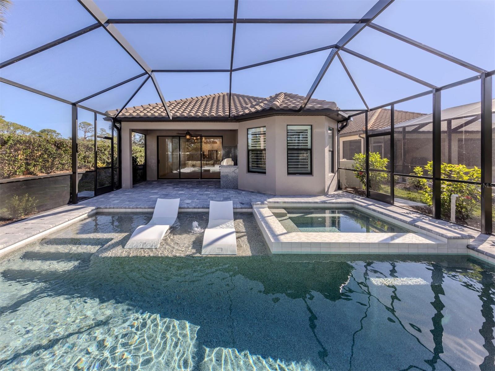 One or more photo(s) has been virtually staged. This Taylor Morrison 2/2 plus flex room Roma model is nestled in an unique, one of a kind location in beautiful Bellacina By Casey Key. The side entrance faces directly towards one of the community's green spaces, the backyard has a water view of one of its ponds and it's only doors down from the community's private entrance to Legacy Trail. This premium outdoor kitchen has everything you need to keep you out of your indoor kitchen: gas grill, sink and refrigerator. Gather around the new, 2 year old heated, Pebble-tec saltwater pool features a spacious 14' wide sunshelf, relaxing spa, and tranquil waterfall. This primary suite has spacious bay windows to enjoy some of the best views of the community and a spa-like ensuite with a frameless glass step-in shower, and custom walk-in closet systems. Bellacina By Casey Key is conveniently located off route 681 in Nokomis between Venice and Sarasota and boasts a beautifully appointed clubhouse with a heated resort-style pool,spa, fitness center, tennis, pickleball, fire pit and two dog parks. Owner agent.