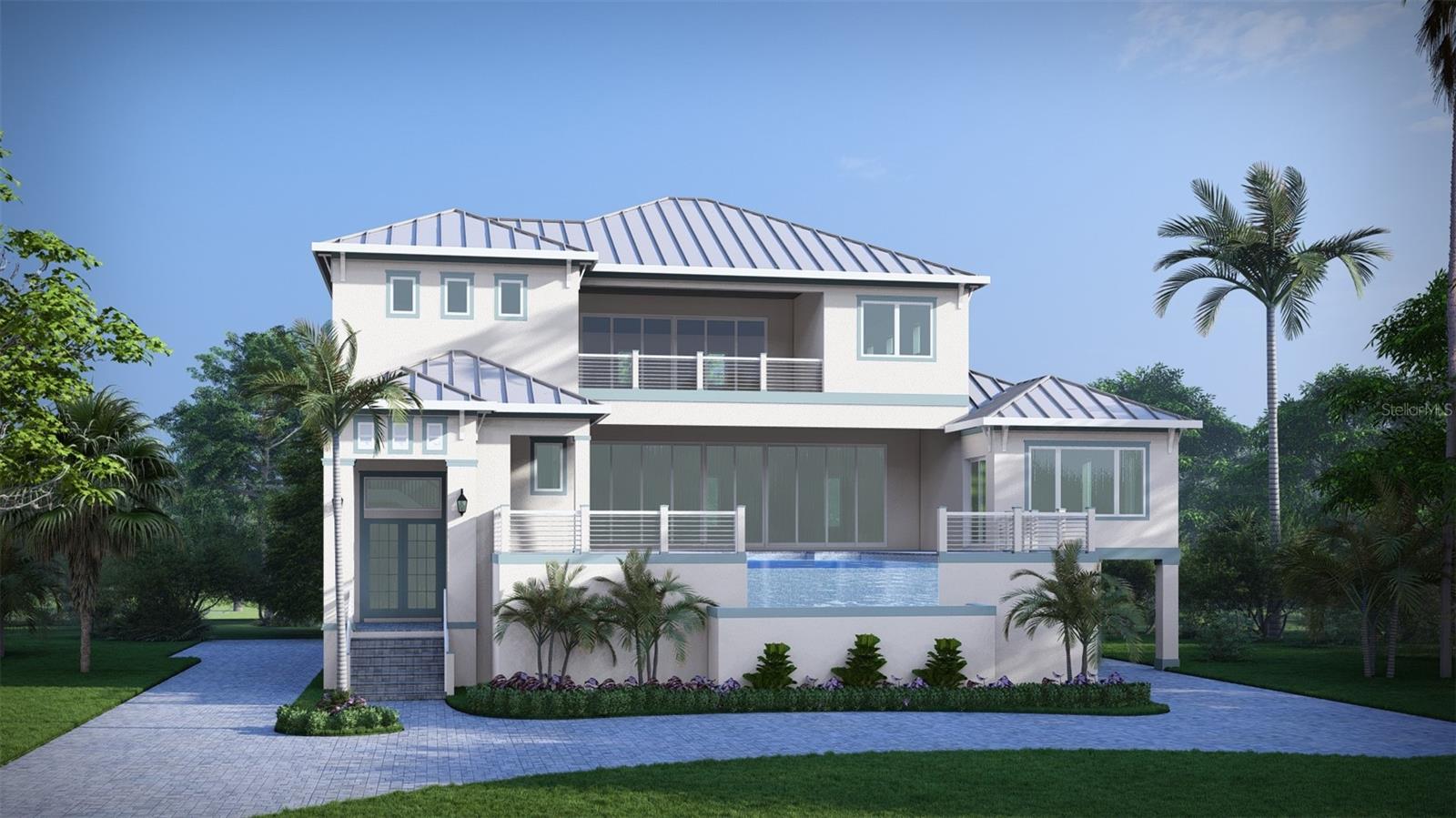 Pre-Construction. To be built. Introducing another luxury custom home by MPS Development and Construction on Robert’s Bay. This waterfront property offers a boater’s dream lifestyle with an 80’ dock located directly on the Bay. This spacious custom home layout is perfect for families, couples, and anyone who values coastal living. With 4 bedrooms, 4 bathrooms a powder room half bath and a separate pool bath this home spreads across approximately 4,200 living square feet which features a large, open floor plan living area that is excellent for entertaining guests or just relaxing with family and friends. Located on the ground level is a 4-car garage to accommodate several vehicles, golf cart, bicycles, jet skis, kayaks or any type of storage you may need. An elevator is available to take you from the ground floor to the upper levels of the home. The main level is comprised of the master suite area, spacious kitchen with large island and walk-in pantry as well as laundry/utility room and a dining room and great room that look out onto a spacious covered lanai onto the pool/spa deck area that look out onto the bay. The upper level offers a centralized bonus room with a covered porch where you can enjoy more waterfront views as well as looking over the swimming pool and spa area. The bonus room is also surrounded by 3 ensuites, each with walk-in closets. You also have the opportunity to customize this pre-construction home to fit your lifestyle should you so desire. MPS has their own in-house Design Center where our Design Coordinator would work with you on all the pertinent selection details for your new home. Sunrise Drive is a very quiet cul-de-sac street with multi-million dollar homes, and is just minutes to downtown Venice where you can enjoy the many boutiques, shops, restaurants and the many parks located within the area. Both Nokomis and Venice beaches are just a few miles away. Why not make your dream of waterfront living a reality today!