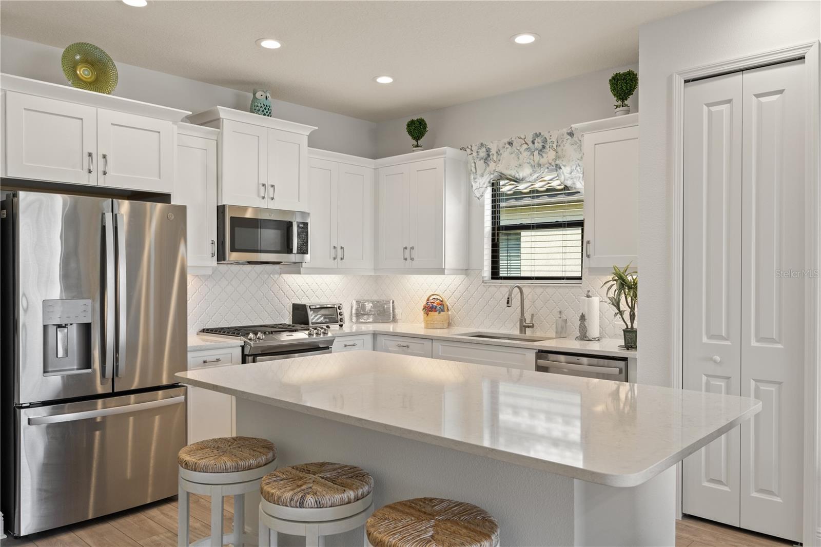 Welcome to this stunning 2024-built Crystal Sand villa in the sought-after Vicenza community of Venice, FL! This 2-bedroom, 2-bathroom + den/flex space home is loaded with upgrades such as impact windows and offers an open, airy design with luxury vinyl plank flooring throughout. The gourmet kitchen is a chef’s dream, featuring a gas stove, high-end white cabinets, quartz countertops, designer tile backsplash, and a spacious center island, perfect for entertaining. The great room boasts a tray ceiling with recessed lighting and flows seamlessly to the extended covered lanai, where you can enjoy beautiful lake views. The primary suite is a relaxing retreat with two closets, including a walk-in closet, and a spa-like bathroom with dual vanities, a walk-in shower, and a private water closet. A versatile den can be used as an office or formal dining space. Additional features include impact windows, a gas water heater, a gas line on the lanai for the barbeque grill, a two-car garage, and plenty of natural light throughout. Located in Vicenza, a vibrant community with fantastic amenities, residents enjoy a resort-style pool, clubhouse, pickleball courts, dog park, and bocce ball. The community's low quarterly fees for the villa association provides lawn care as well as reserves for roof replacement and exterior painting. With easy access to downtown Venice, beaches, and I-75, this beautifully upgraded home is perfect for year-round living or as a second-home retreat. Schedule your showing today!