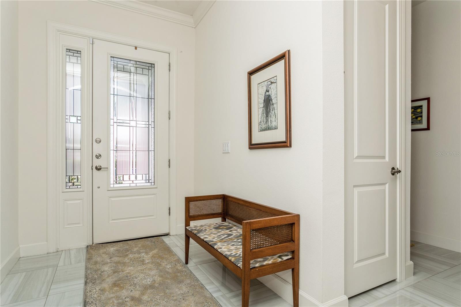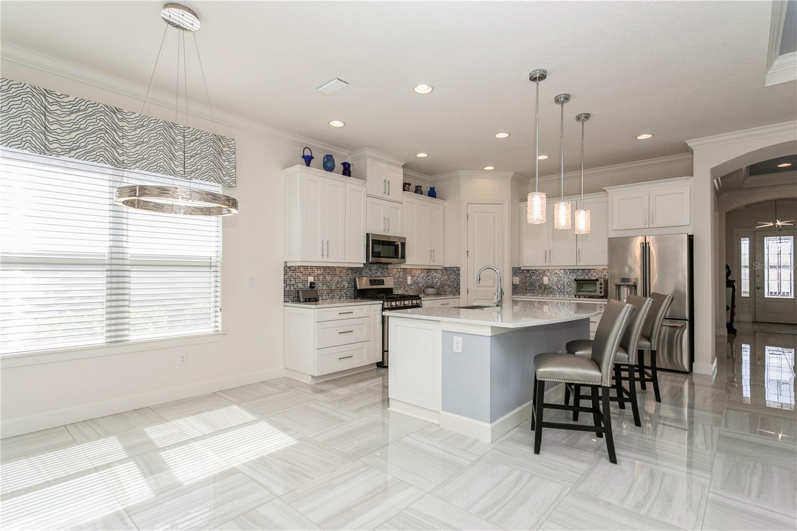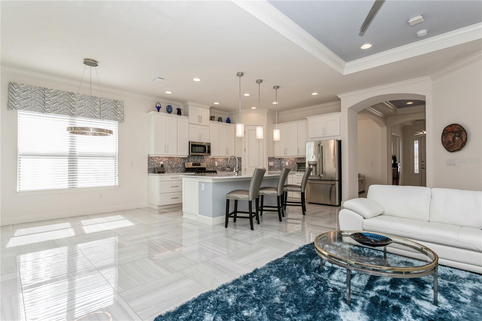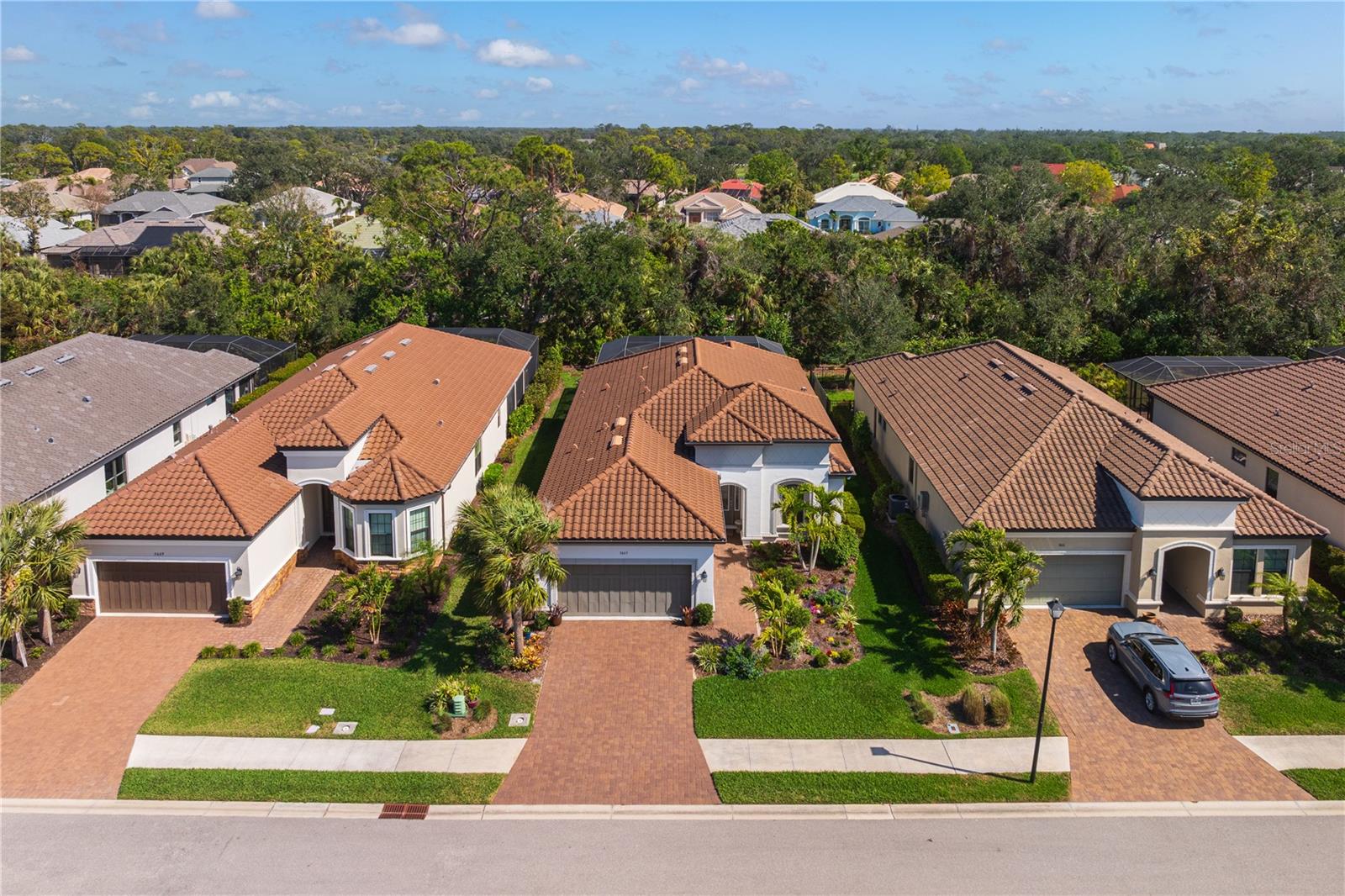 Welcome to this exquisite Taylor Morrison Farnese model home, nestled in the beautiful and serene community of Bellacina by Casey Key. Featuring 2 bedrooms, 2.5 bathrooms, a den, and a separate dining room, and includes IMPACT WINDOWS AND DOORS. This home offers a blend of luxury and functionality, perfect for modern living. As you step inside, you’ll be greeted by a grand foyer with tray ceilings and elegant crown molding, setting the tone for the rest of this immaculate home. The 24" x 24" polished porcelain tile flows throughout the entire home, adding a touch of sophistication and ease of maintenance. Silhouette window treatments enhance the beauty of each room while offering light control and privacy. The gourmet kitchen is a chef's dream, featuring a large kitchen island, stainless steel GE Café appliances, including a natural gas stove and a stunning GE Café refrigerator. Quartz countertops, a spacious kitchen nook, and abundant cabinetry make this kitchen both functional and stylish. The spacious living room is bathed in natural light, thanks to triple sliders leading to an expansive outdoor living area. The screened-in lanai offers a perfect retreat with plenty of space for dining and relaxing, while the gorgeous rectangular pool, complete with a waterfall feature and sun shelf, adds a luxurious touch. The area is also plumbed for an outdoor kitchen, making it an ideal spot for entertaining. The large primary suite, located at the back of the home, overlooks a peaceful preserve and boasts a spacious walk-in closet and a luxurious ensuite bathroom. The ensuite features a beautifully tiled walk-in shower, providing the ultimate retreat after a long day. The second bedroom also has its own en-suite, providing privacy and comfort for guests. Additionally, the laundry room comes fully equipped with a washer, dryer, and ample cabinetry for extra storage. The extended garage is outfitted with durable epoxy flooring, offering both style and practicality. The home is located in a non-flood zone and has no CDD fees, adding even more appeal to this stunning property. Living in Bellacina by Casey Key offers more than just a beautiful home. Enjoy resort-style amenities including a sparkling community swimming pool with cabanas, a state-of-the-art clubhouse with a chef’s kitchen, a 24-hour fitness center, outdoor spa, and a cozy fire pit. There are walking trails, 4 pickleball courts, a tennis court, bocce courts, a playground, and 2 dog parks. A full calendar of events is organized by the on-sight Activities Director ensuring there’s always something to do and the full-time HOA manager is on-site as well. Location is key! Bellacina is only a 2.5 mi. golf-cart ride from Nokomis Beach, 5 miles from historic downtown Venice, 20 minutes to the world-renowned Siesta Key, and 30 minutes to downtown Sarasota and SRQ International Airport. This home is not just a gorgeous residence....it's a lifestyle!!