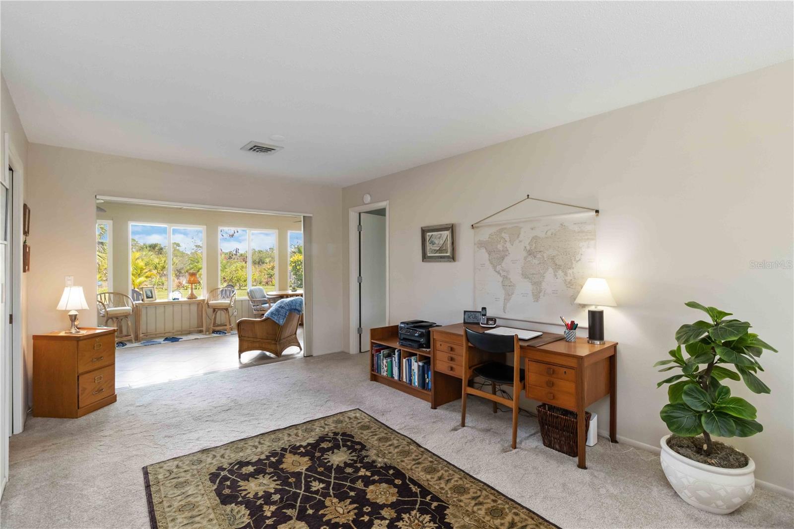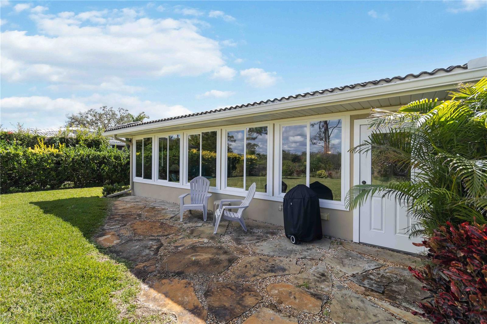 Serene Sorrento East Home Backing Up to Oscar Scherer State Park with easy access to Legacy Trail! Tranquility and privacy await in this spacious 2-bedroom, 2-bath home in the highly desirable Sorrento East community! Nestled along the peaceful backdrop of Oscar Scherer State Park, this property offers a serene retreat while remaining close to shopping, dining, and Venice and Nokomis Beach. Inside, you'll find hurricane-impact windows throughout and plantation shutters on the front windows. The thoughtfully designed floor plan includes a formal living room, family room, and dedicated dining space, creating an inviting and functional layout. The updated master bathroom and walk-in closets in both bedrooms add to the home’s appeal. The kitchen boasts striking granite countertops, while the adjacent utility room provides extra storage. The remodeled, enclosed Florida room offers a perfect space to enjoy the lush surroundings year-round. Additional features include wall cabinets in the garage and a neutral color palette that enhances the home’s natural light and effortless flow. This meticulously maintained property reflects true pride of ownership. Whether you’re relaxing in the private backyard oasis, exploring the nature trails nearby, or hopping on the Legacy Trail, this home offers the perfect blend of peaceful living and convenient location. Schedule your showing today!