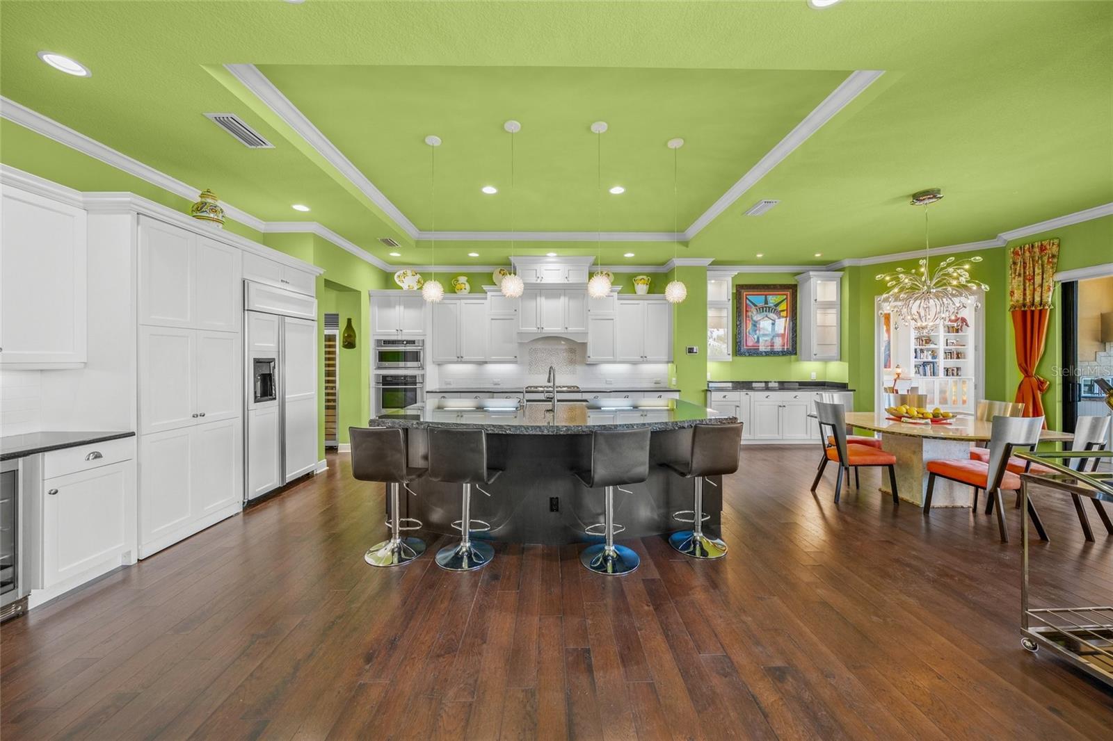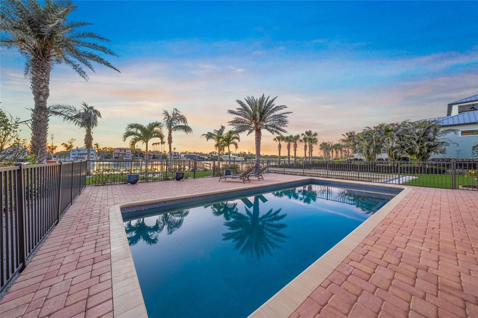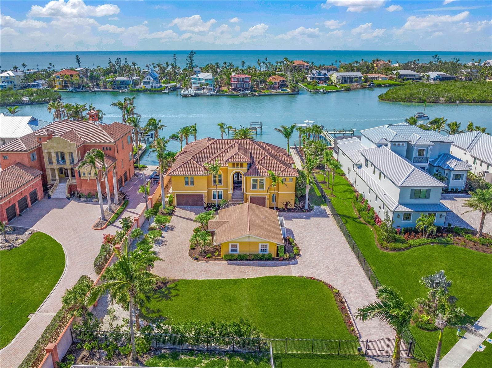GREAT PRICE IMPROVEMENT! “This is exactly where I Want to be!” That will be the thought as you tour this extraordinary gated estate on the Intracoastal Waterway, with a two-bedroom guest house! Built in 2014, designed by renowned Arthur Rutenberg & boasting over 3500 square feet of living space on one level. The open-concept design is bright & airy, completed by glass walls revealing panoramic views & vibrant sunsets. A few stand-out features are 12-foot coffered ceilings in Great Room, 10-foot ceilings throughout, solid 8-foot doors, security system & elevator. Upgrades include impact-resistant windows & doors, engineered hardwood floors, porcelain tiles, crown molding, plus gourmet kitchen with oversized island, walk-in pantry, Butler’s Pantry with wine cooler, five-burner gas stove, custom wood cabinetry & a built-in 150 bottle Viking wine refrigerator. All air conditioning units were replaced in the last 3 years, with one updated in February 2025. A luxurious, private Master Suite spans 783 square feet along north side of the residence, with tray ceilings, two walk-in closets, impressive master bathroom, & a glass door opening to a covered lanai. Just outside the Master Suite, is a large custom office with built-ins & Plantation shutters. The south side of the residence boasts a spacious, waterfront library with stunning views and fully customized shelving & cabinets. There are two additional bedrooms with plantation shutters, one en-suite, a third bathroom, and the elevator & split-level stairway to the ground floor. The large laundry room is nicely equipped with New Maytag washer & dryer, custom cabinets & plantation shutters. There is a wonderful covered & screened outdoor kitchen fully equipped with an American Outdoor Grill, sink, refrigerator, counter space, & large dining area. Access the rear staircase, from a 2nd lanai to go down to the pool area with an enormous paver deck, bonus room & the dock, with 13,000 lb boat lift and water service. The 3100+ square foot ground floor contains an oversized three-car garage, numerous storage rooms, & convenient bonus room with A/C, full bathroom & sliding glass doors to another covered lanai & heated, saltwater pool. Whether indoors, on a lanai, pool deck, or dock, enjoy front-row seats to nature’s finest entertainment! Hear the Gulf waves roll onto shore, soaring osprey & seagulls, & bi-weekly Drum Circle on Nokomis Beach. Enjoy daily sightings of manatee and dolphin, and boats of all types ranging from runabouts to luxury yachts over 100 feet! The spacious guest house is fully remodeled, updated & furnished, with a open floor plan, well equipped eat-in kitchen, 2 bedrooms, 1 bathroom, 2 vanities & independent laundry. Nestled at the waterfront end of a private lane, shared only by two other homes, on a 26,000+ square foot lot, four blocks north of Albee Bridge & across from Casey Key & Nokomis Beach. Embrace the beach lifestyle, where you can easily golf cart, bike, or walk to waterfront dining, tiki bars with live music. Golf carts are a favorite mode of transportation in Nokomis Beach, so a car is not necessary to shop or do everyday errands! Golf Cart to Publix, pharmacy, Post Office, nail salon, dog groomer, haircut, boutique shopping & much more. Evening sunsets ignite the sky into rotating vibrant colors, & in that moment, you’ll know, “Nokomis is not Just a place, but a State-of-Mind & this is Right where I Need to be!”