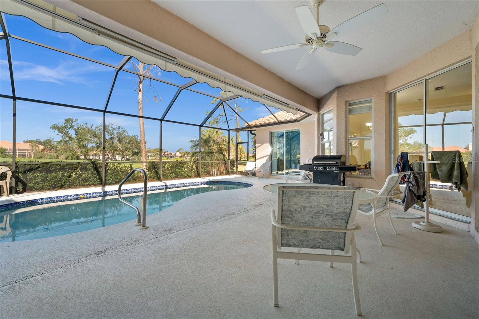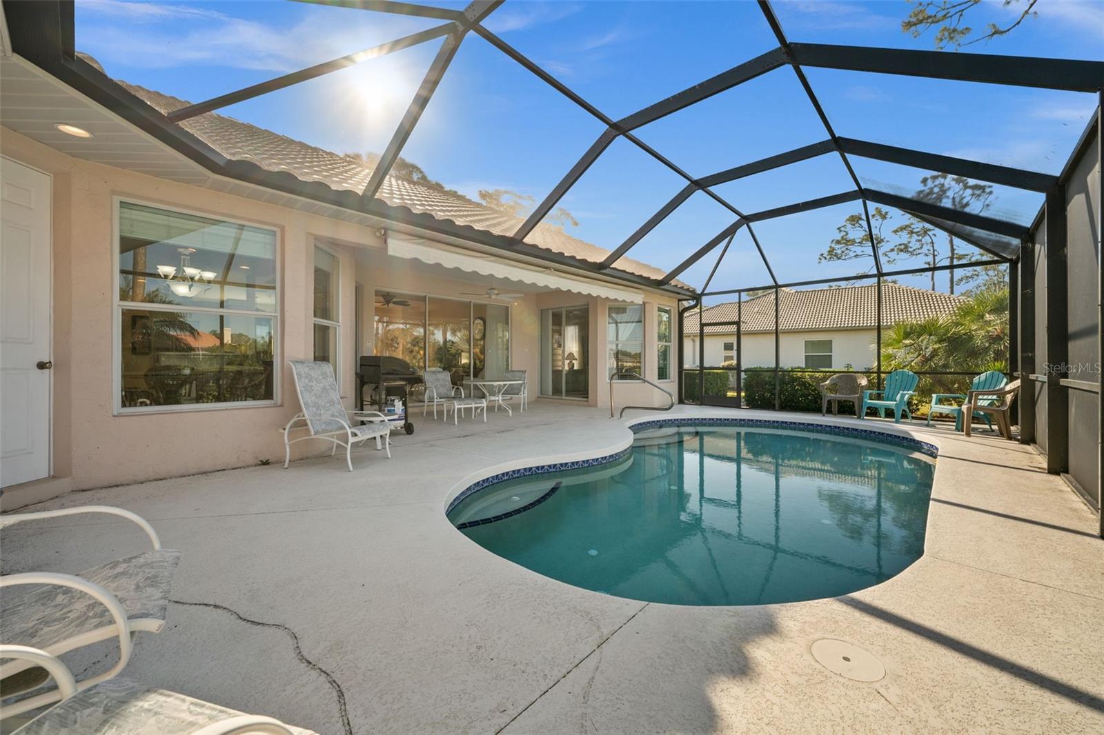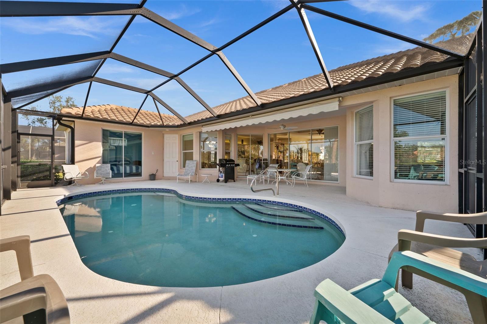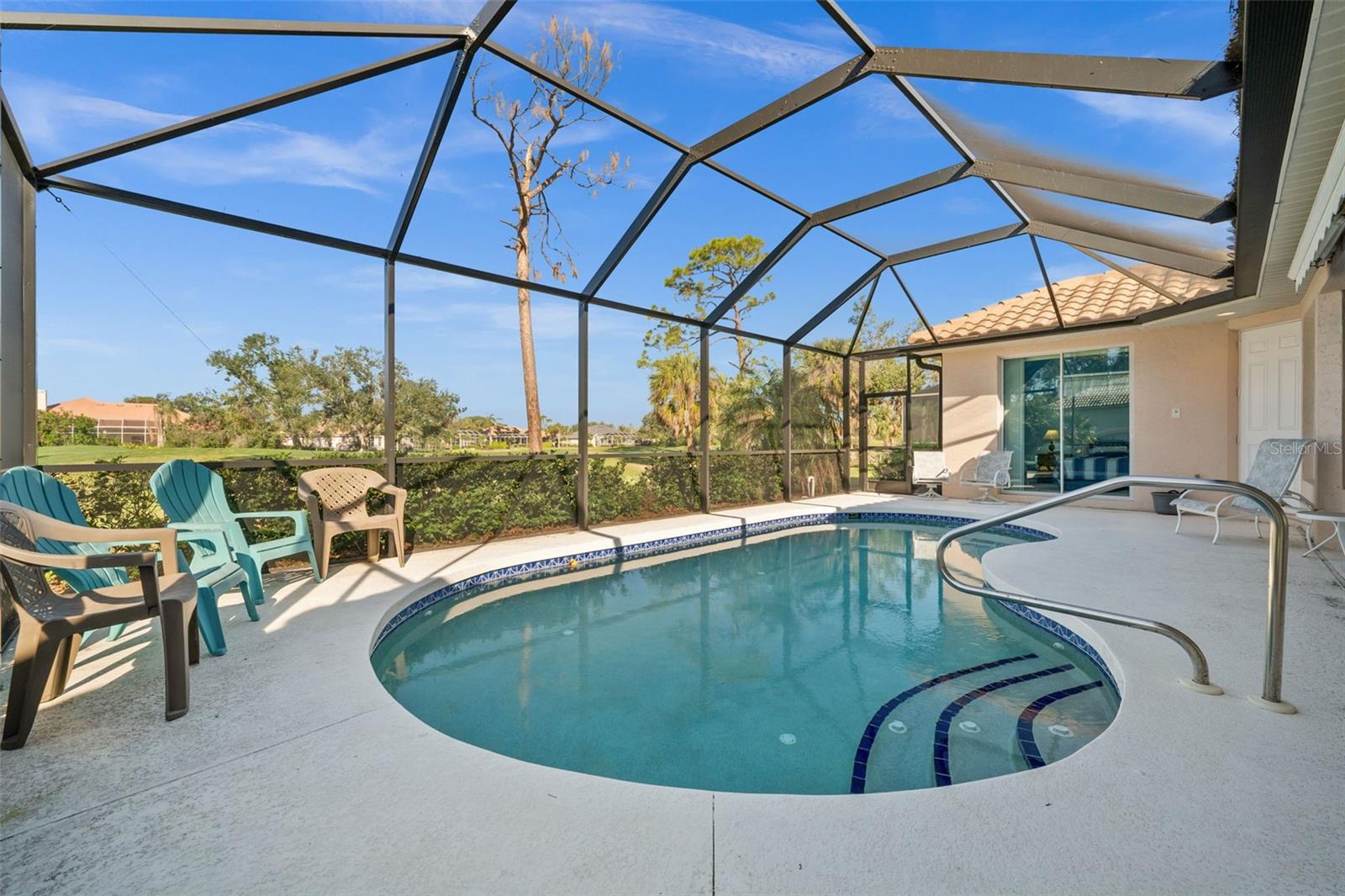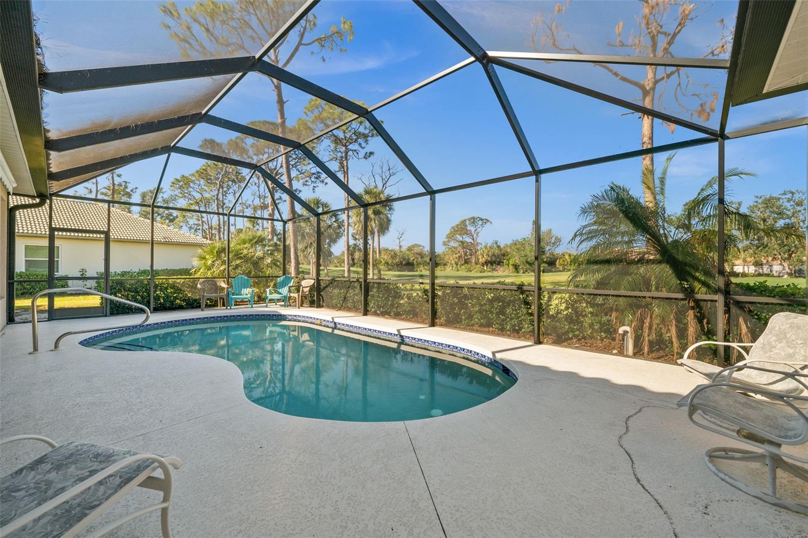Welcome to this beautifully maintained 3-bedroom, 2-bath home in the highly desirable gated community of Calusa Lakes. Nestled among lush landscaping, this property offers breathtaking golf course views. A new roof was installed in December 2021, and the completely new lanai cage was added the same year. The private pool, equipped with a new heater in 2022, provides the perfect space for relaxation. Inside, the spacious owners' suite features two walk-in closets, direct access to the pool and an ensuite bath with a walk-in shower and soaking tub. The kitchen boasts granite countertops, stainless steel appliances from 2019, a pantry, and plenty of storage. A separate laundry room with a sink and additional cabinetry enhances convenience. The home’s design allows for seamless indoor-outdoor living with sliding glass doors opening to a covered and screened lanai. The double front doors create an elegant entrance, while the two-car garage provides ample space for parking and storage. Located on a semi-private golf course, residents can enjoy tennis, pickleball and an active lifestyle. With no CDD fees, low quarterly HOA fees and underground utilities, this community offers exceptional value. Just minutes from world-renowned beaches, top-rated restaurants, shopping, cultural activities and the new Sarasota Memorial Hospital, this home is in a prime location. Schedule your showing today!