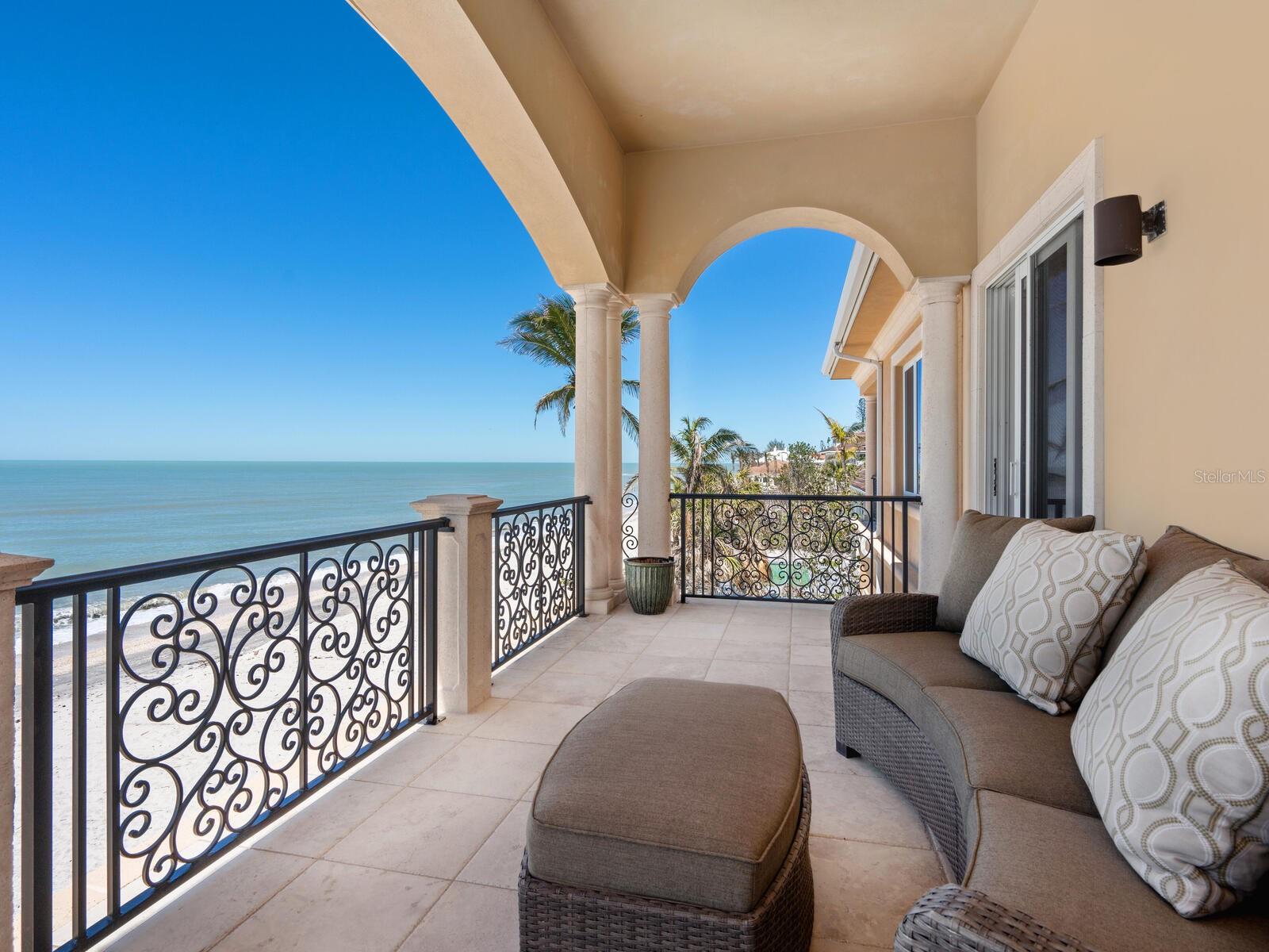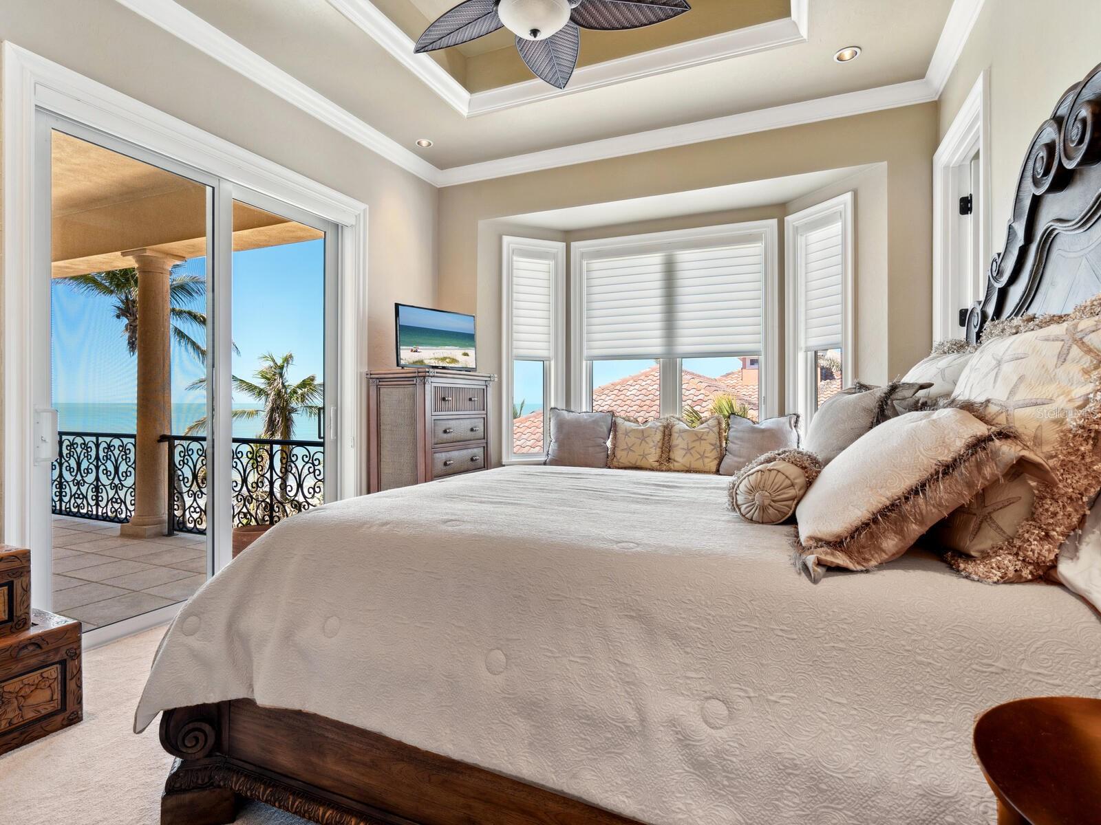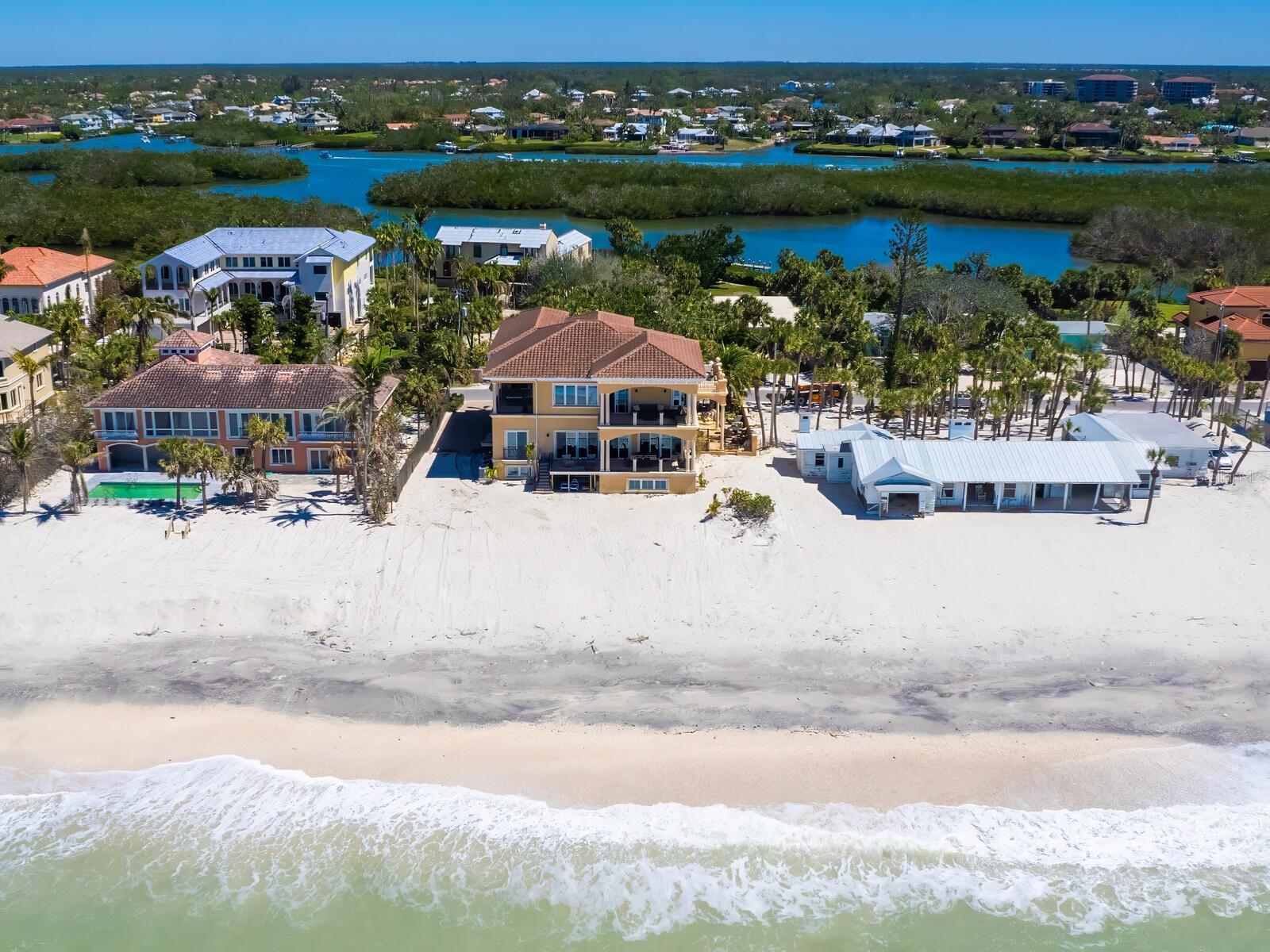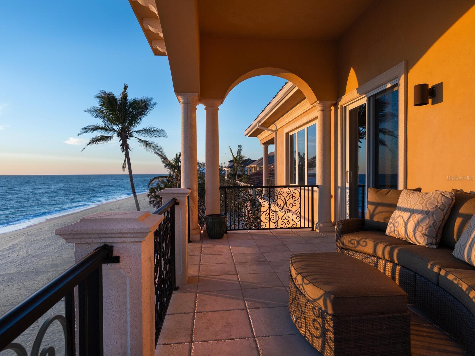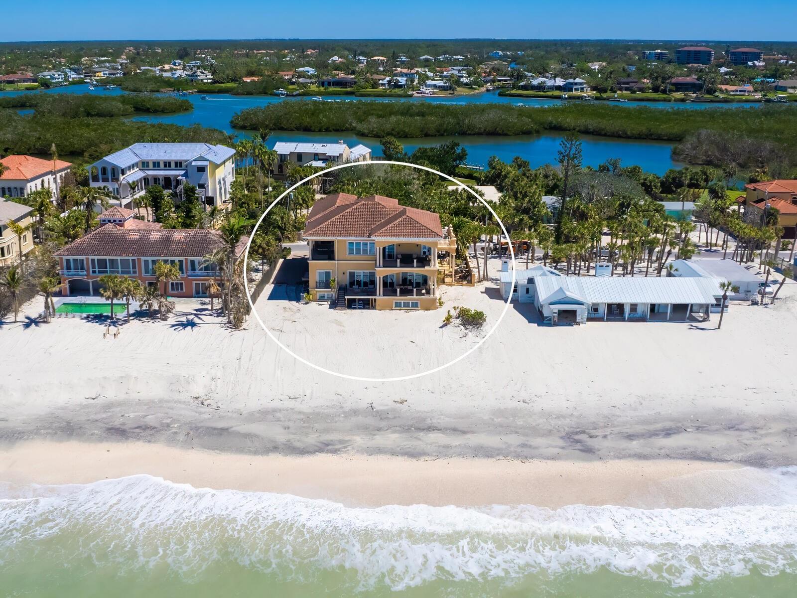 Magical sunsets illuminate the sky at this unparalleled custom-built estate on the exclusive barrier island of Casey Key, where luxury, elegance, and breathtaking Gulf views come together in harmony. This exquisite Gulf-front residence, featuring 100 feet of pristine natural sand beach, offers the epitome of coastal living. From the moment you pass through the courtyard gates, you're greeted by the tranquil sounds of the Gulf, with immediate access to serene beach views. As you enter the home, custom wood and glass hurricane entry doors lead you into the grand great room, framed by a wall of glass that showcases expansive views of the Gulf. The open-concept floor plan seamlessly connects the living areas to the chef-inspired kitchen, creating the ideal space for both intimate family gatherings and large-scale entertaining. The gourmet kitchen is a culinary masterpiece, featuring top-of-the-line Sub-Zero appliances, a Wolf cooktop with a custom copper hood, and a copper farmhouse sink, beautifully coordinated with other copper accents throughout the space. Premium appliances include a Wolf convection oven, Miele dishwasher, Fisher & Paykel dishwasher drawers, and a large walk-in pantry. Double islands in Palamino-patterned granite provide ample space for meal prep, while the wraparound bar with a vegetable sink enhances functionality and elegance. From the kitchen, dining area and great room, you can enjoy spectacular Gulf views that seamlessly flow onto a covered and open balcony porch, spanning the length of the home. The main level also features a beautifully appointed office/library and a full bath for added convenience. Upstairs, the primary suite serves as a Gulf-front sanctuary, offering sweeping views of the beach. The luxurious ensuite bath is a spa experience, complete with a whirlpool tub, multi-head shower, bidet and makeup vanity. The spacious primary closet is designed with built-ins, an island and a rotating closet carousel, offering the utmost in organization and luxury. In addition to the primary suite, the home includes three ensuite bedrooms, as well as a separate guest suite, providing private living space. Expansive balconies throughout the home provide privacy and style. The south-facing open balcony deck invites you to soak in the sun, while the north-facing covered balcony offers a serene retreat to relax with the soothing sound of the surf. Designed by the acclaimed Sarasota architect George Merlin, this home includes a five-stage wheelchair-accessible elevator, ensuring effortless access to all levels. The property also features an oversized three-car garage with ample space for a golf cart, a work area with a sink, and plenty of additional storage. Casey Key is just minutes from a variety of upscale shopping, fine dining and vibrant cultural attractions, offering a balance of privacy and convenience. With easy access to the charming downtown Venice, known for its quaint boutiques, cafes and art galleries, as well as the cultural heart of Sarasota, renowned for its theaters, museums and world-class dining, you’ll never be far from everything you need. Additionally, with nearby airports, including Sarasota-Bradenton International and private jet service at Venice Municipal Airport, travel is effortless.
