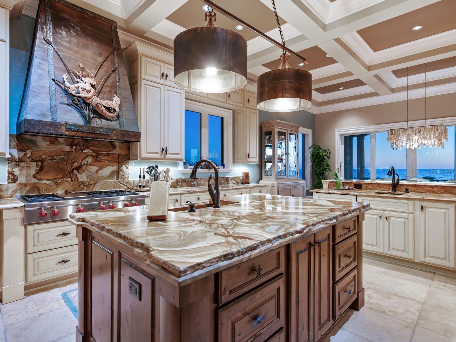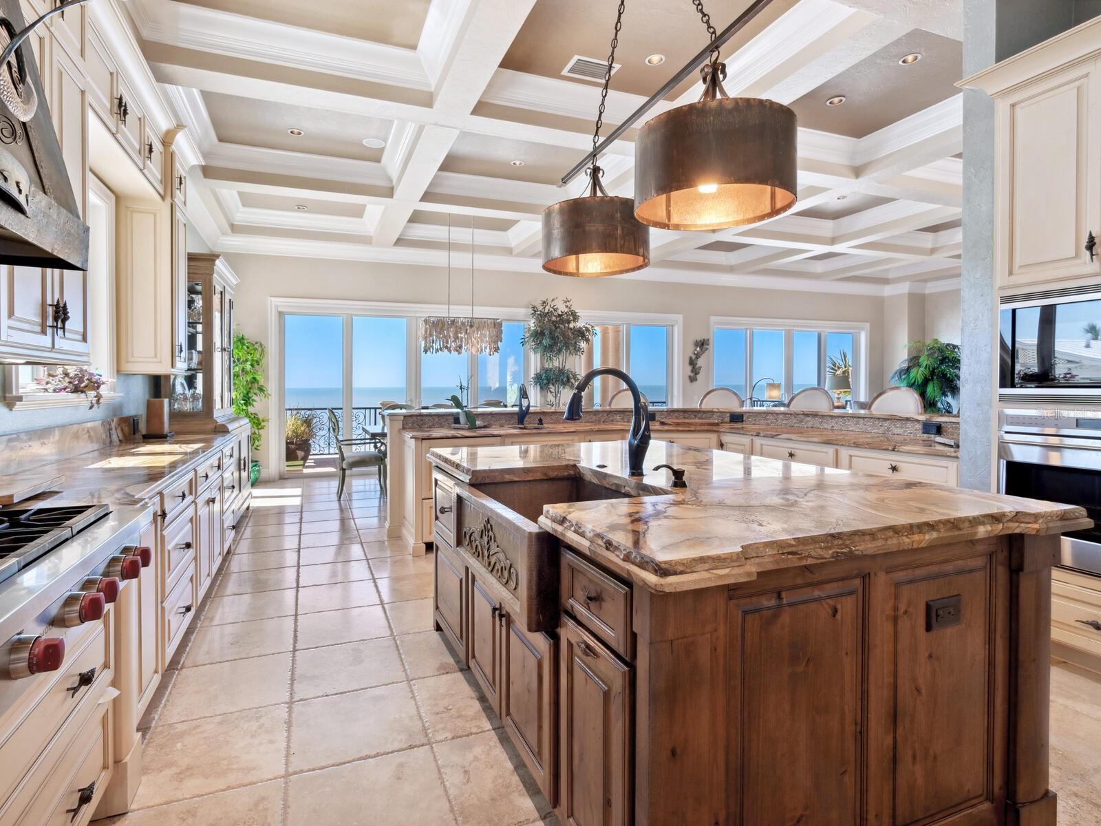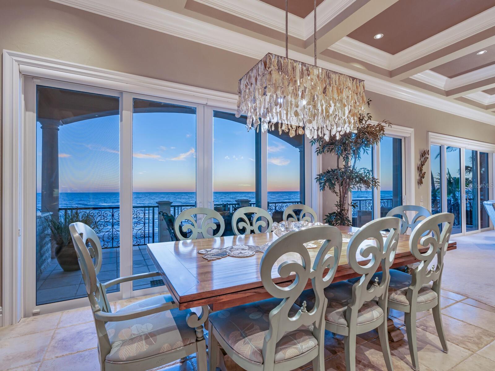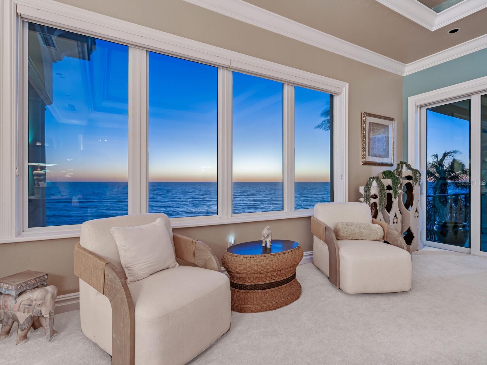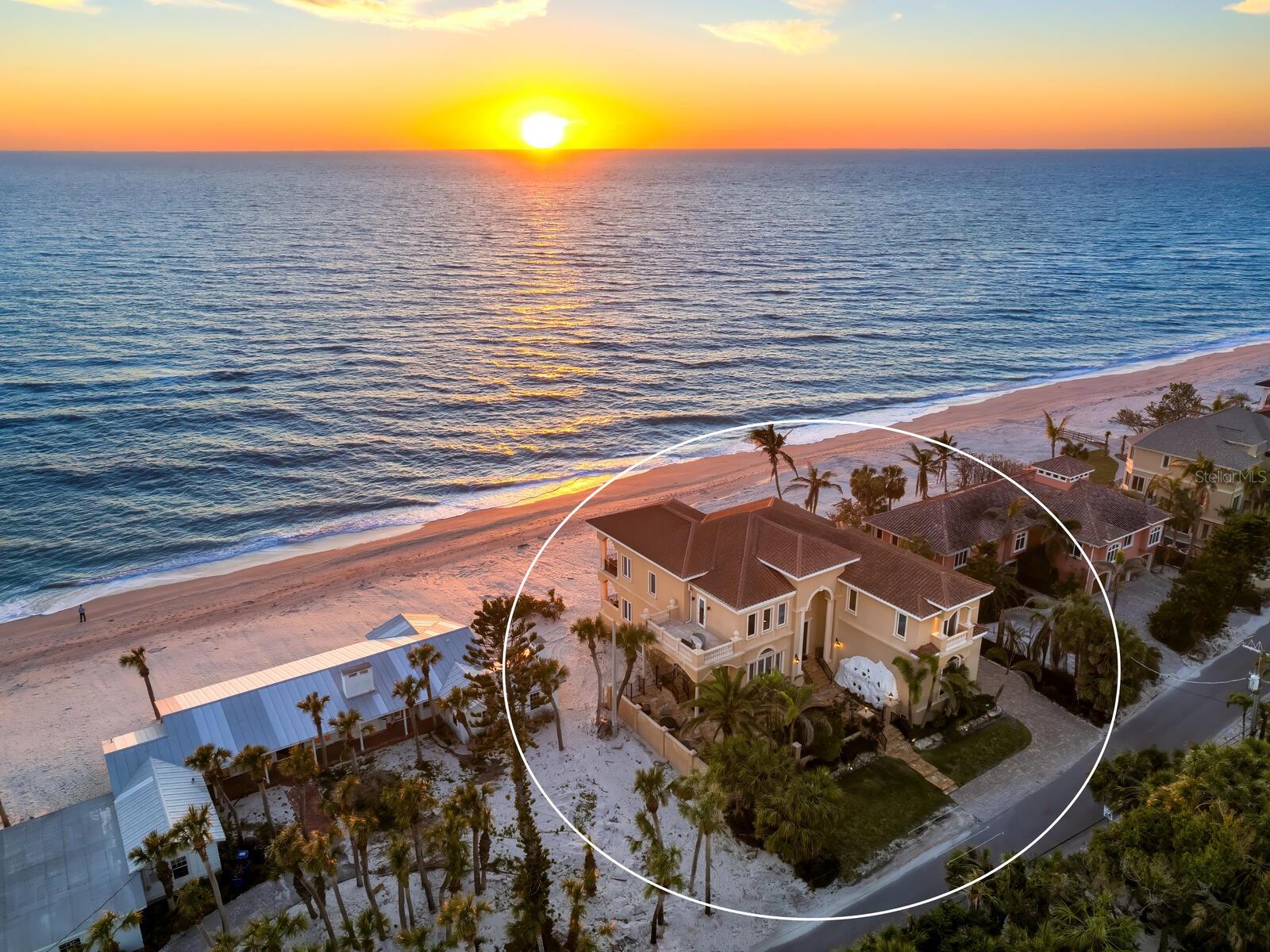 Magical sunsets illuminate the sky at this unparalleled custom-built estate on the exclusive barrier island of Casey Key, where luxury, elegance, and breathtaking Gulf views come together in harmony. This exquisite Gulf-front residence, featuring 100 feet of pristine natural sand beach, offers the epitome of coastal living. From the moment you pass through the courtyard gates, you're greeted by the tranquil sounds of the Gulf, with immediate access to serene beach views. As you enter the home, custom wood and glass hurricane entry doors lead you into the grand great room, framed by a wall of glass that showcases expansive views of the Gulf. The open-concept floor plan seamlessly connects the living areas to the chef-inspired kitchen, creating the ideal space for both intimate family gatherings and large-scale entertaining. The gourmet kitchen is a culinary masterpiece, featuring top-of-the-line Sub-Zero appliances, a Wolf cooktop with a custom copper hood, and a copper farmhouse sink, beautifully coordinated with other copper accents throughout the space. Premium appliances include a Wolf convection oven, Miele dishwasher, Fisher & Paykel dishwasher drawers, and a large walk-in pantry. Double islands in Palamino-patterned granite provide ample space for meal prep, while the wraparound bar with a vegetable sink enhances functionality and elegance. From the kitchen, dining area and great room, you can enjoy spectacular Gulf views that seamlessly flow onto a covered and open balcony porch, spanning the length of the home. The main level also features a beautifully appointed office/library and a full bath for added convenience. Upstairs, the primary suite serves as a Gulf-front sanctuary, offering sweeping views of the beach. The luxurious ensuite bath is a spa experience, complete with a whirlpool tub, multi-head shower, bidet and makeup vanity. The spacious primary closet is designed with built-ins, an island and a rotating closet carousel, offering the utmost in organization and luxury. In addition to the primary suite, the home includes three ensuite bedrooms, as well as a separate guest suite, providing private living space. Expansive balconies throughout the home provide privacy and style. The south-facing open balcony deck invites you to soak in the sun, while the north-facing covered balcony offers a serene retreat to relax with the soothing sound of the surf. Designed by the acclaimed Sarasota architect George Merlin, this home includes a five-stage wheelchair-accessible elevator, ensuring effortless access to all levels. The property also features an oversized three-car garage with ample space for a golf cart, a work area with a sink, and plenty of additional storage. Casey Key is just minutes from a variety of upscale shopping, fine dining and vibrant cultural attractions, offering a balance of privacy and convenience. With easy access to the charming downtown Venice, known for its quaint boutiques, cafes and art galleries, as well as the cultural heart of Sarasota, renowned for its theaters, museums and world-class dining, you’ll never be far from everything you need. Additionally, with nearby airports, including Sarasota-Bradenton International and private jet service at Venice Municipal Airport, travel is effortless.