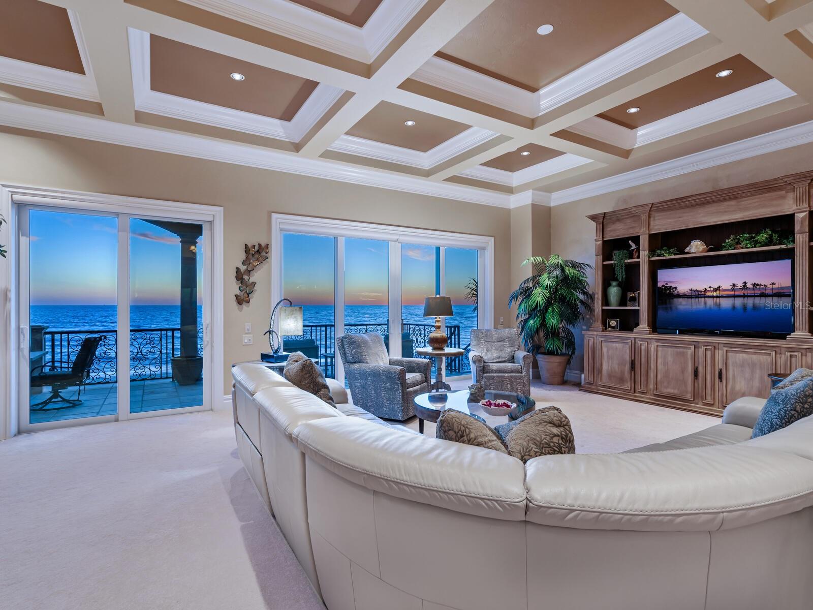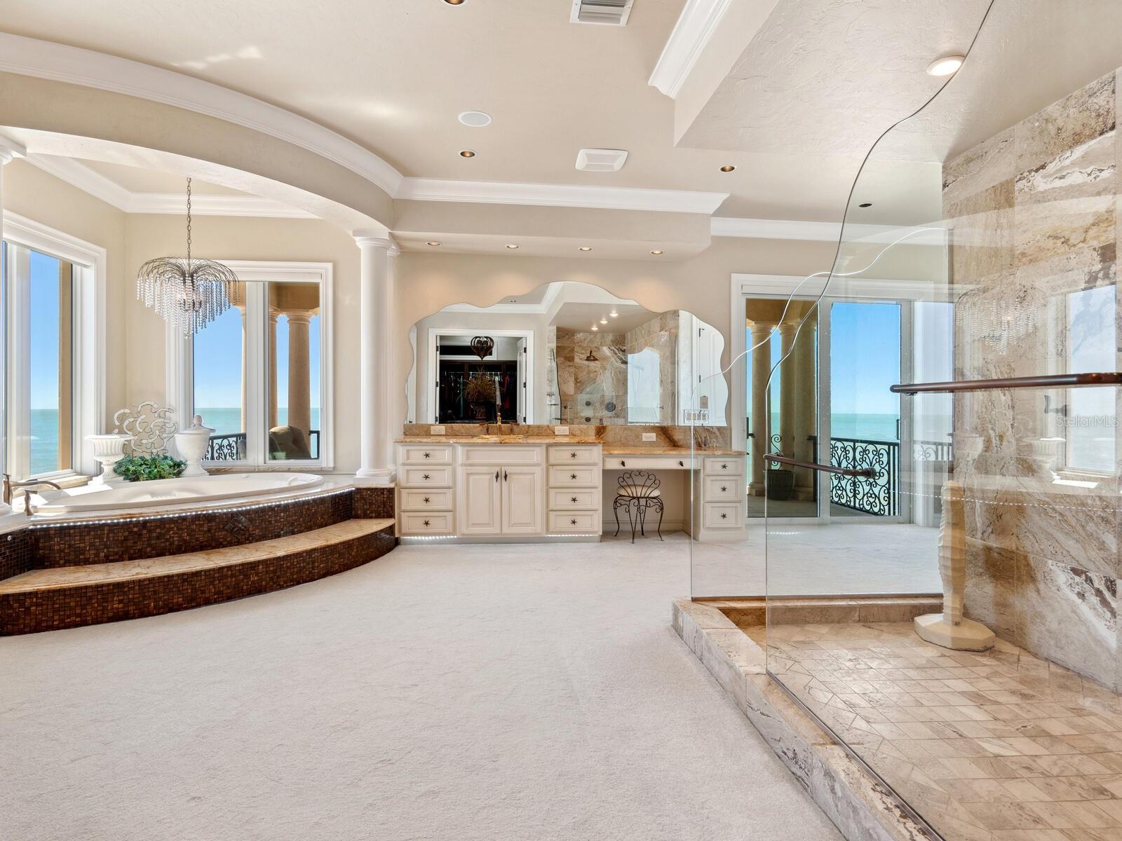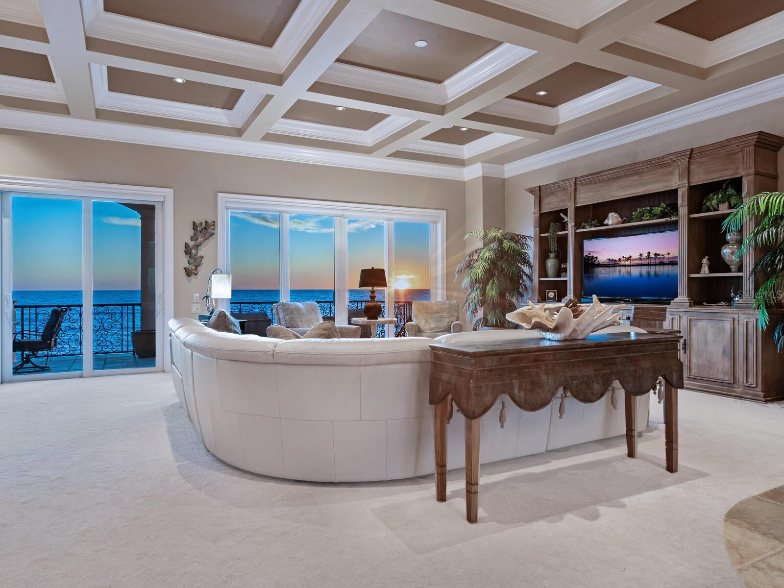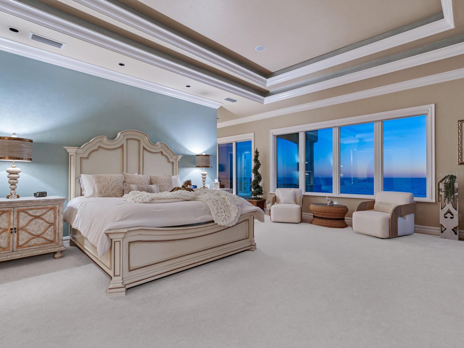 Magical sunsets illuminate the sky at this unparalleled custom-built estate on the exclusive barrier island of Casey Key, where luxury, elegance, and breathtaking Gulf views come together in harmony. This exquisite Gulf-front residence, featuring 100 feet of pristine natural sand beach, offers the epitome of coastal living. From the moment you pass through the courtyard gates, you're greeted by the tranquil sounds of the Gulf, with immediate access to serene beach views. As you enter the home, custom wood and glass hurricane entry doors lead you into the grand great room, framed by a wall of glass that showcases expansive views of the Gulf. The open-concept floor plan seamlessly connects the living areas to the chef-inspired kitchen, creating the ideal space for both intimate family gatherings and large-scale entertaining. The gourmet kitchen is a culinary masterpiece, featuring top-of-the-line Sub-Zero appliances, a Wolf cooktop with a custom copper hood, and a copper farmhouse sink, beautifully coordinated with other copper accents throughout the space. Premium appliances include a Wolf convection oven, Miele dishwasher, Fisher & Paykel dishwasher drawers, and a large walk-in pantry. Double islands in Palamino-patterned granite provide ample space for meal prep, while the wraparound bar with a vegetable sink enhances functionality and elegance. From the kitchen, dining area and great room, you can enjoy spectacular Gulf views that seamlessly flow onto a covered and open balcony porch, spanning the length of the home. The main level also features a beautifully appointed office/library and a full bath for added convenience. Upstairs, the primary suite serves as a Gulf-front sanctuary, offering sweeping views of the beach. The luxurious ensuite bath is a spa experience, complete with a whirlpool tub, multi-head shower, bidet and makeup vanity. The spacious primary closet is designed with built-ins, an island and a rotating closet carousel, offering the utmost in organization and luxury. In addition to the primary suite, the home includes three ensuite bedrooms, as well as a separate guest suite, providing private living space. Expansive balconies throughout the home provide privacy and style. The south-facing open balcony deck invites you to soak in the sun, while the north-facing covered balcony offers a serene retreat to relax with the soothing sound of the surf. Designed by the acclaimed Sarasota architect George Merlin, this home includes a five-stage wheelchair-accessible elevator, ensuring effortless access to all levels. The property also features an oversized three-car garage with ample space for a golf cart, a work area with a sink, and plenty of additional storage. Casey Key is just minutes from a variety of upscale shopping, fine dining and vibrant cultural attractions, offering a balance of privacy and convenience. With easy access to the charming downtown Venice, known for its quaint boutiques, cafes and art galleries, as well as the cultural heart of Sarasota, renowned for its theaters, museums and world-class dining, you’ll never be far from everything you need. Additionally, with nearby airports, including Sarasota-Bradenton International and private jet service at Venice Municipal Airport, travel is effortless.