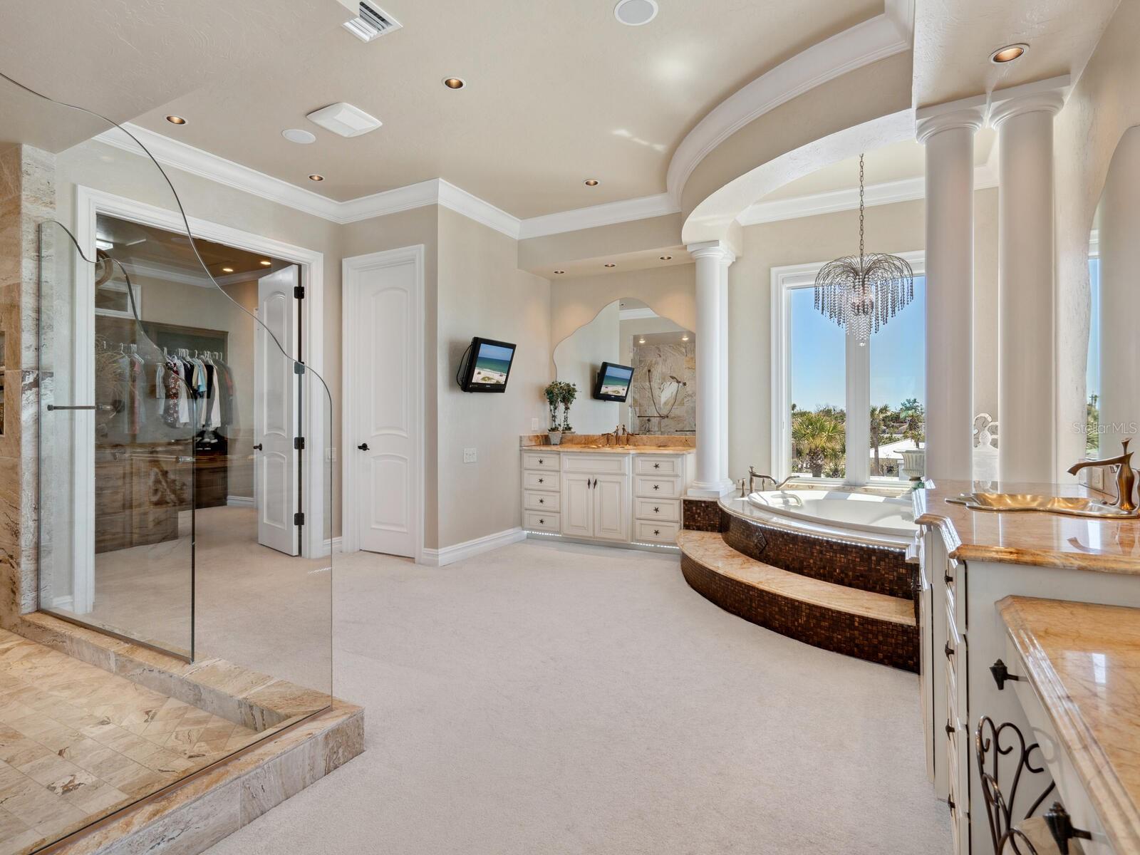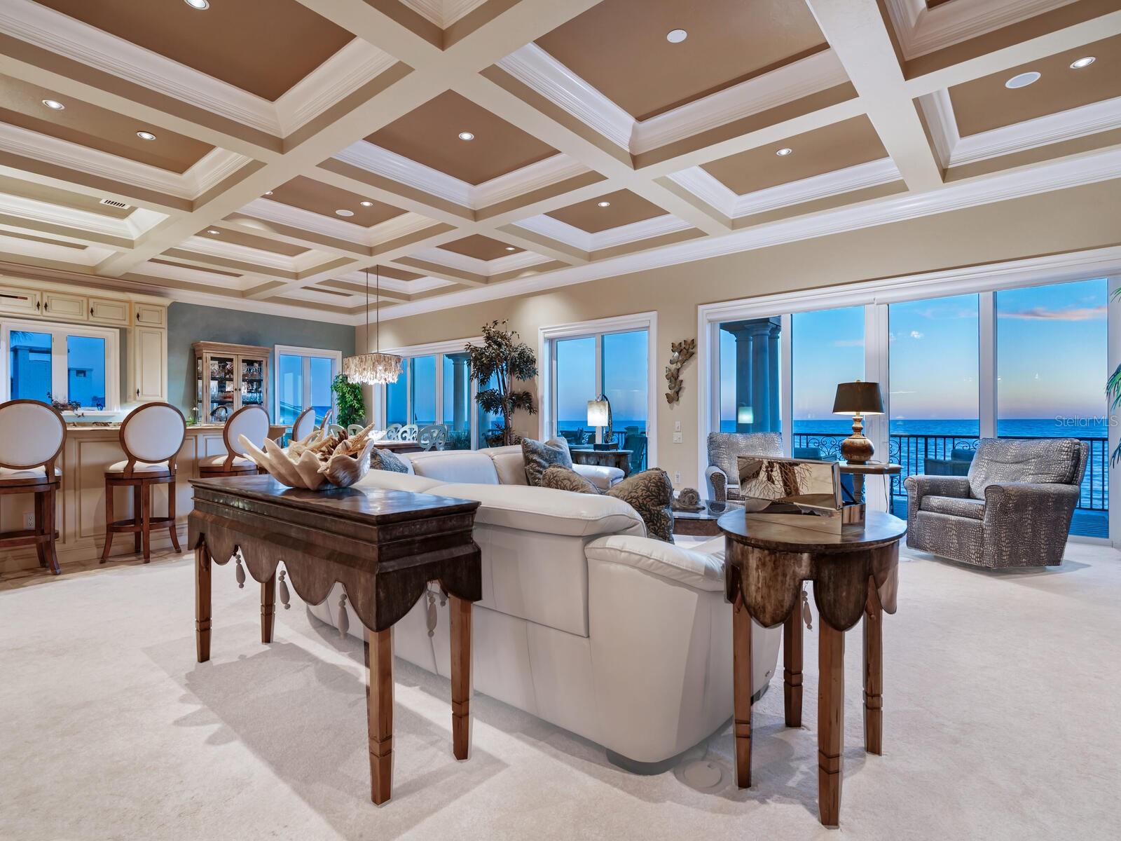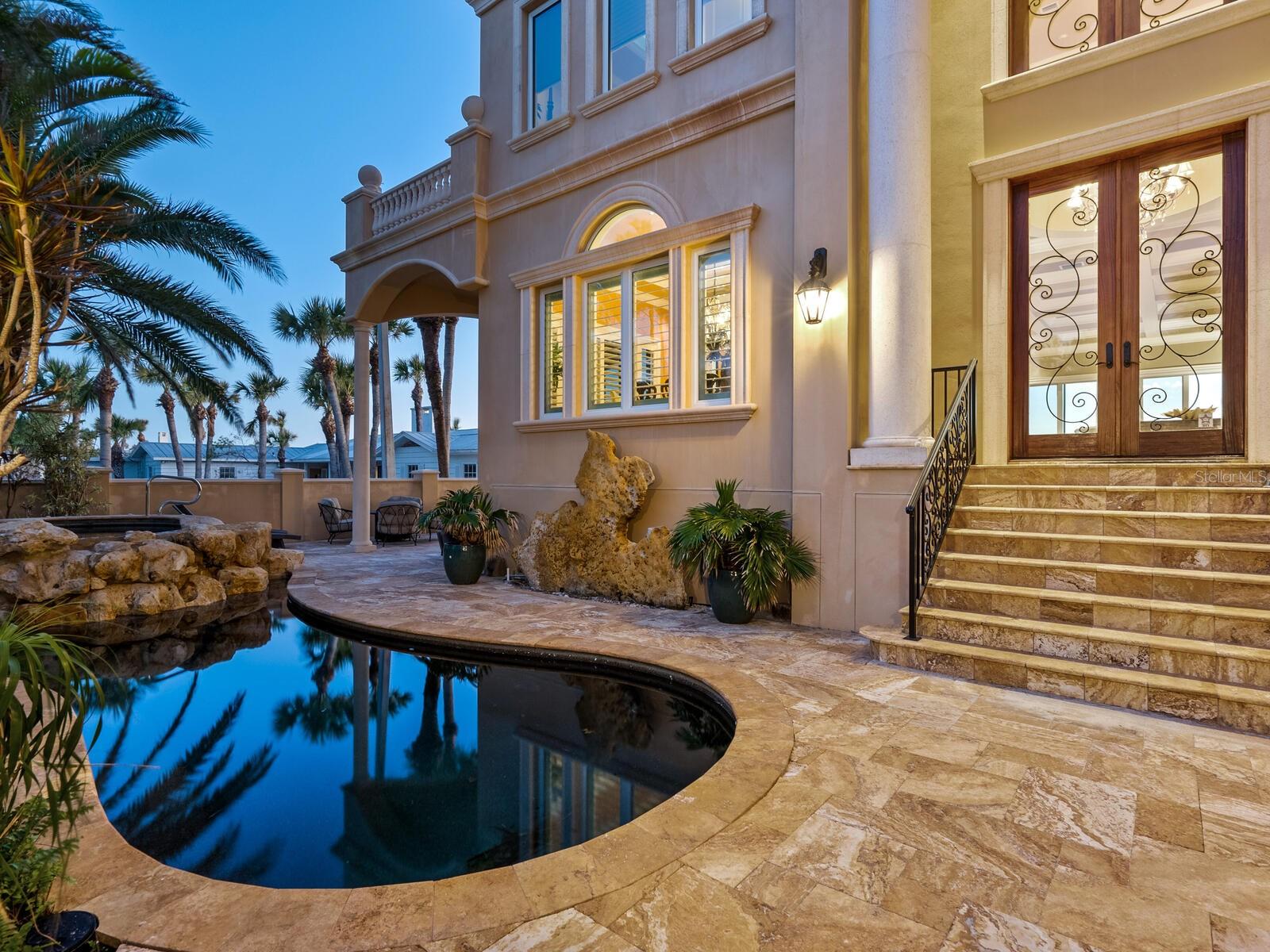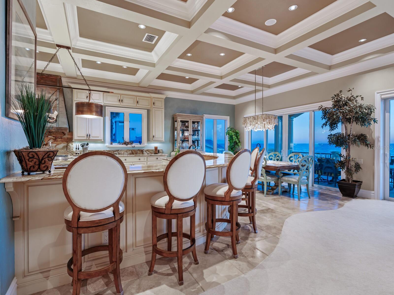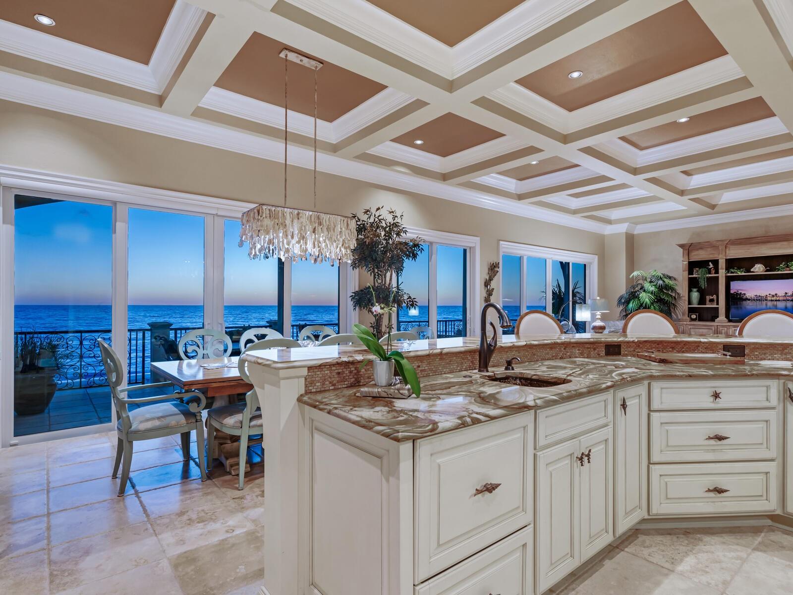 Magical sunsets illuminate the sky at this unparalleled custom-built estate on the exclusive barrier island of Casey Key, where luxury, elegance, and breathtaking Gulf views come together in harmony. This exquisite Gulf-front residence, featuring 100 feet of pristine natural sand beach, offers the epitome of coastal living. From the moment you pass through the courtyard gates, you're greeted by the tranquil sounds of the Gulf, with immediate access to serene beach views. As you enter the home, custom wood and glass hurricane entry doors lead you into the grand great room, framed by a wall of glass that showcases expansive views of the Gulf. The open-concept floor plan seamlessly connects the living areas to the chef-inspired kitchen, creating the ideal space for both intimate family gatherings and large-scale entertaining. The gourmet kitchen is a culinary masterpiece, featuring top-of-the-line Sub-Zero appliances, a Wolf cooktop with a custom copper hood, and a copper farmhouse sink, beautifully coordinated with other copper accents throughout the space. Premium appliances include a Wolf convection oven, Miele dishwasher, Fisher & Paykel dishwasher drawers, and a large walk-in pantry. Double islands in Palamino-patterned granite provide ample space for meal prep, while the wraparound bar with a vegetable sink enhances functionality and elegance. From the kitchen, dining area and great room, you can enjoy spectacular Gulf views that seamlessly flow onto a covered and open balcony porch, spanning the length of the home. The main level also features a beautifully appointed office/library and a full bath for added convenience. Upstairs, the primary suite serves as a Gulf-front sanctuary, offering sweeping views of the beach. The luxurious ensuite bath is a spa experience, complete with a whirlpool tub, multi-head shower, bidet and makeup vanity. The spacious primary closet is designed with built-ins, an island and a rotating closet carousel, offering the utmost in organization and luxury. In addition to the primary suite, the home includes three ensuite bedrooms, as well as a separate guest suite, providing private living space. Expansive balconies throughout the home provide privacy and style. The south-facing open balcony deck invites you to soak in the sun, while the north-facing covered balcony offers a serene retreat to relax with the soothing sound of the surf. Designed by the acclaimed Sarasota architect George Merlin, this home includes a five-stage wheelchair-accessible elevator, ensuring effortless access to all levels. The property also features an oversized three-car garage with ample space for a golf cart, a work area with a sink, and plenty of additional storage. Casey Key is just minutes from a variety of upscale shopping, fine dining and vibrant cultural attractions, offering a balance of privacy and convenience. With easy access to the charming downtown Venice, known for its quaint boutiques, cafes and art galleries, as well as the cultural heart of Sarasota, renowned for its theaters, museums and world-class dining, you’ll never be far from everything you need. Additionally, with nearby airports, including Sarasota-Bradenton International and private jet service at Venice Municipal Airport, travel is effortless.