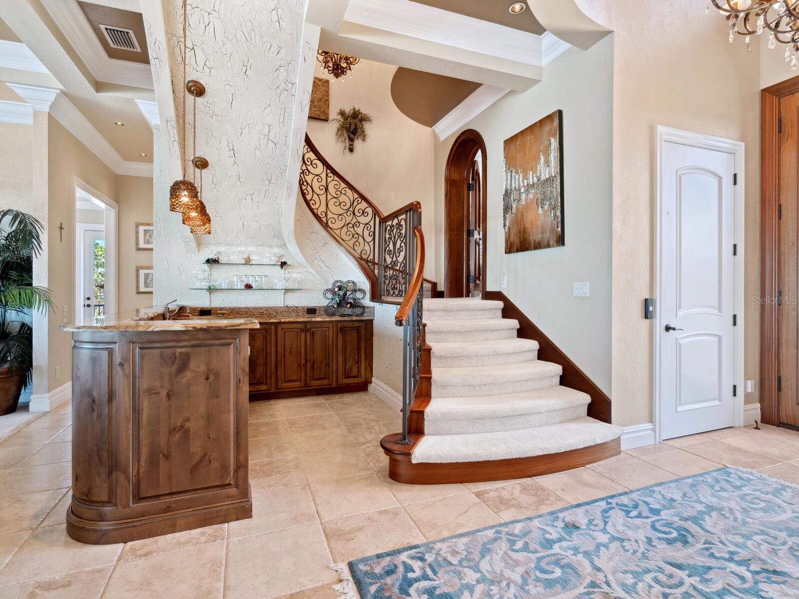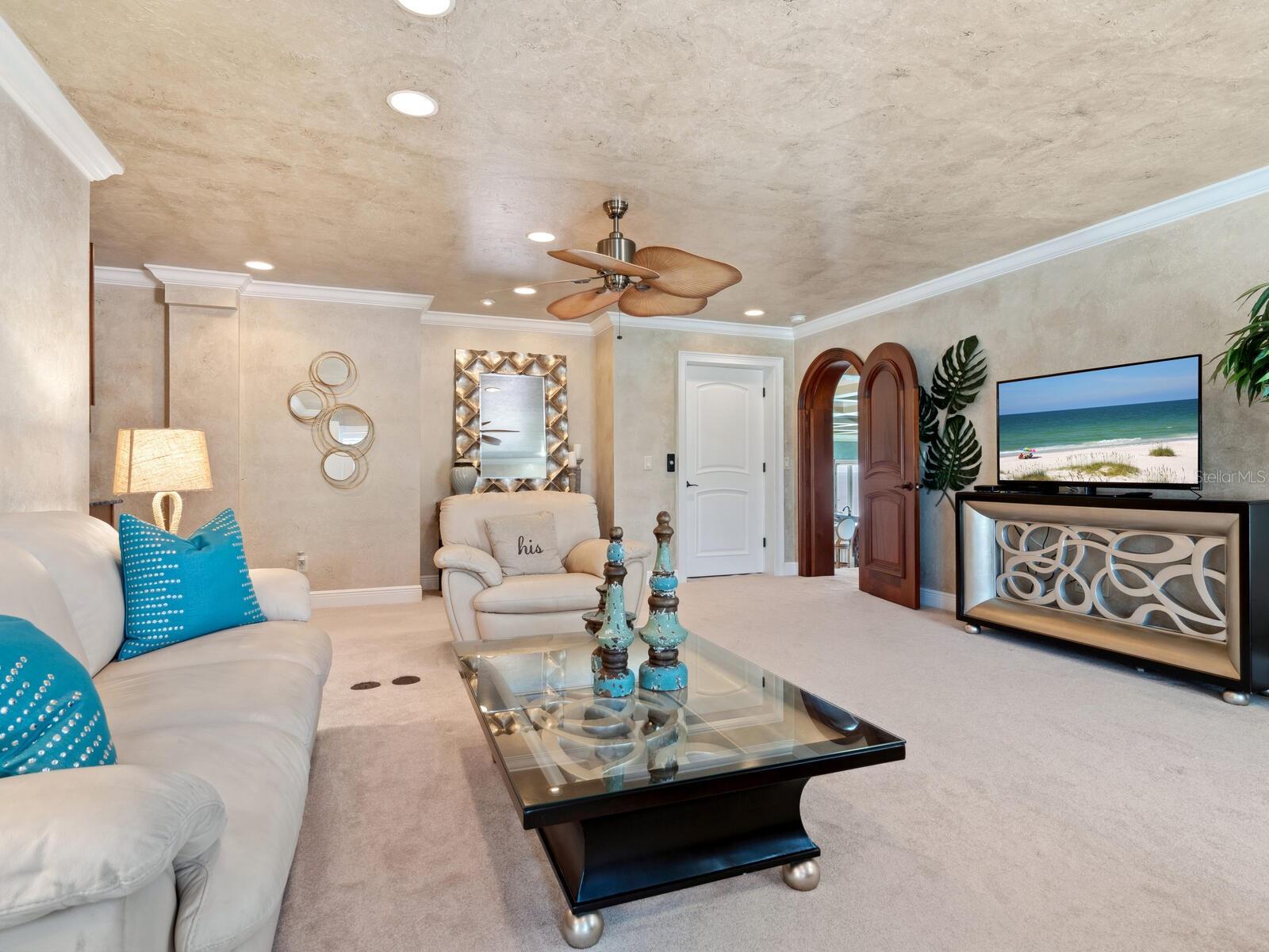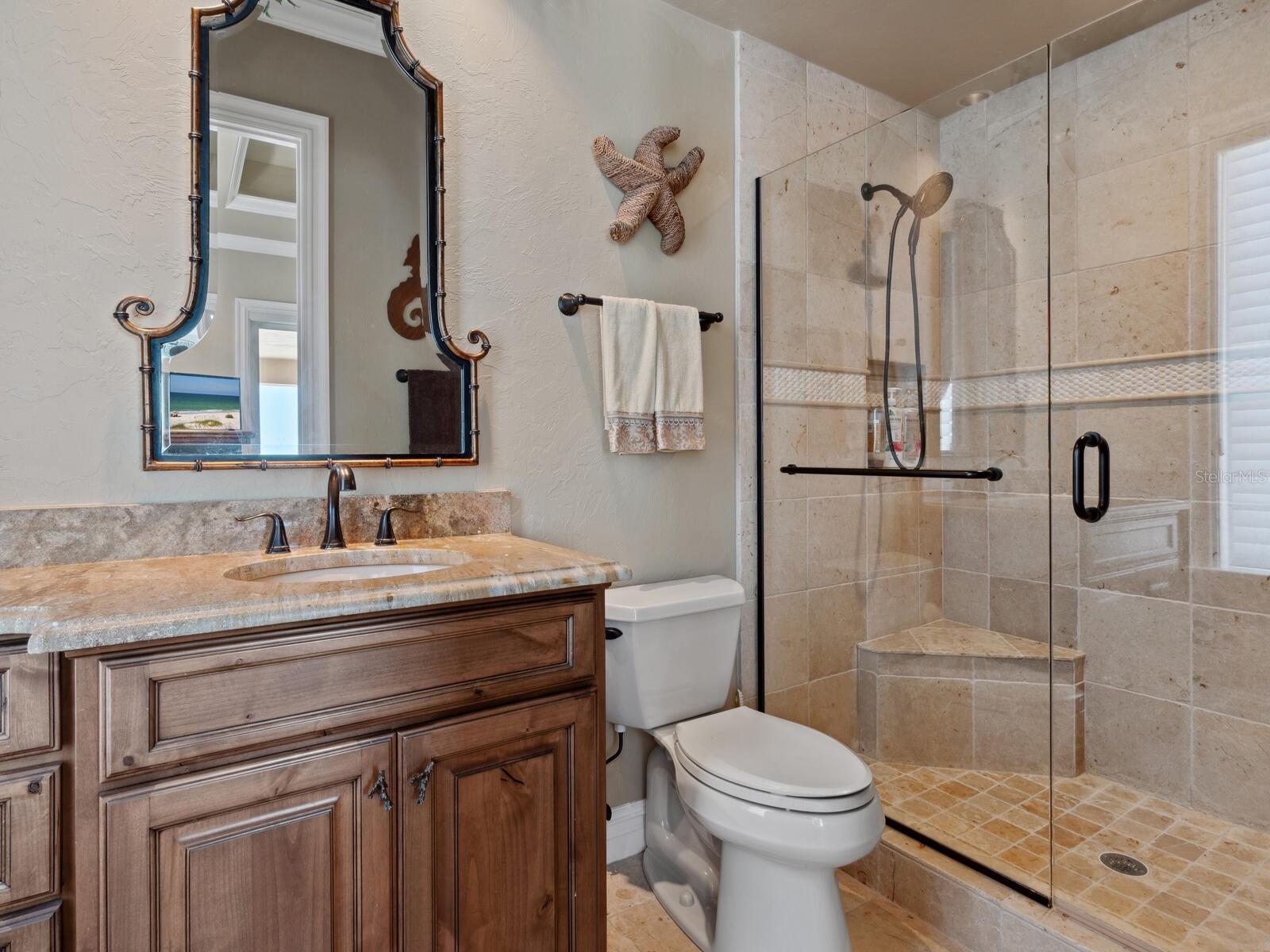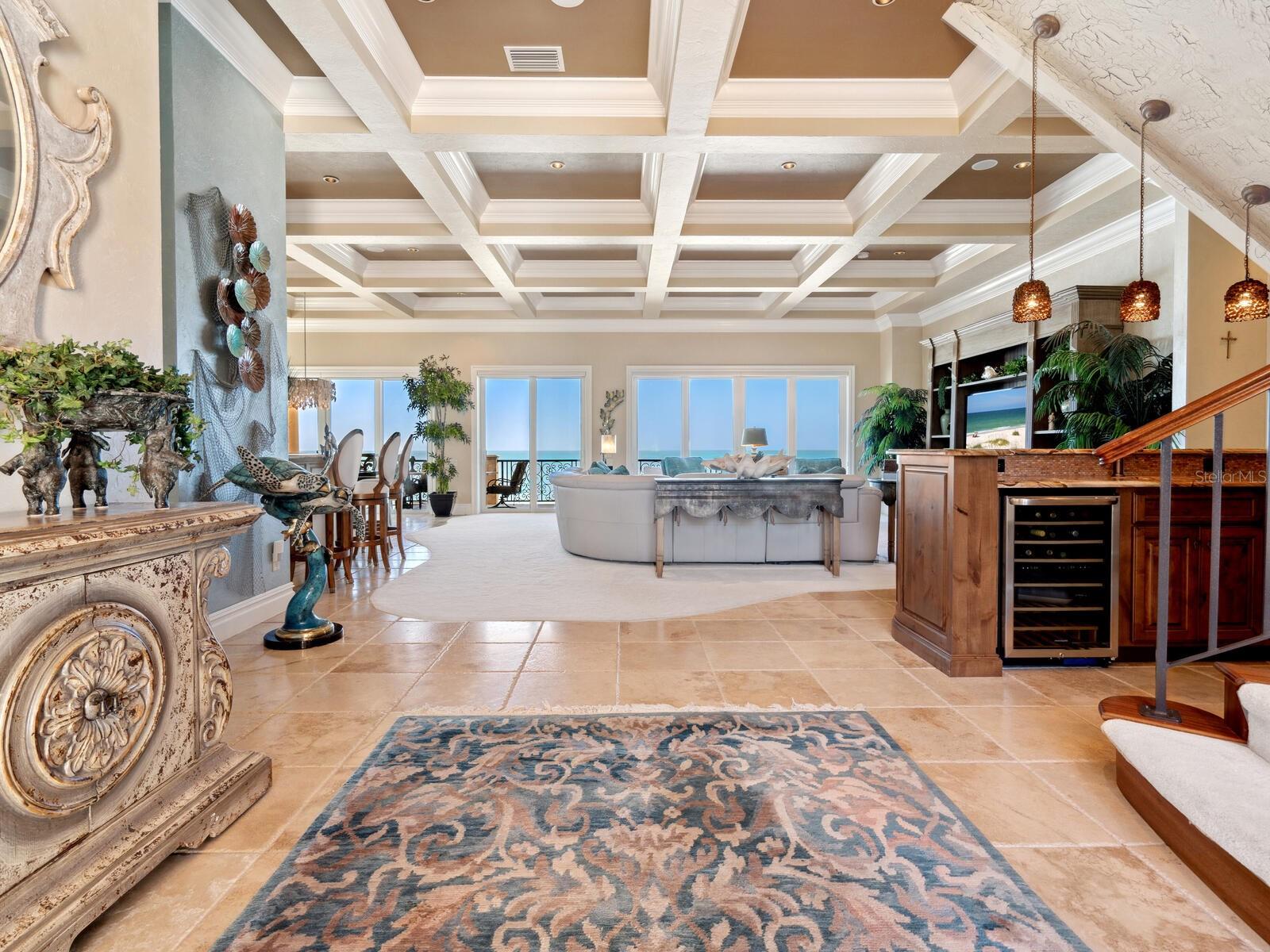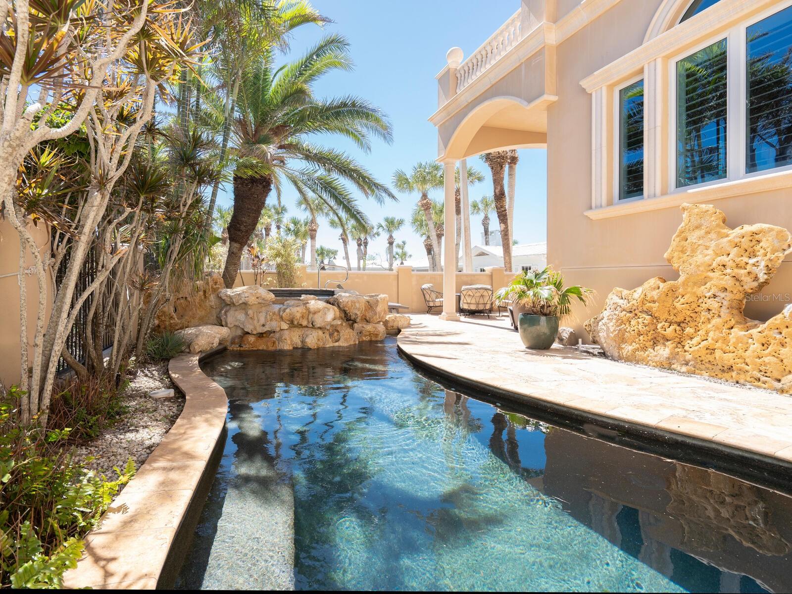 Magical sunsets illuminate the sky at this unparalleled custom-built estate on the exclusive barrier island of Casey Key, where luxury, elegance, and breathtaking Gulf views come together in harmony. This exquisite Gulf-front residence, featuring 100 feet of pristine natural sand beach, offers the epitome of coastal living. From the moment you pass through the courtyard gates, you're greeted by the tranquil sounds of the Gulf, with immediate access to serene beach views. As you enter the home, custom wood and glass hurricane entry doors lead you into the grand great room, framed by a wall of glass that showcases expansive views of the Gulf. The open-concept floor plan seamlessly connects the living areas to the chef-inspired kitchen, creating the ideal space for both intimate family gatherings and large-scale entertaining. The gourmet kitchen is a culinary masterpiece, featuring top-of-the-line Sub-Zero appliances, a Wolf cooktop with a custom copper hood, and a copper farmhouse sink, beautifully coordinated with other copper accents throughout the space. Premium appliances include a Wolf convection oven, Miele dishwasher, Fisher & Paykel dishwasher drawers, and a large walk-in pantry. Double islands in Palamino-patterned granite provide ample space for meal prep, while the wraparound bar with a vegetable sink enhances functionality and elegance. From the kitchen, dining area and great room, you can enjoy spectacular Gulf views that seamlessly flow onto a covered and open balcony porch, spanning the length of the home. The main level also features a beautifully appointed office/library and a full bath for added convenience. Upstairs, the primary suite serves as a Gulf-front sanctuary, offering sweeping views of the beach. The luxurious ensuite bath is a spa experience, complete with a whirlpool tub, multi-head shower, bidet and makeup vanity. The spacious primary closet is designed with built-ins, an island and a rotating closet carousel, offering the utmost in organization and luxury. In addition to the primary suite, the home includes three ensuite bedrooms, as well as a separate guest suite, providing private living space. Expansive balconies throughout the home provide privacy and style. The south-facing open balcony deck invites you to soak in the sun, while the north-facing covered balcony offers a serene retreat to relax with the soothing sound of the surf. Designed by the acclaimed Sarasota architect George Merlin, this home includes a five-stage wheelchair-accessible elevator, ensuring effortless access to all levels. The property also features an oversized three-car garage with ample space for a golf cart, a work area with a sink, and plenty of additional storage. Casey Key is just minutes from a variety of upscale shopping, fine dining and vibrant cultural attractions, offering a balance of privacy and convenience. With easy access to the charming downtown Venice, known for its quaint boutiques, cafes and art galleries, as well as the cultural heart of Sarasota, renowned for its theaters, museums and world-class dining, you’ll never be far from everything you need. Additionally, with nearby airports, including Sarasota-Bradenton International and private jet service at Venice Municipal Airport, travel is effortless.