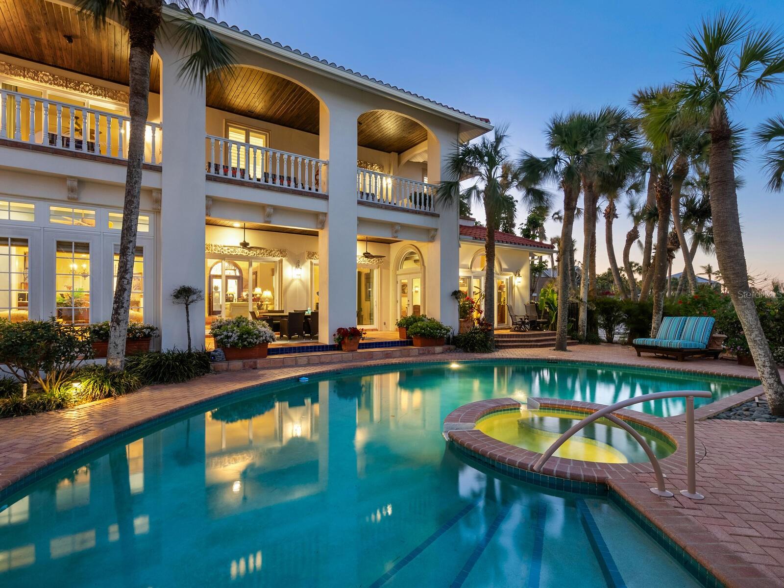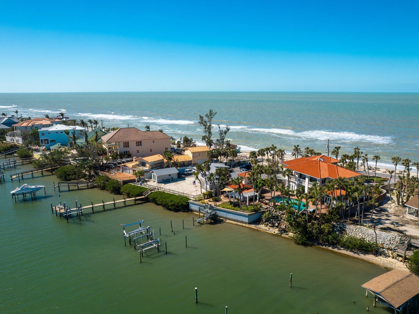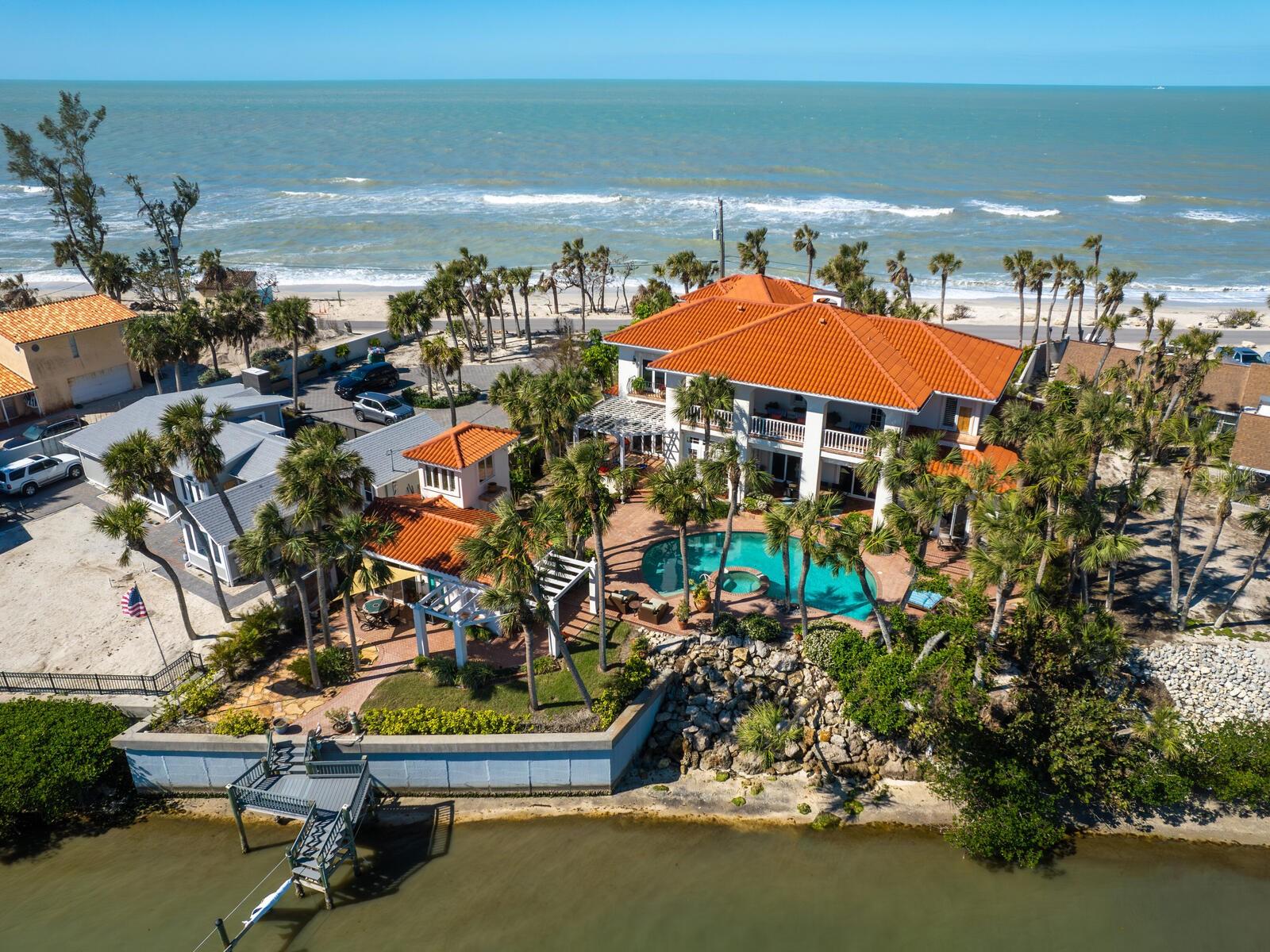 Embrace coastal elegance with the timeless charm of this Casey Key home. Along the pristine shores of Casey Key, this exceptional residence combines Mediterranean and Spanish Revival influences with modern luxury to provide a living experience like no other. Rarely available in one of Florida’s desirable and private locations, this property offers the finest in Gulf front living and deep water access for owners of large boats that require deeper channels to navigate safely. With direct access to the Gulf, the boating experience is unparalleled. This four-bedroom, 4.5-bath estate is designed for intimate gatherings and grand entertaining. Expansive living and dining areas are bathed in natural light, with every room offering panoramic views of the Gulf and Intracoastal Waterway. The gourmet kitchen, equipped with high-end appliances and sleek finishes, is ideal for culinary enthusiasts, while the spacious den, complete with a cozy fireplace, serves as an ideal retreat for work or relaxation. On the second floor, the ultimate family retreat awaits, featuring a spacious family room and a primary suite that boasts sweeping water views. The primary bedroom is an oasis of calm, designed for comfort and elegance, while the en-suite bath offers indulgent designer finishes. Two additional en-suite bedrooms provide guests with their private getaway. Exceptional outdoor living and private beach. Step outside to immerse yourself in the natural beauty of Casey Key. Expansive covered balconies extend the living space, offering stunning views of the Gulf and Intracoastal Waterway. Relax to the sounds of the Gulf or take a leisurely stroll along your private, walkable beach. The large pool and spa provide the ideal spot for relaxation, while two deep-water docks with lifts, 16,000 and 12,000 pounds, ensure effortless access to the Gulf for boating, fishing and water sports. Detached guest house/in-law suite. The detached guest house, complete with a fully equipped in-law suite, offers unparalleled privacy and comfort for guests or extended family. This retreat allows for a luxurious stay, while maintaining peace and serenity of the main residence. Private courtyards and serene escape. Behind wrought-iron gates and lush landscaping, the home offers intimate courtyards and serene outdoor spaces. Ideal for enjoying a morning coffee or hosting evening gatherings under the stars, these private oases provide a peaceful escape where relaxation and entertainment come together. An unmatched lifestyle on Casey Key. Casey Key is more than just an address, it’s a lifestyle. This exclusive 8-mile island offers a rare blend of natural beauty, tranquility and modern luxury. With pristine beaches, crystal-clear waters and endless opportunities for water sports, it’s a sanctuary for those seeking serenity and access to the vibrant culture of nearby Venice and downtown Sarasota.