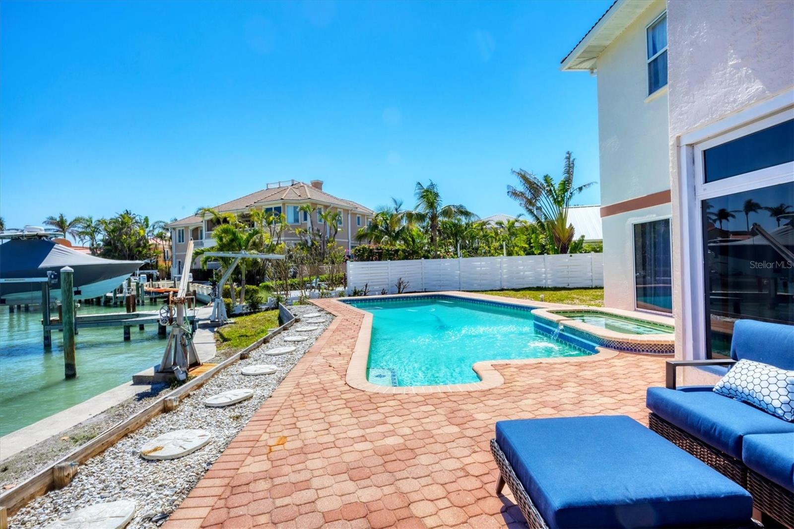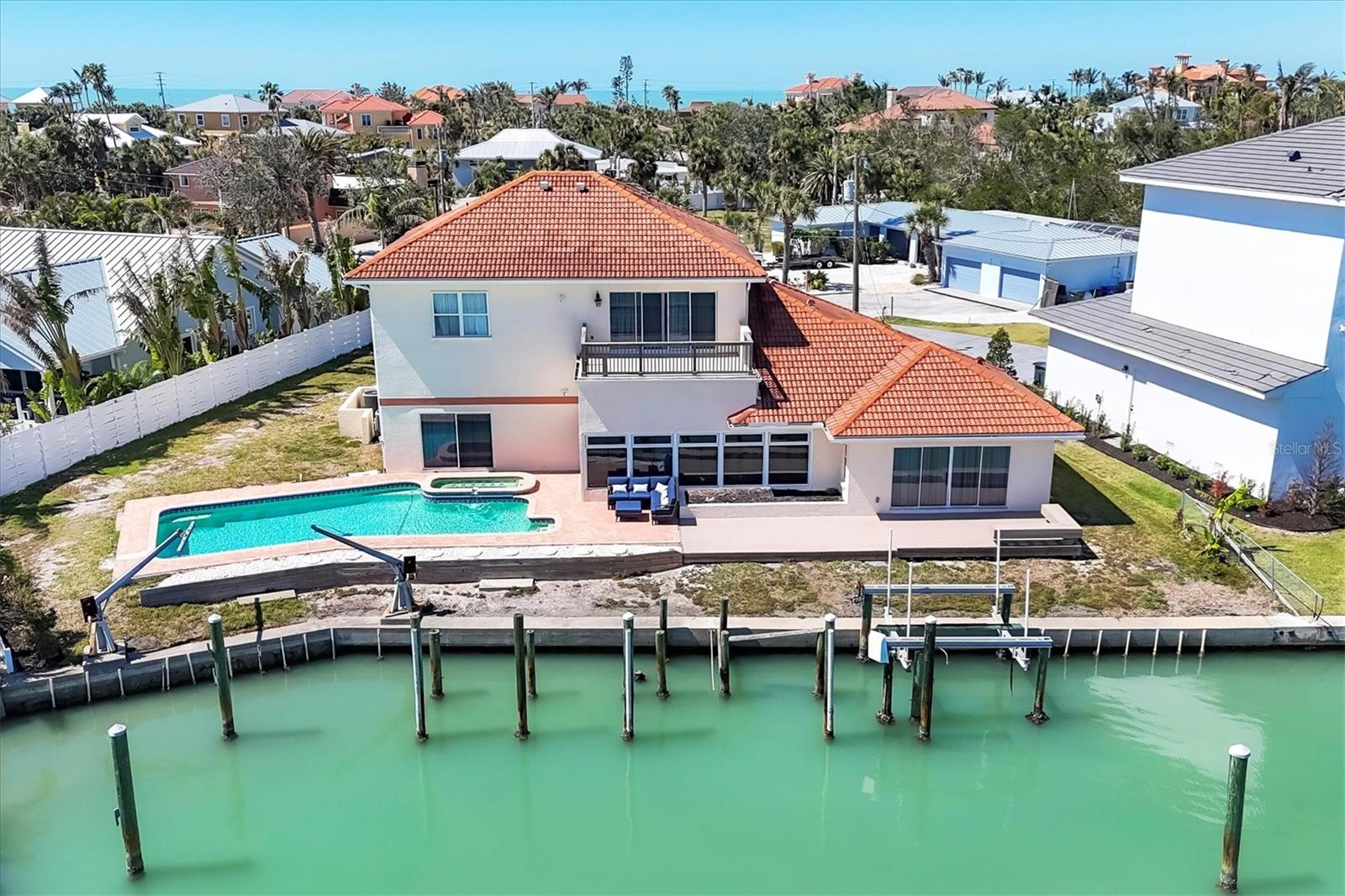 Tucked away at the end of a private cul-de-sac, this stunning 6-bedroom family home offers a tranquil retreat right on the scenic Intracoastal Waterway. Expansive windows throughout the residence showcase breathtaking water views, filling the space with natural light and a warm, inviting ambiance. Step onto the brand-new deck and take in the panoramic vistas of the Intracoastal, the perfect setting for peaceful mornings and awe-inspiring sunrises. The outdoor oasis continues with a built-in swimming pool and spa, and large open pool deck area is an idyllic spot for relaxation and entertaining. With plenty of space to customize, this property presents the perfect opportunity to build your dream dock, capable of accommodating multiple boats. Enjoy effortless access to the Gulf of America via the nearby Venice Jetty, with no fixed bridges standing in your way. Inside, the brand-new custom kitchen is a chef’s dream, featuring modern appliances designed to enhance every culinary experience. And for those who love the beach, this home offers something truly special—deeded private beach access just steps away, a privilege reserved for only a select few in the neighborhood. No need to drive—simply cross the street and sink your toes into the sand while enjoying the gentle waves and breathtaking sunsets. Located just one mile from Nokomis public beach, this exceptional property effortlessly blends coastal charm with modern luxury, offering a rare chance to experience the very best of waterfront living.
