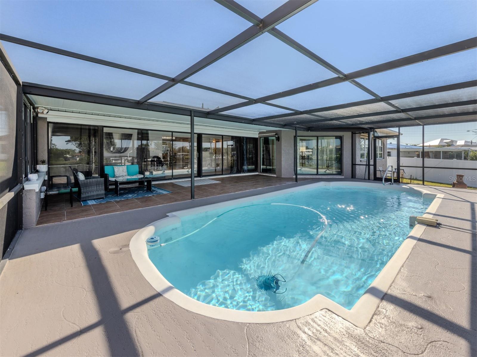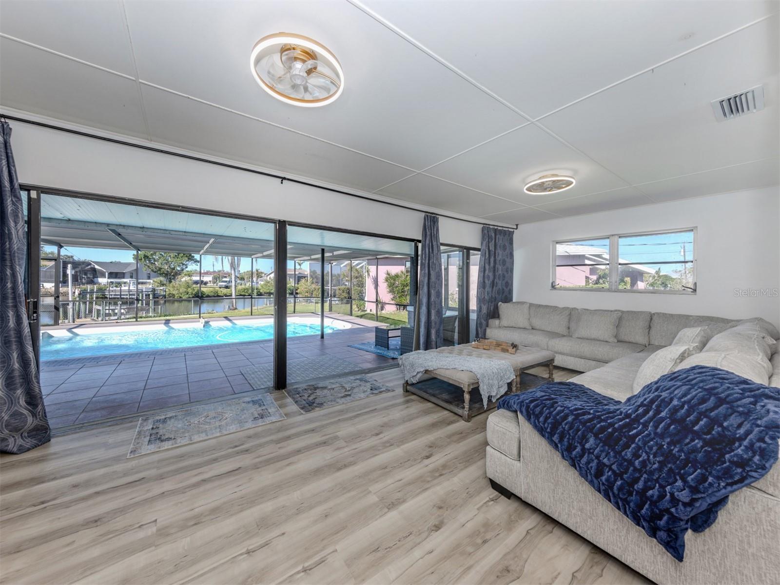 Welcome to an outdoor lover’s paradise with boat access to the treasured Gulf. There was NO flooding or damage in any past storms! This newly remodeled contemporary waterfront residence with an updated dock and desirable new 10,000-pound boat lift will surely delight. The two bedroom (easily adjustable to a traditional 3rd bedroom; owner will construct drywall for buyer if desired) , two-bath oversized two-car garage with large parking pad and pool beckons your attention and offers unparalleled water living. Resting on a one-third acre lot with no HOA or CDD fees, this property evokes the sublime allure of upscale waterside living. There was a new roof in 2022. Step inside to a fresh, neutral and light color décor. Extensive renovations include luxury vinyl wood plank coastal beach flooring, new fabulous kitchen with translucent stone counters highlighted by LED under-counter lighting system, Samsung appliance suite and unique designer touches throughout. The kitchen is the heart of this home with all the spacious main living areas connected. The large living room is rich with numerous slider doors opening to the pool and water views from most rooms. The primary bedroom is a gracious size with a nicely appointed updated bathroom. The second bedroom is on opposite side of the home creating its space with a privacy pocket door, a long walk-in closet and updated bath. The spacious third bedroom allows use as an elegant-sized flex room being used as an office with sitting area and room to spare. Deep water is less than three miles away by watercraft. A 32-foot parking pad rests behind a privacy vinyl fence for your RV or boat trailer. Location has it all! Conveniently located within two miles of Sarasota Memorial Hospital-Laurel and only minutes to Nokomis Beach, restaurants, tiki bars and marinas is this special tropical retreat. The treasured world-renowned city on the Island of Venice with theater, restaurants, a museum, an art center and cultural events, Legacy Trail biking, golf courses and Venice beaches with 14 miles of open coastline await you. This newly remodeled waterfront home is great for investment opportunities and offers generous leasing/rental opportunities. Furnishings are available on a separate purchase arrangement. Join us for a tour and experience this exceptional waterfront property.