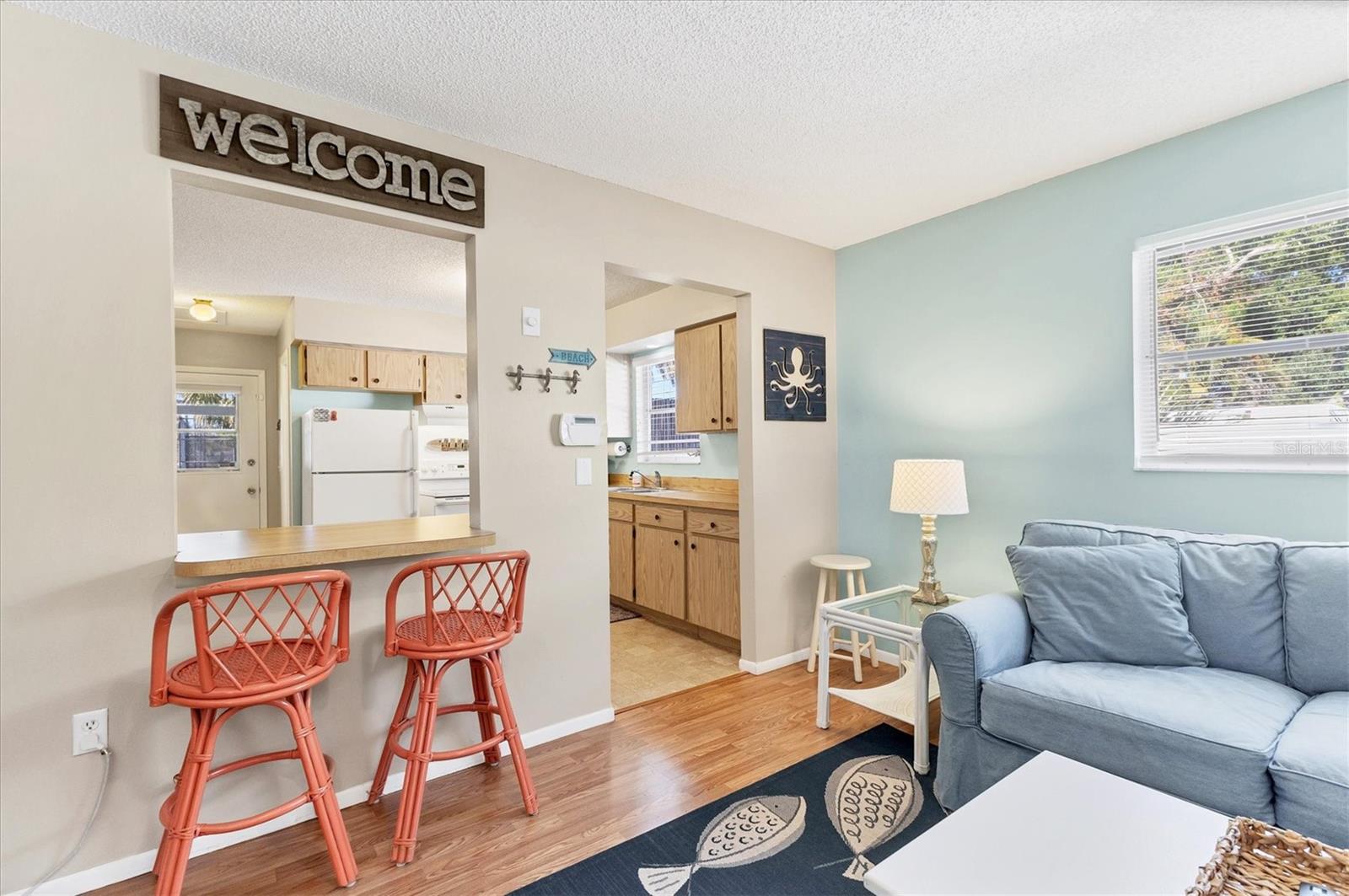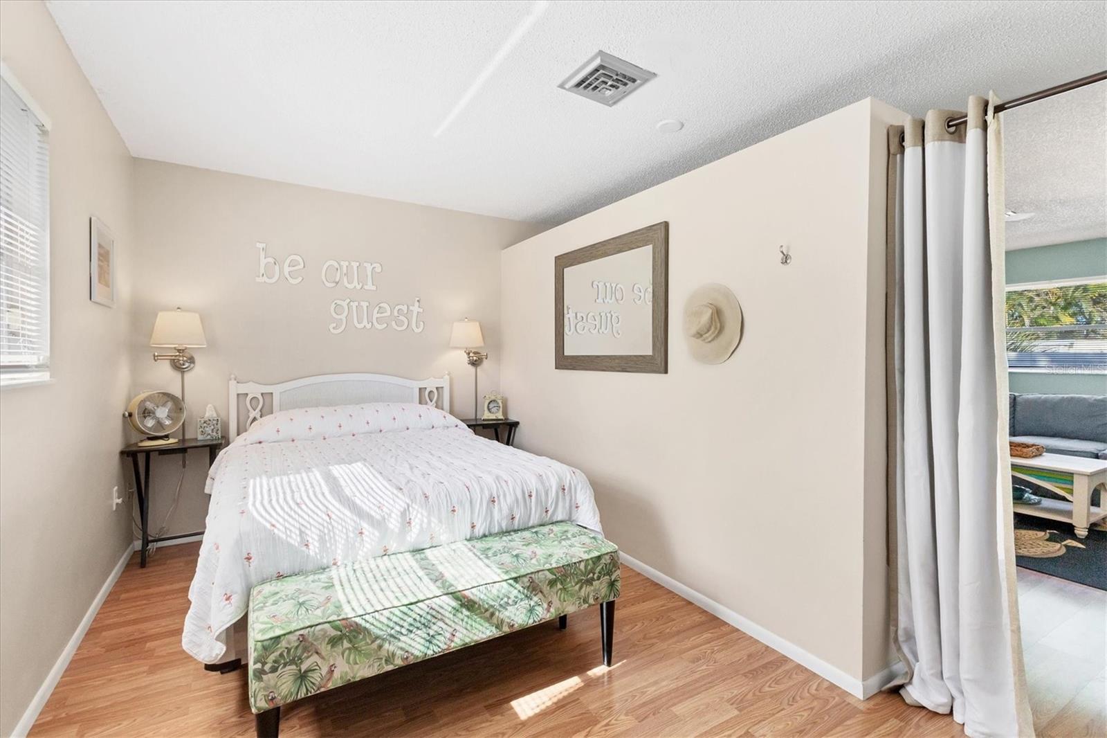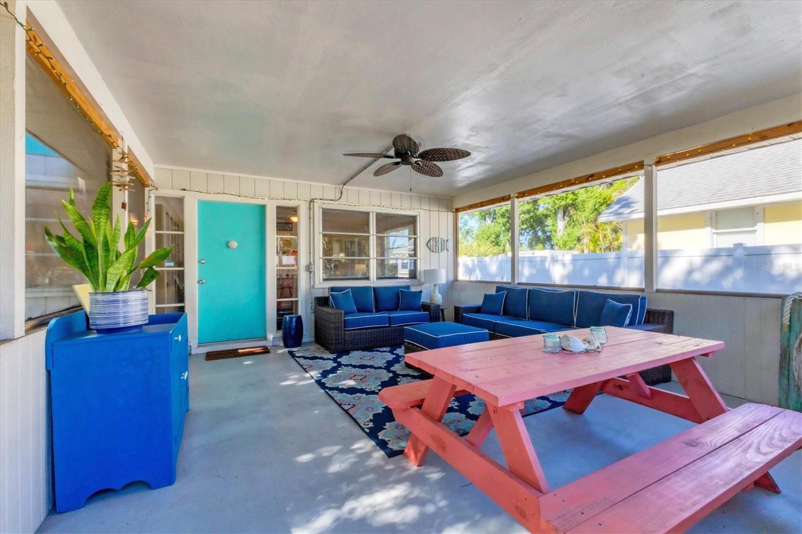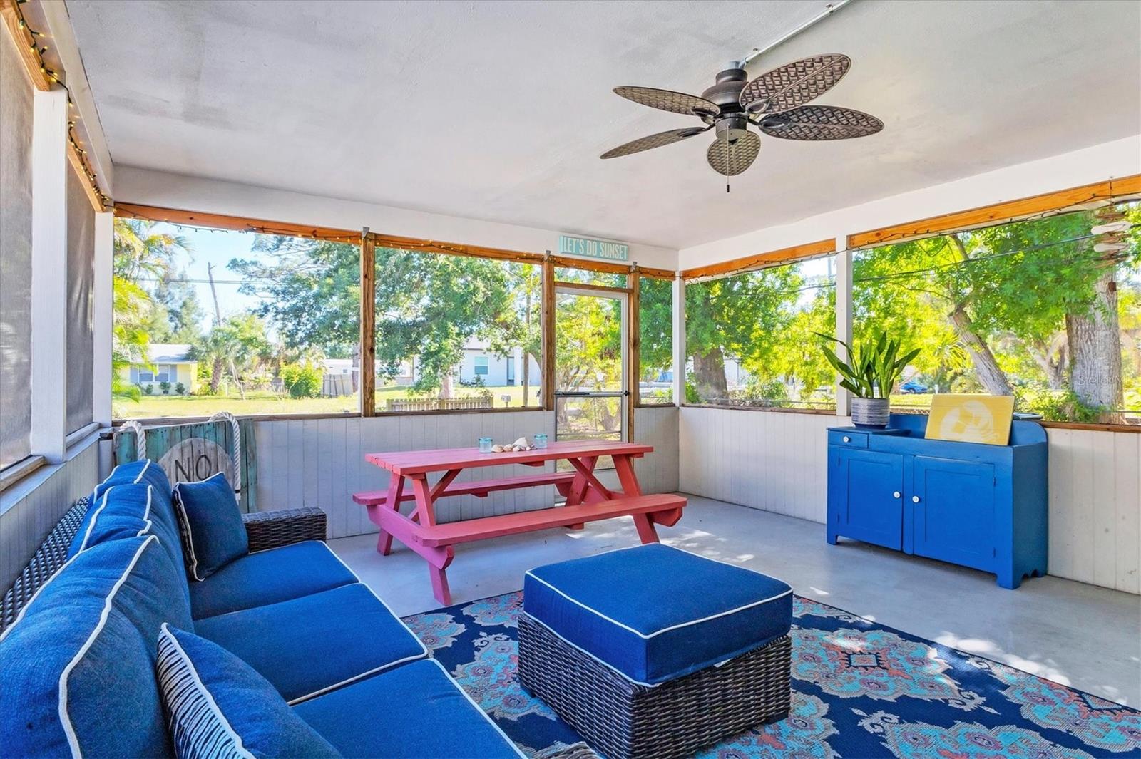 Sellers are motivated! Located west of the trail just minutes from Nokomis Beach, this fully furnished home offers an affordable turnkey opportunity for investors, seasonal residents, or anyone seeking a relaxed Gulf Coast lifestyle. The layout features one bedroom, a full bathroom, and a flexible bonus room currently used as a second bedroom. A new roof installed in 2023 adds long-term value and peace of mind, while the beautifully furnished interior is clean, functional, and move-in ready. The enclosed front porch—formerly a 2-car carport—creates a versatile space ideal for lounging, entertaining, or simply enjoying the breeze. The partially fenced backyard offers privacy with plenty of room for outdoor living or gardening. Set on a quiet street, this property is close to local shops, restaurants, and, of course, it's only two right turns to the beach. No HOA, no restrictions — just an excellent location with strong potential for personal use or rental income. If you're looking for a solid home in a desirable area with minimal upkeep and maximum flexibility, this one is worth a closer look.