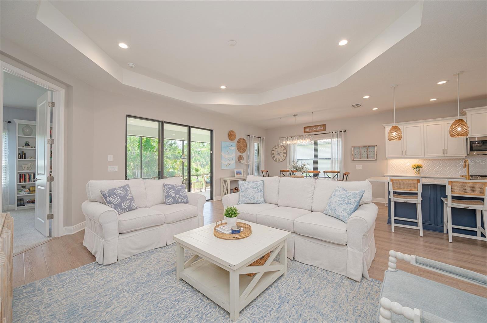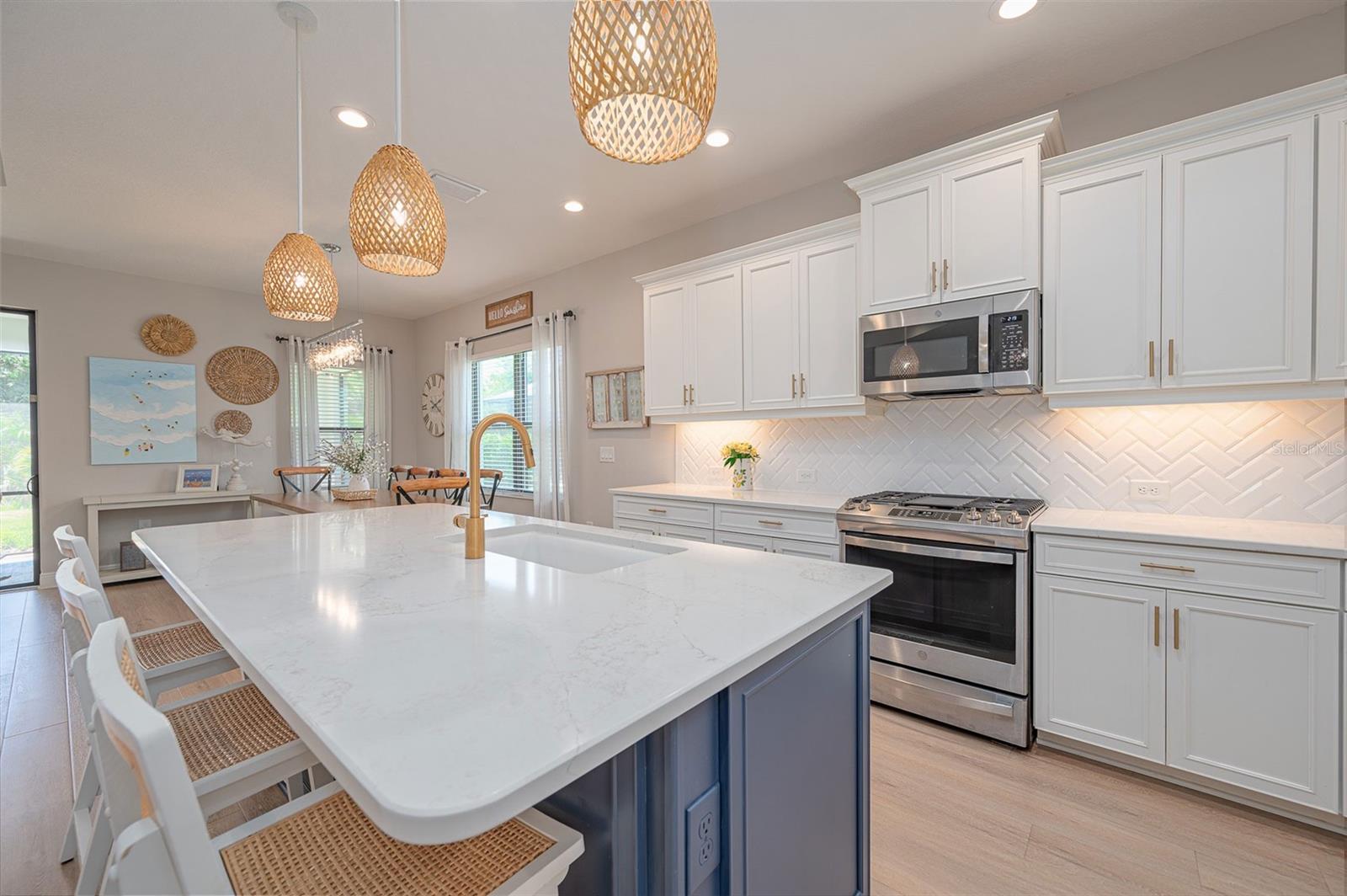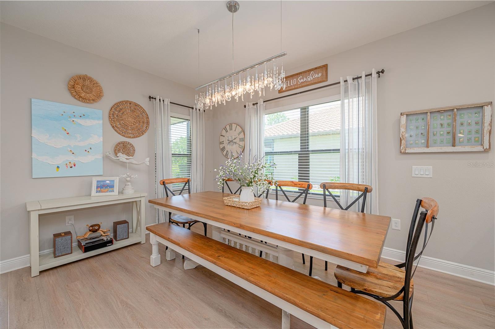 **$5,000** offered by seller to be used towards closing costs or a one year interest rate buy down! Welcome home to this stunning 4BR, 3BA home offering 2,328 sqft of luxurious living space with thoughtfully designed upgrades throughout. The home offers a unique blend of privacy and scenic beauty with uninterrupted nature preserve views. Nestled in a tranquil setting, enjoy the peace of having no homes built in front or behind. As you enter the home you will be greeted with gorgeous luxury vinyl plank flooring, captured by high ceilings and crown molding throughout, a picture perfect bead-board hallway and a beautifully wallpapered foyer that set the stage for elegance. The heart of the home, a gourmet kitchen, boasts a gorgeous upgraded quartz island and countertops perfect for entertaining, upgraded kitchen sink, soft-close cabinets, upgraded under cabinet lighting, sliding shelves, a beautiful tiled backsplash, upgraded pendant lighting complemented by GE stainless steel appliances and a custom painted island that adds the perfect finishing touches to this chef's kitchen. Just off the kitchen is the inviting dining area that is illuminated by exquisite chandelier lights perfect for hosting holiday gatherings while overlooking the great room with upgraded tray ceilings. Enter into the serene and spacious owner's suite with elegant built-in bookcases, custom board and batten details, a timeless chandelier and windows that overlook the peaceful and relaxing preserve view. The attention to detail extends to every bathroom with elegant tile walls, towel bars and upgraded fixtures with two large walk in- closets and opposite side his and her sinks for optimal space. The property is pre-wired for a pool, making future upgrades a breeze ready to transform into your private oasis. The screened in 11X20 lanai is also equipped with a gas stub and fan wiring with recessed lighting perfect for unwinding in the evening to a glass of wine. The home thoughtfully blends functionality and style, features like the optimal 4th bedroom with ensuite bathroom, keyless entry, levers on all doors, whole house 2" faux wood blinds, 8ft doors with square panels, laundry room with built-in cabinetry, laundry tub and epoxy garage floors. The home is also equipped with hurricane storm shutters for added peace of mind. The home is located in the Mediterranean-inspired community of Cielo, inspired by the dream-like, clear blue skies of Venice. With only 71 single-family homes, Cielo promises an intimate and exclusive neighborhood where tranquility meets accessibility. The community is nestled just 2 miles from I-75 in North Venice/Nokomis, Cielo offers unparalleled convenience with less than 7 miles away to arrive at some of the most beautiful white sandy beaches or be in historic downtown Venice in under 10 minutes. Just 20 minutes North is Sarasota with additional shopping and dining options. Families will appreciate the educational opportunities with local schools such as Laurel-Nokomis School and Venice High, and options to test into the top-ranked Pine View School. Plus, you're conveniently close to major employers like Tervis, PGT, Sarasota Memorial, and Bayfront Health. Cielo is a vibrant community lifestyle with amenities including a dog park, playground, picnic areas, and bike racks with low HOA and no CDD fee's. This home is immaculate, move in ready and shows just like a model. Schedule your private showing today.