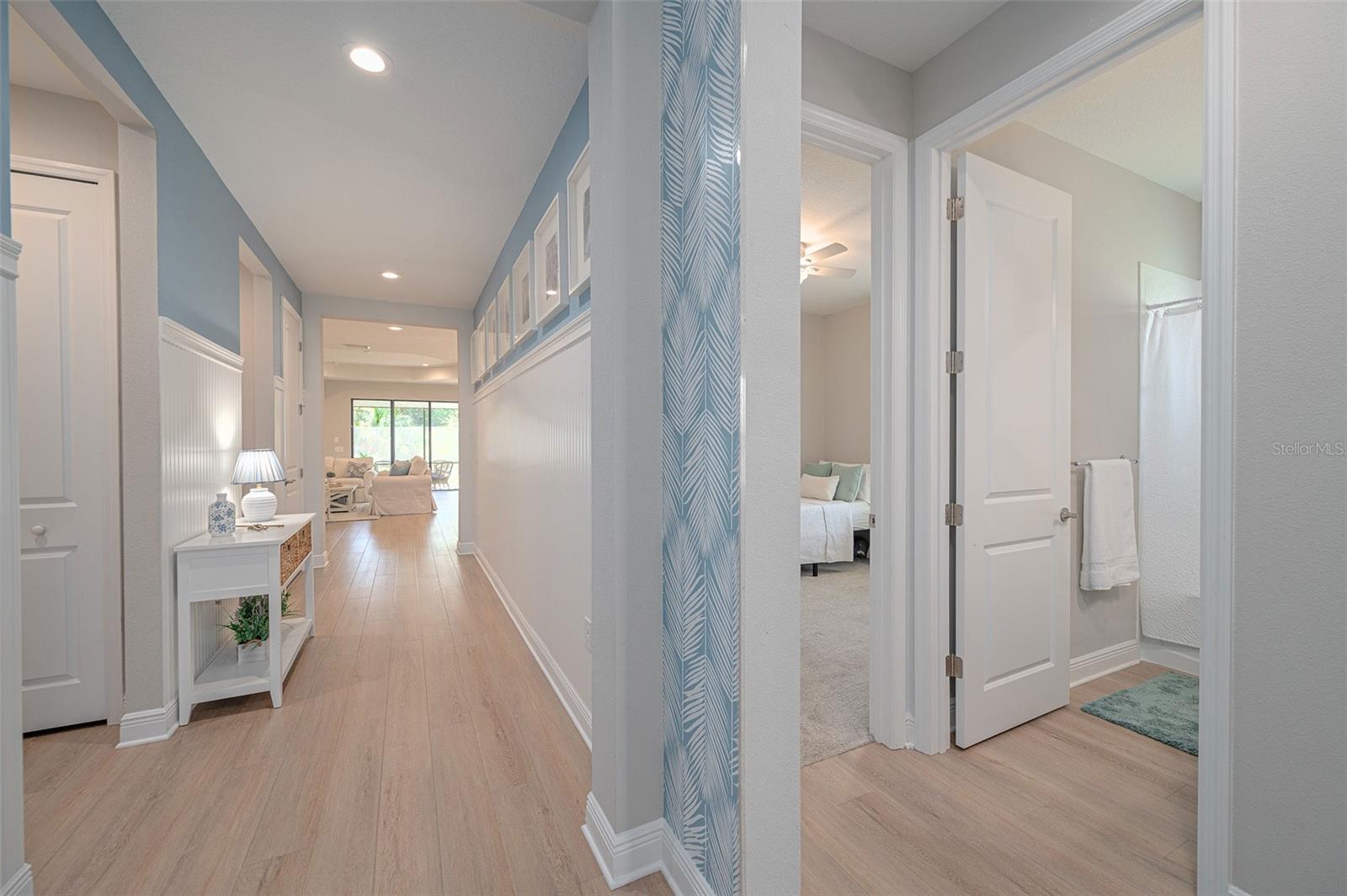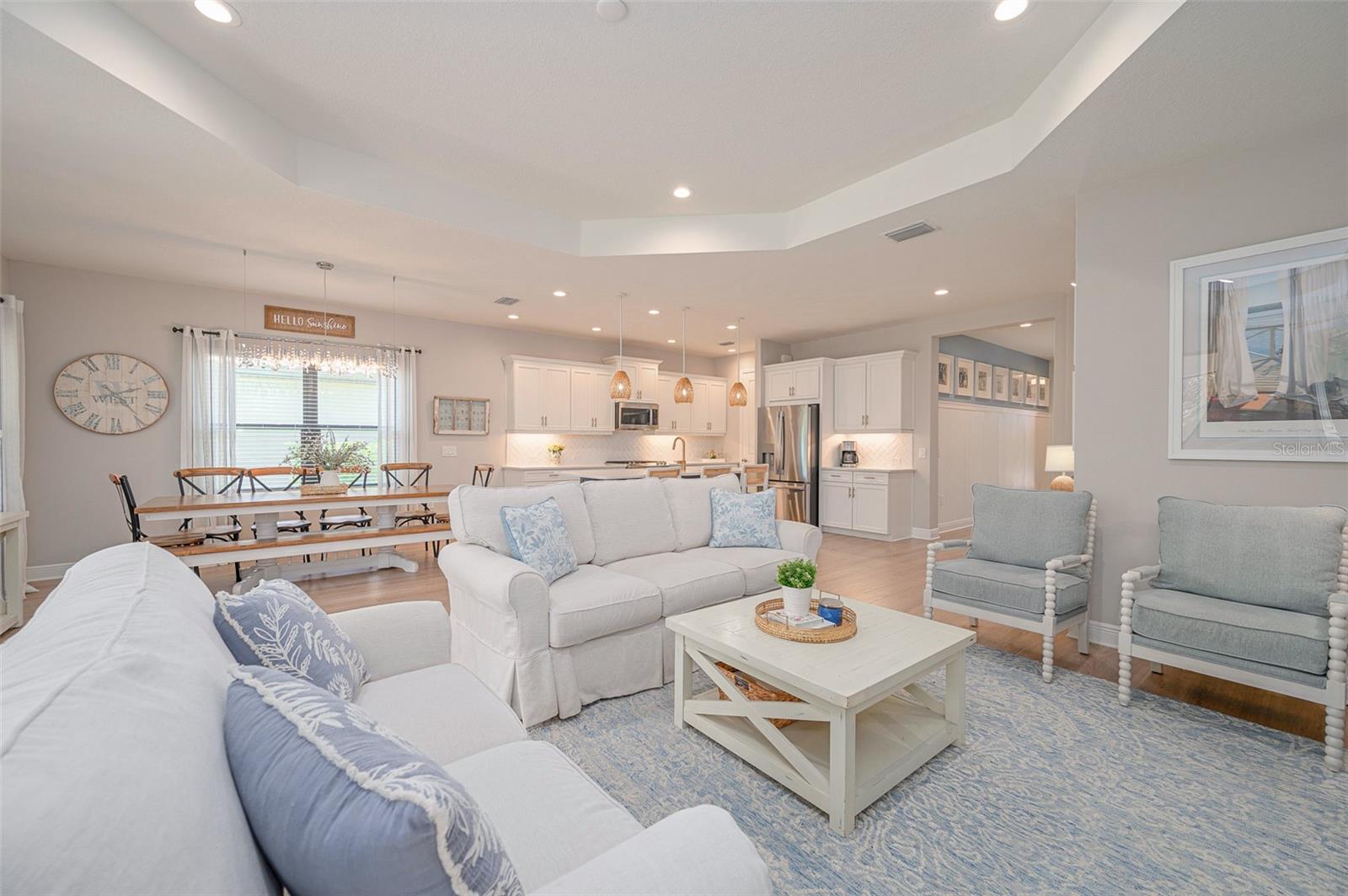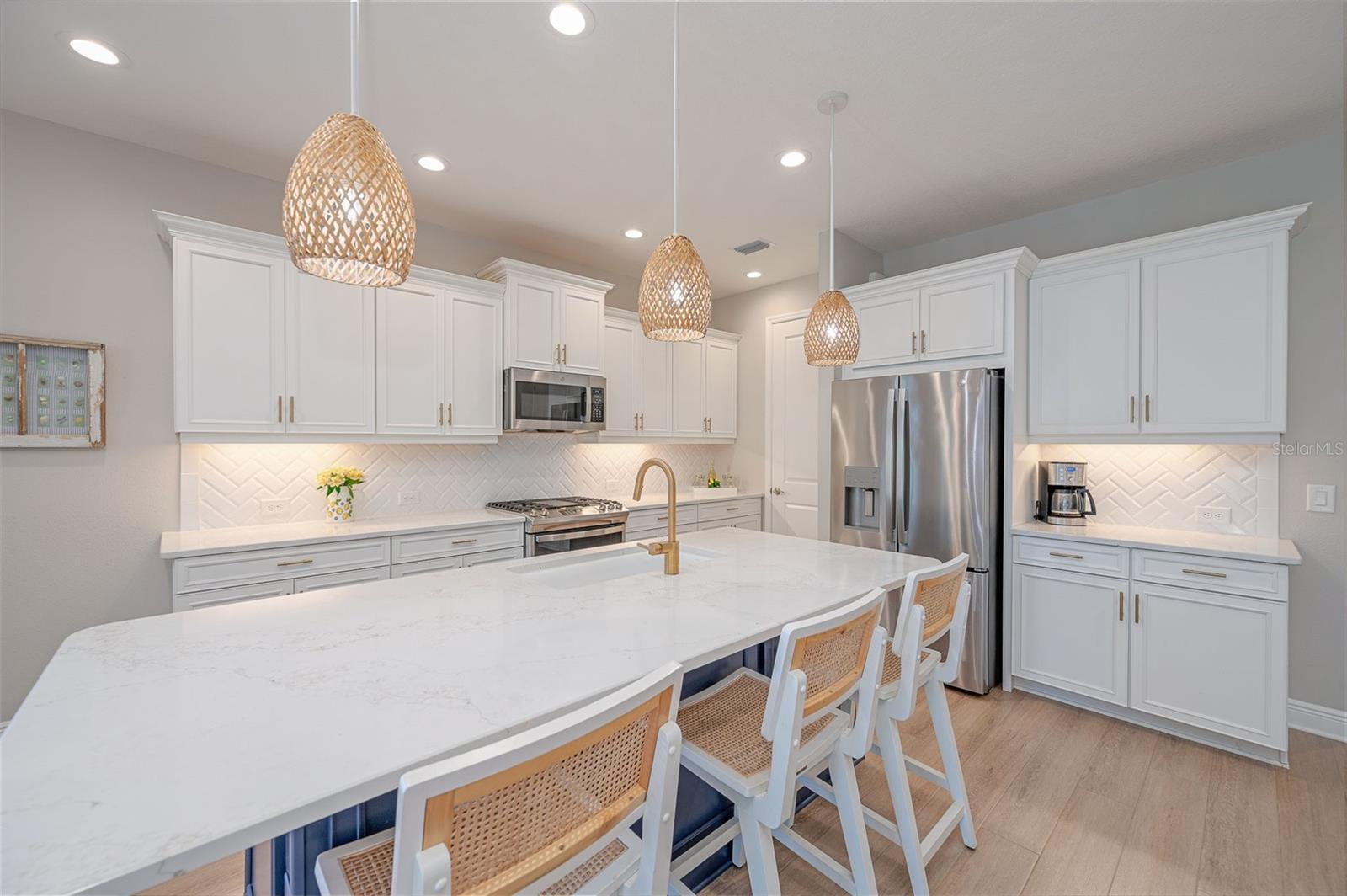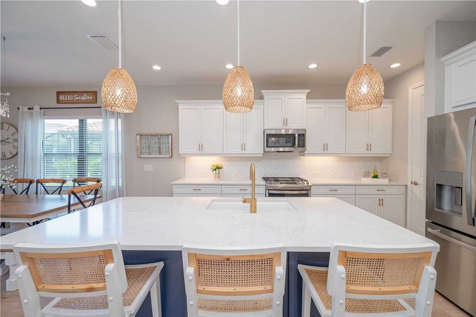 **$5,000** offered by seller to be used towards closing costs or a one year interest rate buy down! Welcome home to this stunning 4BR, 3BA home offering 2,328 sqft of luxurious living space with thoughtfully designed upgrades throughout. The home offers a unique blend of privacy and scenic beauty with uninterrupted nature preserve views. Nestled in a tranquil setting, enjoy the peace of having no homes built in front or behind. As you enter the home you will be greeted with gorgeous luxury vinyl plank flooring, captured by high ceilings and crown molding throughout, a picture perfect bead-board hallway and a beautifully wallpapered foyer that set the stage for elegance. The heart of the home, a gourmet kitchen, boasts a gorgeous upgraded quartz island and countertops perfect for entertaining, upgraded kitchen sink, soft-close cabinets, upgraded under cabinet lighting, sliding shelves, a beautiful tiled backsplash, upgraded pendant lighting complemented by GE stainless steel appliances and a custom painted island that adds the perfect finishing touches to this chef's kitchen. Just off the kitchen is the inviting dining area that is illuminated by exquisite chandelier lights perfect for hosting holiday gatherings while overlooking the great room with upgraded tray ceilings. Enter into the serene and spacious owner's suite with elegant built-in bookcases, custom board and batten details, a timeless chandelier and windows that overlook the peaceful and relaxing preserve view. The attention to detail extends to every bathroom with elegant tile walls, towel bars and upgraded fixtures with two large walk in- closets and opposite side his and her sinks for optimal space. The property is pre-wired for a pool, making future upgrades a breeze ready to transform into your private oasis. The screened in 11X20 lanai is also equipped with a gas stub and fan wiring with recessed lighting perfect for unwinding in the evening to a glass of wine. The home thoughtfully blends functionality and style, features like the optimal 4th bedroom with ensuite bathroom, keyless entry, levers on all doors, whole house 2" faux wood blinds, 8ft doors with square panels, laundry room with built-in cabinetry, laundry tub and epoxy garage floors. The home is also equipped with hurricane storm shutters for added peace of mind. The home is located in the Mediterranean-inspired community of Cielo, inspired by the dream-like, clear blue skies of Venice. With only 71 single-family homes, Cielo promises an intimate and exclusive neighborhood where tranquility meets accessibility. The community is nestled just 2 miles from I-75 in North Venice/Nokomis, Cielo offers unparalleled convenience with less than 7 miles away to arrive at some of the most beautiful white sandy beaches or be in historic downtown Venice in under 10 minutes. Just 20 minutes North is Sarasota with additional shopping and dining options. Families will appreciate the educational opportunities with local schools such as Laurel-Nokomis School and Venice High, and options to test into the top-ranked Pine View School. Plus, you're conveniently close to major employers like Tervis, PGT, Sarasota Memorial, and Bayfront Health. Cielo is a vibrant community lifestyle with amenities including a dog park, playground, picnic areas, and bike racks with low HOA and no CDD fee's. This home is immaculate, move in ready and shows just like a model. Schedule your private showing today.