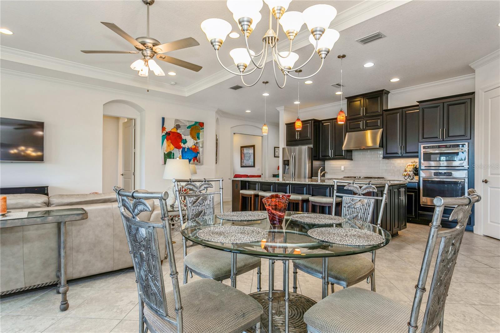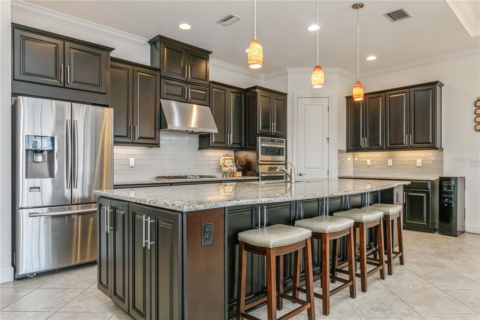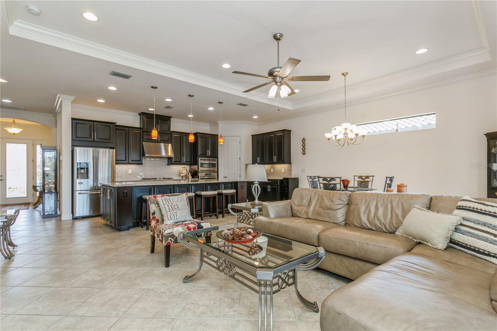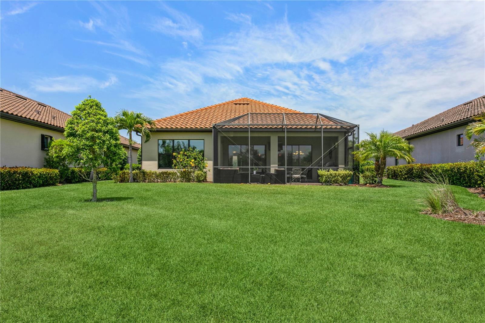 Welcome to this beautifully appointed Taylor Morrison Piceno model, offering 2 bedrooms, 2 bathrooms, a spacious den, and 1,831 sq. ft. of thoughtfully designed living space. Situated on a picturesque POND-VIEW lot, this home perfectly blends comfort, style, and Florida living. From the moment you arrive, you’ll notice a striking HURRICANE IMPACT glass-inlaid front door with dual side panels, creating an elegant entryway. Step into a large foyer that leads into an open, inviting layout featuring ceramic tile flooring in the main living areas and plush carpet in the bedrooms and den. The gourmet kitchen is a true centerpiece, boasting a large center island with built-in storage, a spacious pantry, and beautifully upgraded cabinetry. The open-concept kitchen, living, and dining area is ideal for entertaining, enhanced by tray ceilings with crown molding and two sets of triple sliding glass doors that flood the space with natural light and showcase the pond view and expansive grassy backyard. Retreat to the tranquil master suite, which features lanai access, serene water views, and an ensuite bathroom with separate vanities, a walk-in shower, and two spacious walk-in closets. Bedroom #2 is located at the front of the home and features a stunning HURRICANE IMPACT double windows for abundant natural light. A full bathroom is conveniently located just outside the bedroom in the adjacent hallway—perfect for guests or family. The home also includes a versatile den with pocket doors, ideal for a home office, guest room, or hobby space. Stepping in from the double garage, the entryway leads into the laundry room that boasts a washer and dryer (Whirlpool washer bought in March 2025) ample cabinetry and shelving for added storage. Step outside to enjoy the oversized lanai with a fully equipped OUTDOOR KITCHEN, ideal for relaxing or hosting gatherings while enjoying peaceful pond views. This home is move-in ready and full of thoughtful upgrades, designed for easy, elegant living in one of the area’s most desirable communities. Living in the Bellacina by Casey Key community offers more than just a beautiful home. Enjoy resort-style amenities including a sparkling, resort-style heated swimming pool with cabanas, a state-of-the-art clubhouse with a chef’s kitchen, pool table, a 24-hour fitness center and showers, outdoor spa, bocce ball courts, corn hole and grill area, and cozy gas fire pits. There is a private community entrance onto the famous Sarasota Legacy Trail, 4 lighted pickleball courts, a Har Tru tennis court, a playground, and 2 dog parks. A full calendar of events is organized by the on-sight Activities Director ensuring there’s always something to do and the full-time HOA Manager is on-site M-F as well. Location is key! Bellacina is only a 2.5 mi. golf-cart ride from Nokomis Beach, 5 miles from historic downtown Venice, 20 minutes to the world-renowned Siesta Key, and 30 minutes to downtown Sarasota and SRQ International Airport. This home is not just a gorgeous residence....it's a lifestyle!!