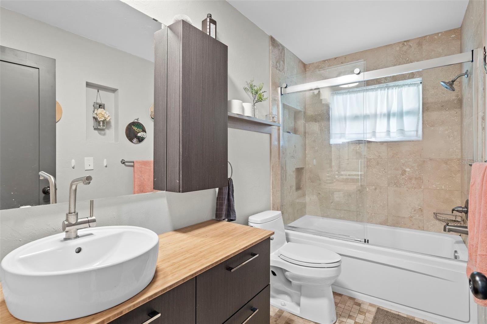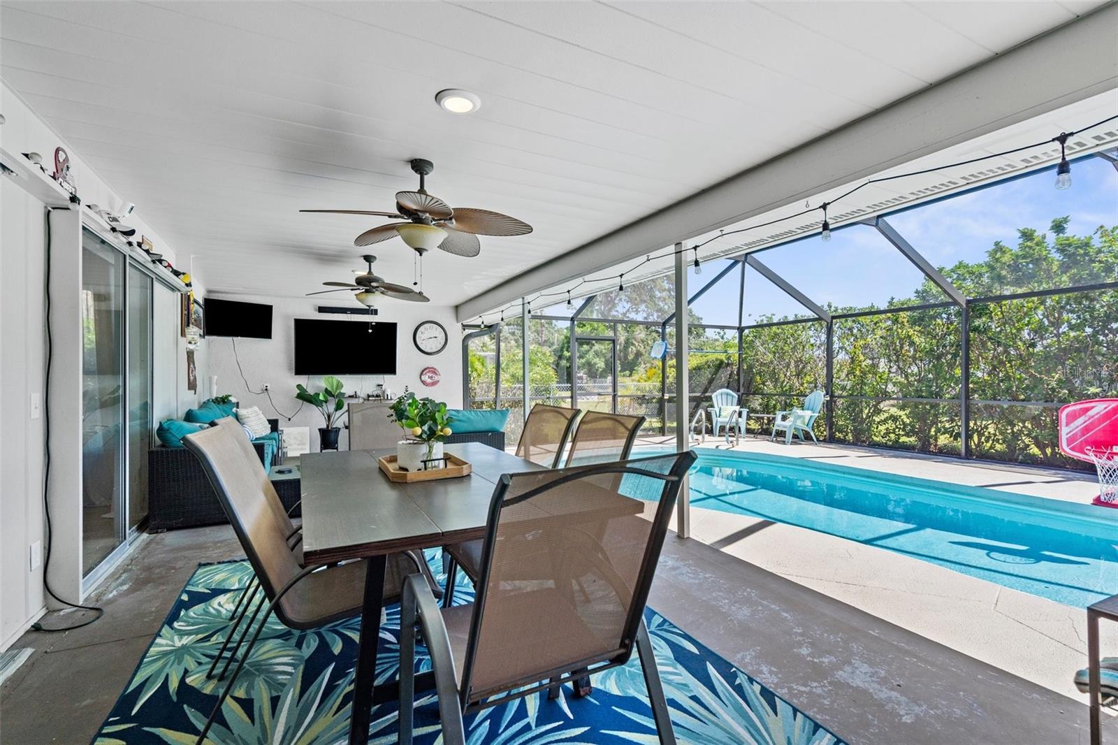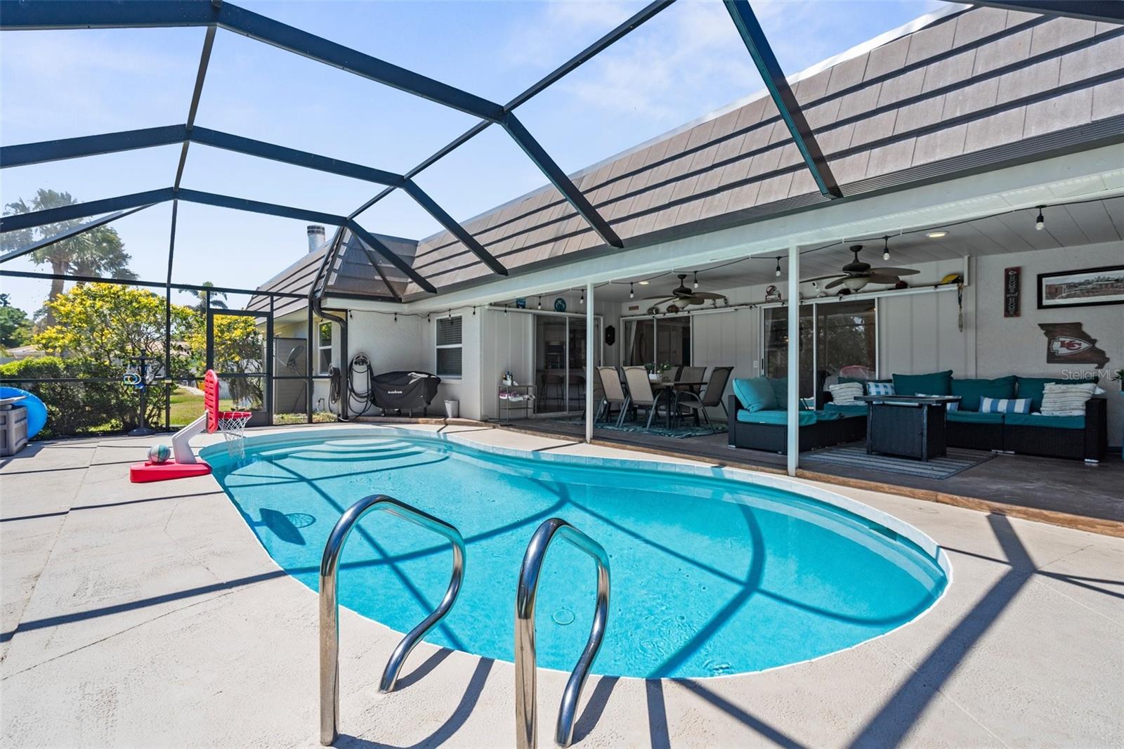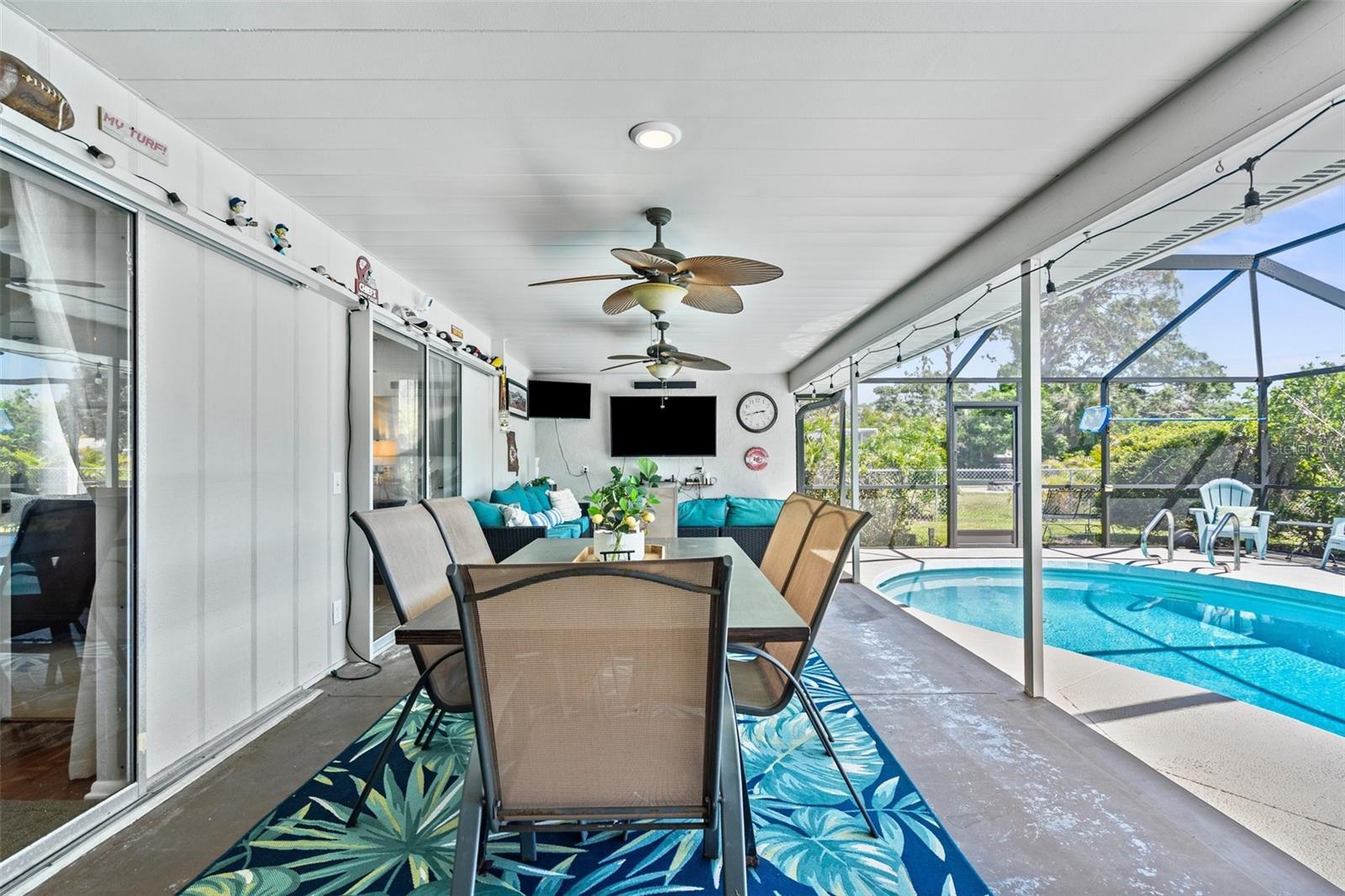 **Charming POOL Home in the highly sought-after waterfront community of Sorrento South!** Lovingly maintained, this home features THREE BEDROOMS, TWO BATHS, and a UNIQUE OVERSIZED LOT (.35 ACRE). As you enter the home, you are greeted by the open floor plan, neutral paint, and tons of natural light, making the home feel spacious and inviting. To the left you will notice the front living room and dining room. The kitchen opens up to the dinette and family room with brick fireplace- perfect for entertaining your guests. The kitchen has been updated to include newer countertops, white cabinets, and stainless appliances. Just past the dining room is the primary suite with dual closets (one walk-in), ensuite bathroom, and plenty of room for a king sized bed. On the opposite side of the home, past the family room, you’ll find the two guest bedrooms and guest bathroom. Sliding doors in the dining room, dinette, and primary suite open to an expansive pool area, allowing you to seamlessly blend the indoor and outdoor living spaces. Relax in your NEWLY RESURFACED, heated pool year-round and mosquito-free! The house is equipped with hurricane shutters, providing a peace of mind during storm season. Significant updates include a NEWER LANAI CAGE (2021), NEWER MANSARD TILE ROOF (2021), NEW HVAC SYSTEM (2023), and NEW WATER HEATER (2024). Fences are permitted in this neighborhood! This home is in the X flood zone- so no need for flood insurance. Sorrento South is a sought-after, deed restricted neighborhood with a public golf course and a marina—where an opportunity could be possible for a boat slip rental from a private owner! Plus, you’re just 3 miles from the beautiful Nokomis Beach, North Jetty, and several waterfront dining locations! You can golf cart or bike on the “back roads” to get to these restaurants and the beach! This unique community has a LOW HOA FEE of just $300 per year and NO CDD FEE! Located just off of US 41 and easy access to I-75! This neighborhood is just a short drive from Venice Island, with it's beaches, charming boutique shops, dining options, Venice Little Theater, fishing pier, weekly farmer’s market, and so much more! Don’t miss the opportunity to make this exceptional property your new home—schedule your showing today!