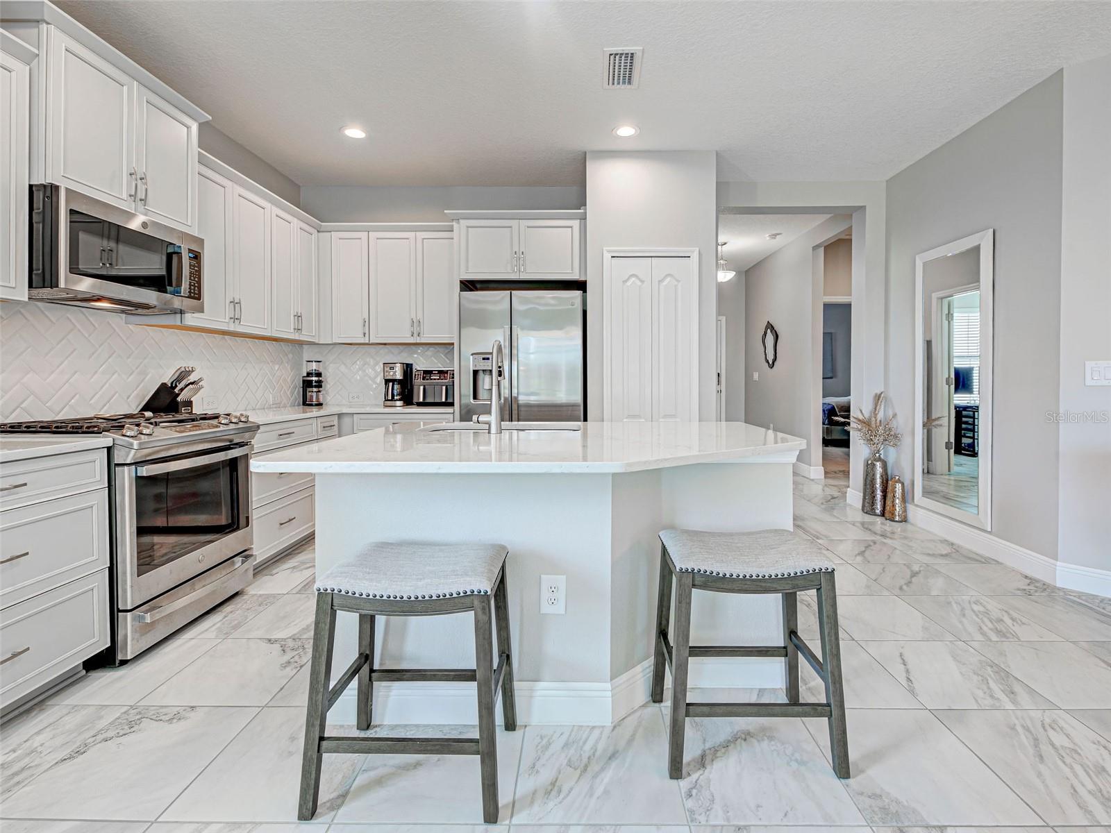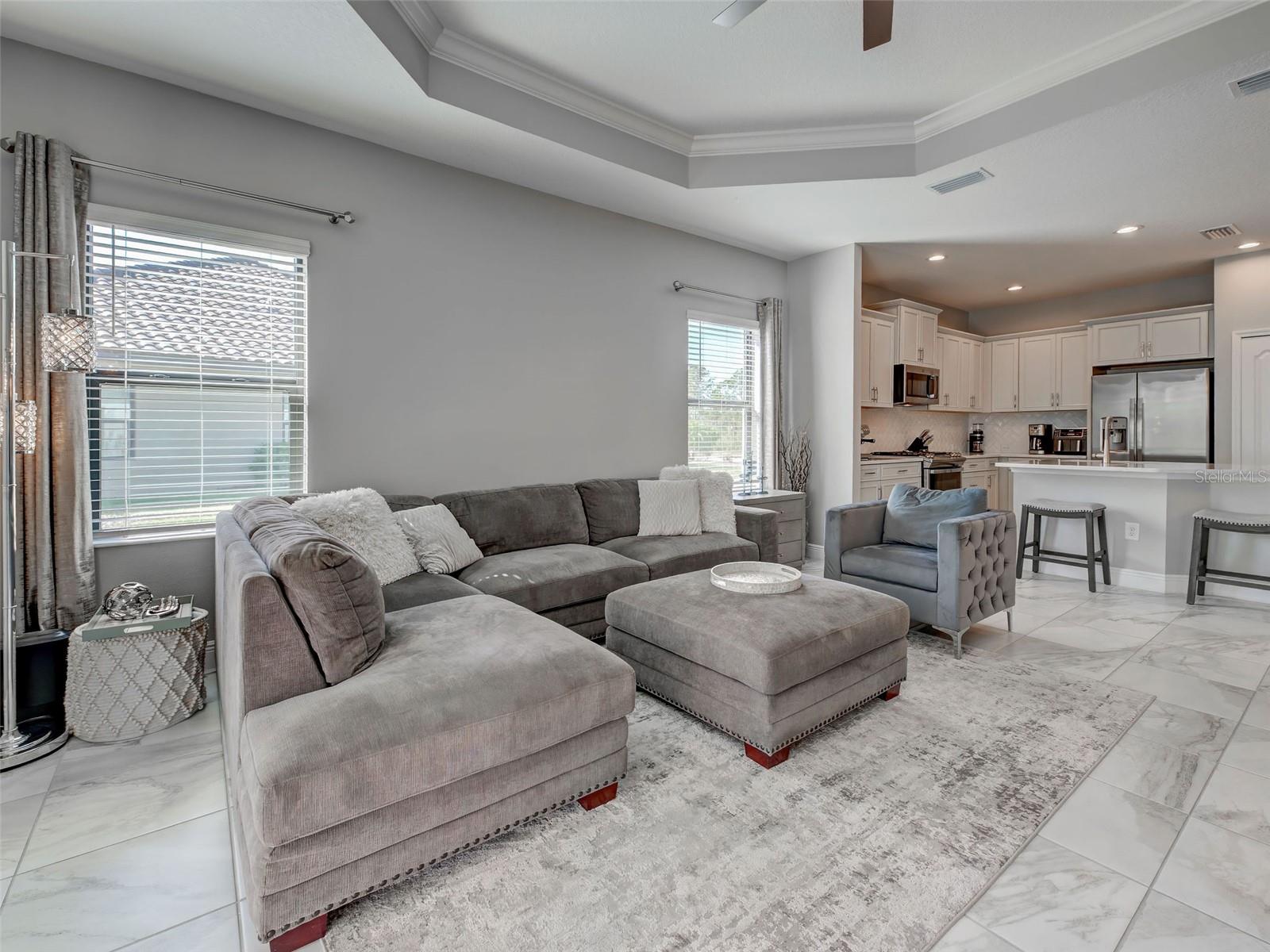 MAKE AN OFFER TODAY - Sellers are motivated and Ready for all Reasonable Offers! LIVING THE DREAM IN FLORIDA! This nearly new 2021-built villa with 2 BEDROOMS, 2 BATHROOMS, DEN & 2 CAR GARAGE is ideally situated in Vicenza, a gated Italian-inspired resort community designed for those who appreciate both beauty and tranquility. MOVE-IN READY & AVAILABLE NOW, there’s no need to wait for new construction. Nestled on a quiet, low-traffic street, THIS VILLA IS JUST A SHORT DISTANCE TO VICENZA’S AMENITY CENTER, INCLUDING TWO DOG PARKS, A RESORT-STYLE HEATED POOL WITH SPA & CABANAS, PICKLEBALL & BOCCE COURTS, A CLUBHOUSE, AND MILES OF TRAILS that wind through lush nature preserves. UNDERGROUND UTILITIES MEAN NO OVERHEAD POWER LINES NEAR THIS VILLA. From the moment you arrive, the expansive lawn and charming covered porch invite you to unwind and take in a breathtaking Florida sunset. Infused with a modern coastal aesthetic, this home HAS BEEN RECENTLY PAINTED and features a soothing palette of warm grays & crisp whites, complemented by designer lighting fixtures & contemporary ceiling fans. High ceilings add volume and openness, creating an airy ambiance throughout the home. Inside, large-format tile flooring flows seamlessly through the main living spaces, offering sophistication and ease of maintenance. At the front of the home, a light-filled versatile den or office space is enclosed by elegant double doors, providing both privacy and a peaceful retreat. The heart of the home is an open-concept great room, thoughtfully integrating the kitchen, dining and living areas into one cohesive space perfect for entertaining or casual everyday living. The gourmet kitchen features light gray cabinetry, quartz countertops, stainless appliances including a gas range, and a timeless subway tile backsplash set in a herringbone pattern – blending style and functionality. Large sliding glass doors flood the space with natural light and opens to the screened lanai, where you’ll enjoy serene views of the nature preserve just beyond – your private piece of paradise. THE LANAI HAS OPTIMAL NORTHEAST ORIENTATION TO MINIMIZE AFTERNOON HEAT IN THE LIVING AREAS. THE FRONT PORCH FACES SOUTHWEST WHERE ONE CAN ENJOY A BEAUTIFUL SUNSET. The spacious primary suite, tucked away at the rear of the home for privacy, is a tranquil retreat. The en-suite bathroom is spa-inspired, complete with a luxurious walk-in shower, and separate vanities. The split floor plan offers privacy for guests, with a guest bedroom and full bathroom located at the front of the home. Vicenza is a vibrant, active-lifestyle community with regular social events. Residents enjoy LOW HOA FEES and NO CDD FEES. You’re going to love Vicenza’s convenient location to the Gulf Coast beaches, Venice Myakka River Park, Historic Downtown Venice, Sarasota Memorial Hospital, Atlanta Braves CoolToday Stadium, I75, golfing, boating, fishing, waterfront dining, fine dining, shopping, nightlife & more! This villa offers more than just a home, it’s a lifestyle waiting to be embraced! Don’t wait – schedule a showing today & be sure to ask about the home warranty sellers are including!