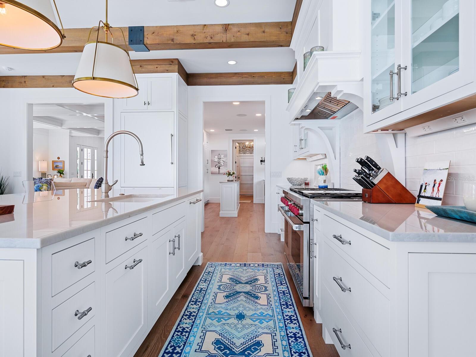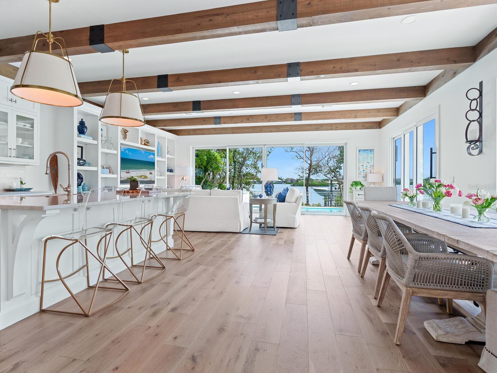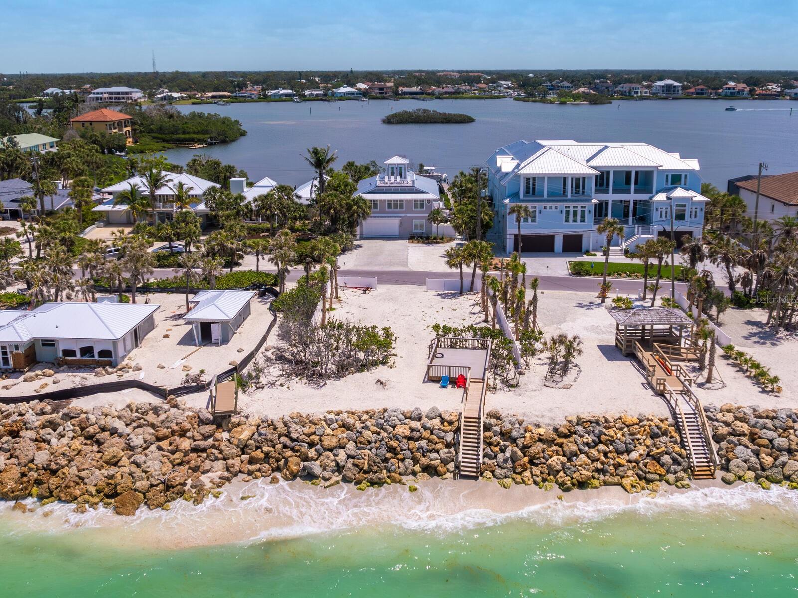 Casey Key Gulf-to-Bay | Private Beach | Curated Waterfront Residence. Welcome to this rare Gulf-to-Bay property on exclusive Casey Key, where timeless design meets modern coastal luxury. Reimagined and renovation completed in 2023— a new resort-style pool and spa added in 2025—this move-in-ready oasis offers private beach access, sweeping Intracoastal Waterway views, and a relaxed yet refined lifestyle. Expansive open living spaces are filled with natural light and feature wide-plank wood flooring, exposed wood beams, and clean architectural lines. A working fireplace anchors the living room, connecting seamlessly to the great room and a chef-inspired kitchen. The dual-concept kitchen is equipped with two Sub-Zero refrigerators, a Wolf range, two Asko dishwashers, and dramatic Zeus quartzite countertops. Custom cabinetry, designer lighting, and a spacious layout make it ideal for both everyday living and entertaining. With four bedrooms, three and a half bathrooms, and a dedicated study/den, the floor plan offers flexibility and privacy. Upstairs guest suites enjoy spectacular water views from every room. An upper-level deck overlooking the Gulf is perfect for sunset viewing and quiet evening relaxation. Built for coastal durability, the residence features hurricane-impact doors and windows, a standing seam metal roof, and cedar siding. Outdoors, the newly completed heated pool and spa, surrounded by lush tropical landscaping, create a private retreat. A 13,000 lb. boat lift and dock provide easy access to the Intracoastal for boating enthusiasts. Casey Key is more than just an address—it's a lifestyle. This exclusive 8-mile island offers a rare blend of natural beauty, tranquility, and modern luxury. With pristine beaches, crystal-clear waters, and endless opportunities for water sports, it's a sanctuary for those seeking serenity and access to the vibrant culture of nearby Venice and downtown Sarasota.
