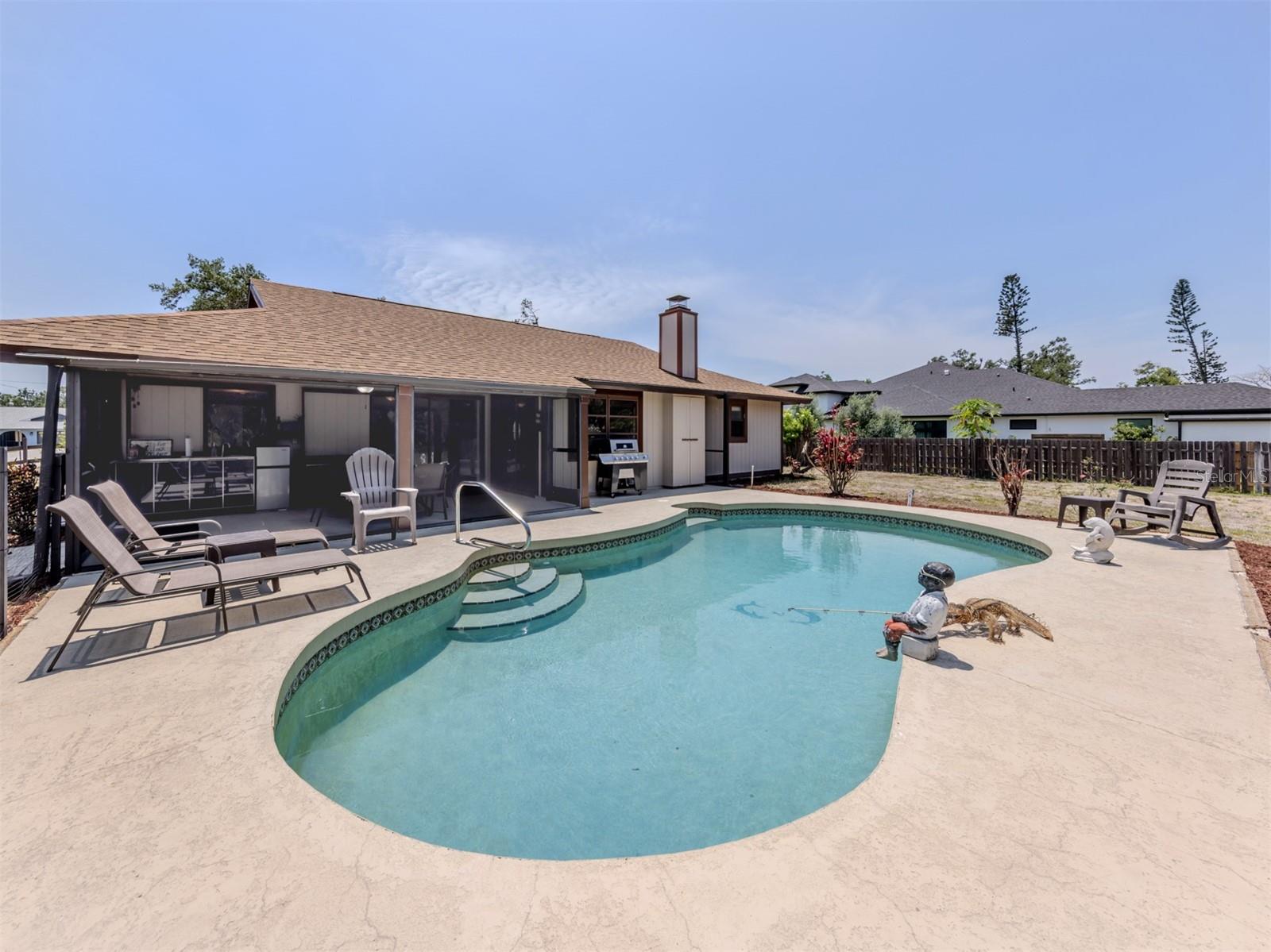 Rare opportunity. This property has two houses on 1 acre with an inground pool, no HOA and only a few miles from Nokomis Beach. The main house has two bedrooms and two baths, vaulted ceilings, newer stainless Frigidaire appliances and a wood-burning fireplace. The guest house is a full one-bedroom house with a full kitchen and separate bedroom. This property has unlimited potential. No HOA. You can build extra outbuildings, garages and/or store your boats or RVs. Ideal home and land for making this your own with no restrictions! This is a rare find.