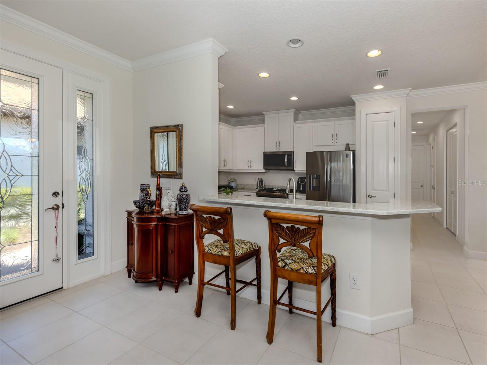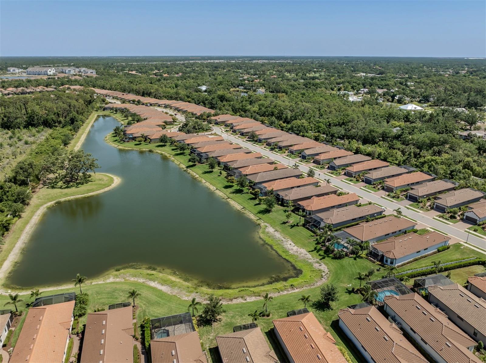 Welcome to your WATER-VIEW home in the desirable Bellacina by Casey Key community in Nokomis, Florida. Embrace the epitome of Florida living in this inviting END-Unit, Taylor Morrison Roma model, single family home situated on a peaceful water-view lot with a large side yard, featuring a spacious living area and welcoming atmosphere! This gated community offers a tranquil setting with proximity to Nokomis Beach, Venice Island, and the Legacy Trail, providing residents with a blend of peaceful living and access to resort-style local amenities. The primary suite includes spacious bay windows overlooking the serene backyard, a spacious En-suite bathroom, and a walk-in closet. Step outside to an extended lanai, ideal for entertaining or relaxing while enjoying tranquil pond views. Use the versatile Den as an office or third bedroom, complete with French doors for added privacy. This home also features a two-car garage with sleek epoxy flooring and storage for all your needs, a paved driveway, lush landscape, and hurricane shutters for your peace of mind. Living in Bellacina at Casey Key includes a heated swimming pool, a state-of-the-art fitness center, pickleball and tennis courts, bocce ball courts, fire pit, a clubhouse with a chef's kitchen, dog parks, playground, and direct gated access to the Legacy Trail for walking and biking enthusiasts. The community also hosts a variety of social events, fostering a vibrant and active lifestyle. Located just minutes from Nokomis Beach and a short drive from historic downtown Venice, this home provides easy access to the best of Florida's Gulf Coast. With Sarasota and Siesta Key within a short drive, and SRQ International Airport approximately 35 minutes away, convenience is at your doorstep. Live like you're on vacation every day at Bellacina and enjoy a Maintenance-Free Living community. Lawn care and common area maintenance are included in your HOA fees. Whether seeking a primary residence or a vacation home, this home provides a comfortable and active lifestyle in a serene setting. Close to shopping, restaurants, Oscar Scherer State Park, arts, Shelby Gardens, world-known beaches, golf courses, fishing, Atlanta Braves Stadium, Warm Mineral Springs, and much more. Experience the perfect blend of luxury, comfort, and coastal living at its finest. This home is being offered with optional furnishings for your convinience. Schedule your private tour today and make this exceptional slice of paradise your new home.