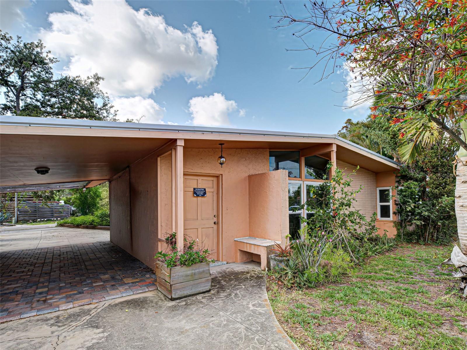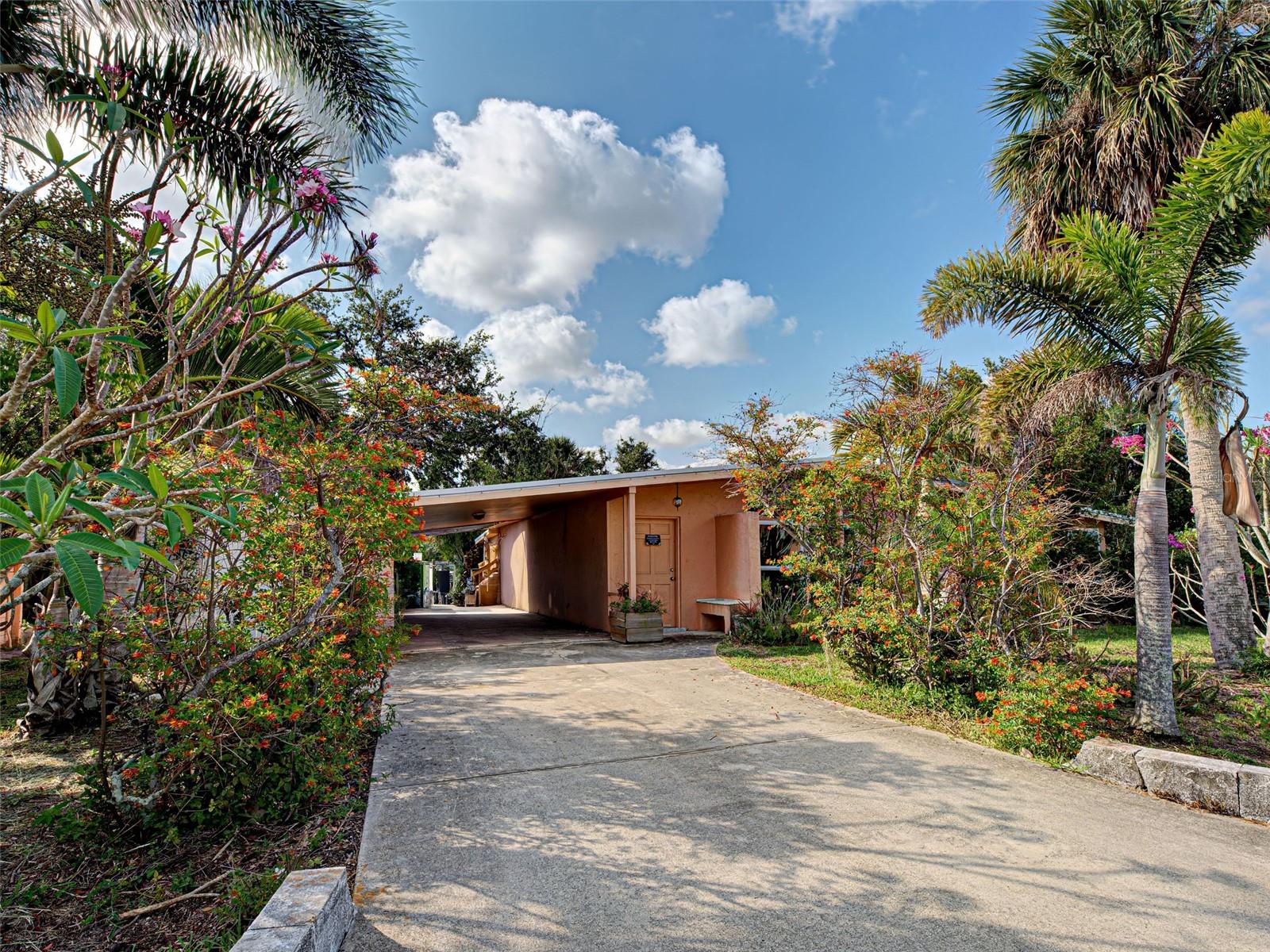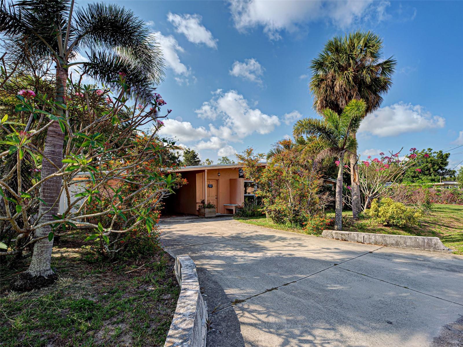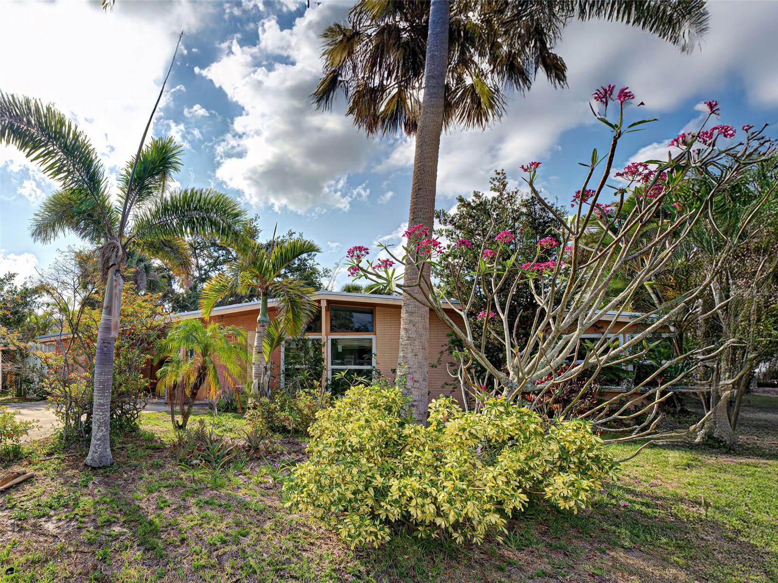 REDUCED! Motivated seller says SELL! What a cool, mid-century modern home! Wooden beamed ceilings, original terrazzo floors, and a really cool retro vibe reverberate through this home in a nice, quiet Nokomis neighborhood. Situated on over a quarter of an acre in a community without formal deed restrictions and near shopping and area beaches makes this an ideal spot to call "home". High vaulted ceilings provide a spacious feel throughout the main living area. The kitchen has an island and opens onto the open-concept living area. The dining room is tucked away in it's own space, perfect for intimate evenings. A mother-in-law suite is conveniently attached to the main house but separate from the main living area with a private entry, offering the best of both worlds. A bonus room/Florida room is encased with NEW WINDOWS and opens to a view of the back yard. Also on-site is a detached garage, separate laundry area in carport. NEW ROOF (2025), NEW A/C SYSTEM (2024) and NEW WINDOWS (2024)... all the heavy lifting has been done for you. This is truly a great home, whether you have a small family, are empty-nesters looking for an artsy retreat, or an investor seeking rental opportunities....this home has it ALL!