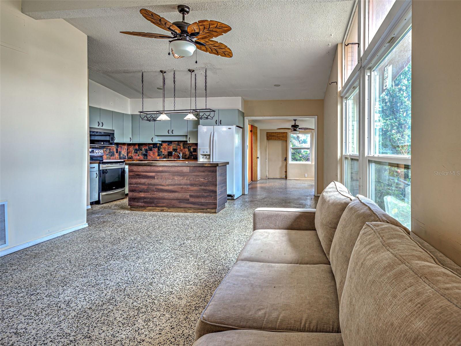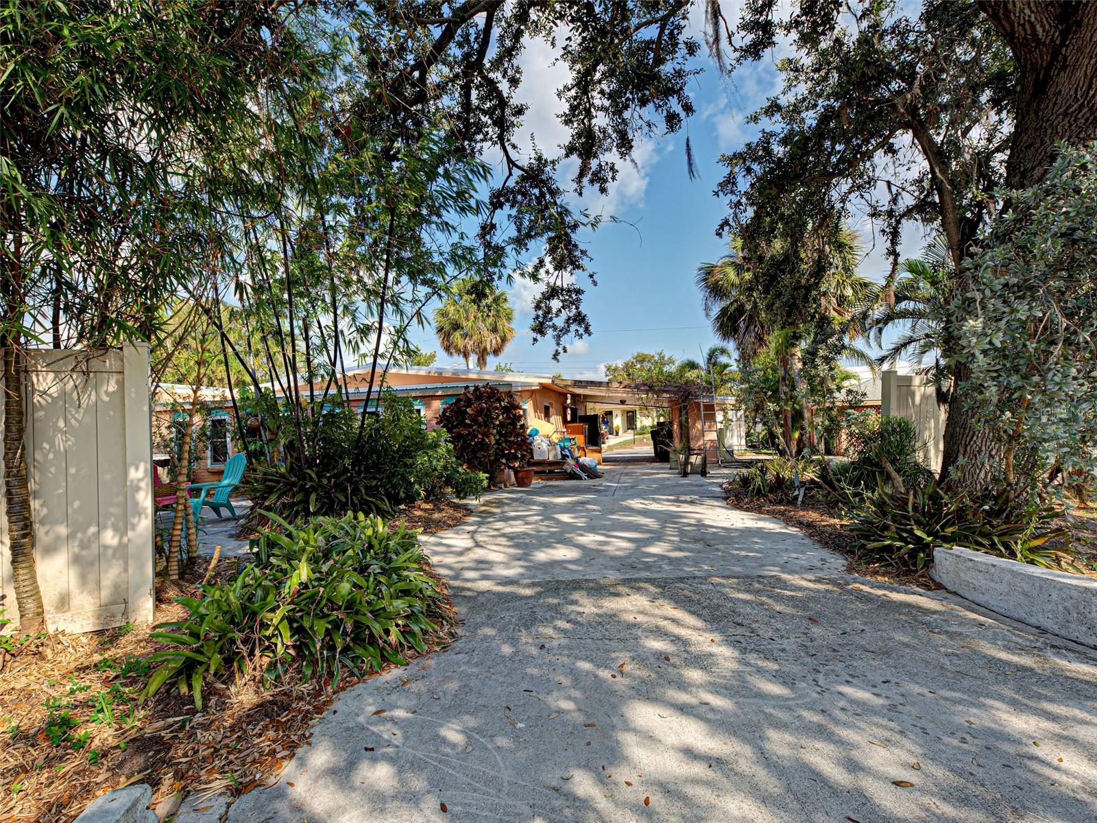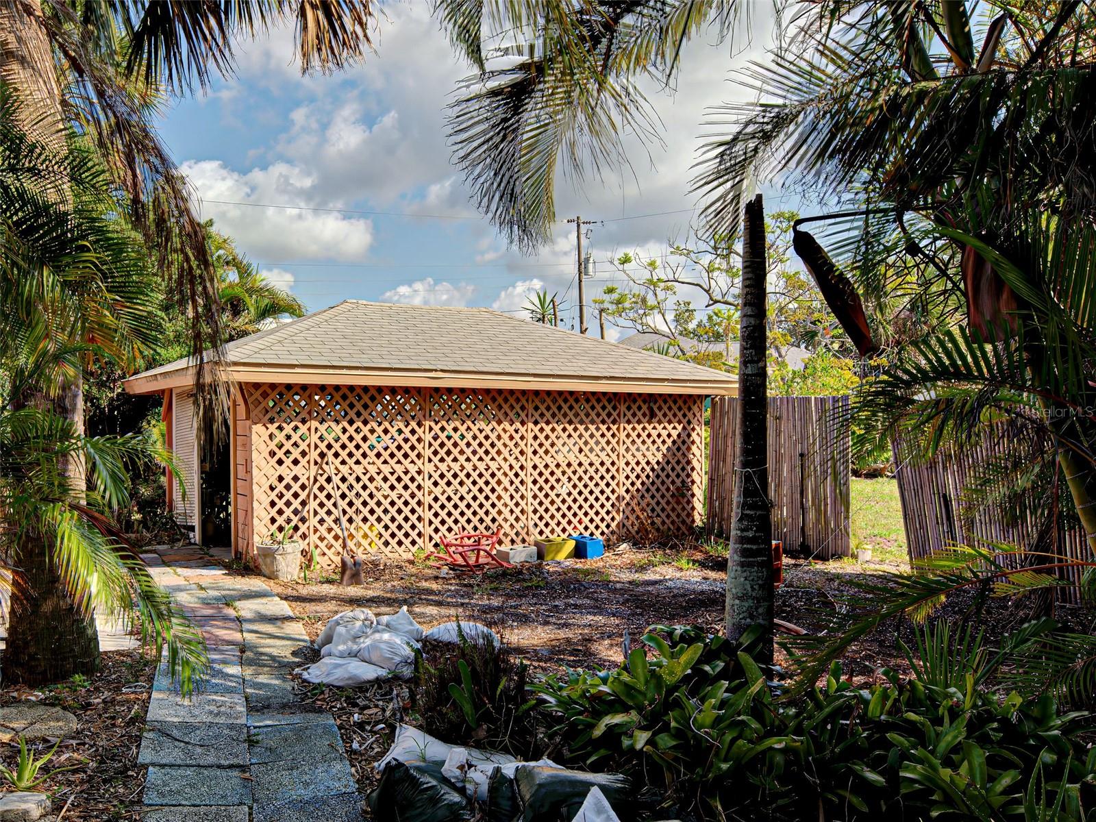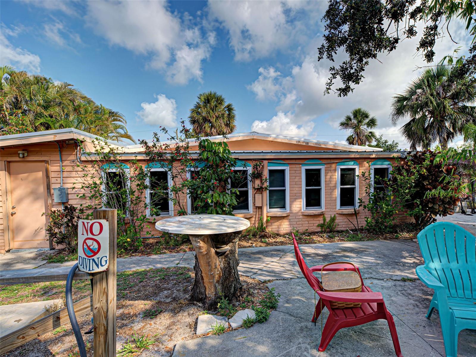 REDUCED! Motivated seller says SELL! What a cool, mid-century modern home! Wooden beamed ceilings, original terrazzo floors, and a really cool retro vibe reverberate through this home in a nice, quiet Nokomis neighborhood. Situated on over a quarter of an acre in a community without formal deed restrictions and near shopping and area beaches makes this an ideal spot to call "home". High vaulted ceilings provide a spacious feel throughout the main living area. The kitchen has an island and opens onto the open-concept living area. The dining room is tucked away in it's own space, perfect for intimate evenings. A mother-in-law suite is conveniently attached to the main house but separate from the main living area with a private entry, offering the best of both worlds. A bonus room/Florida room is encased with NEW WINDOWS and opens to a view of the back yard. Also on-site is a detached garage, separate laundry area in carport. NEW ROOF (2025), NEW A/C SYSTEM (2024) and NEW WINDOWS (2024)... all the heavy lifting has been done for you. This is truly a great home, whether you have a small family, are empty-nesters looking for an artsy retreat, or an investor seeking rental opportunities....this home has it ALL!