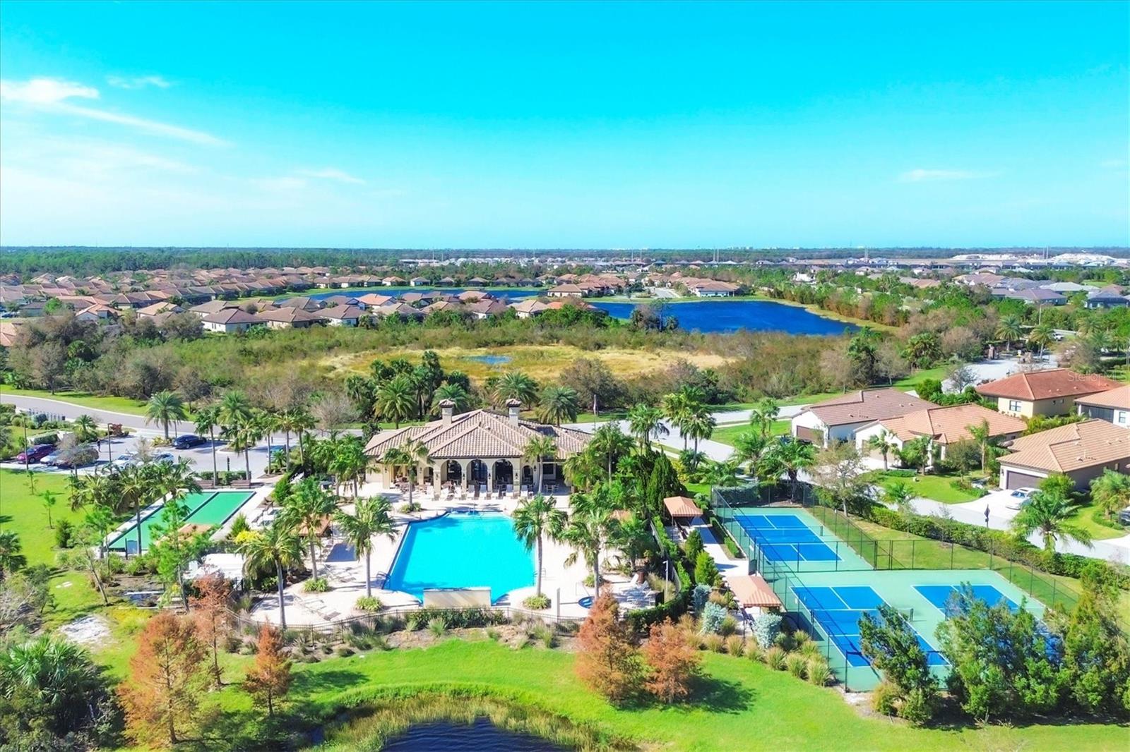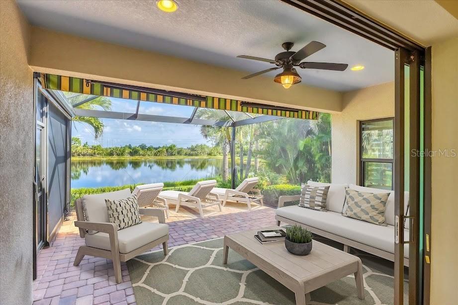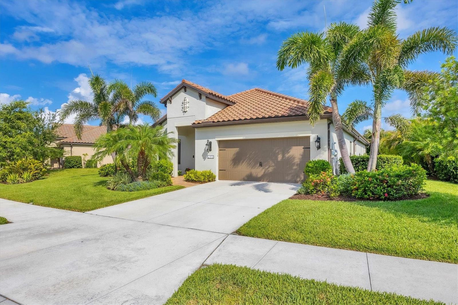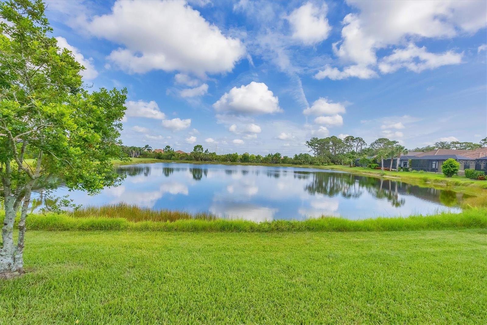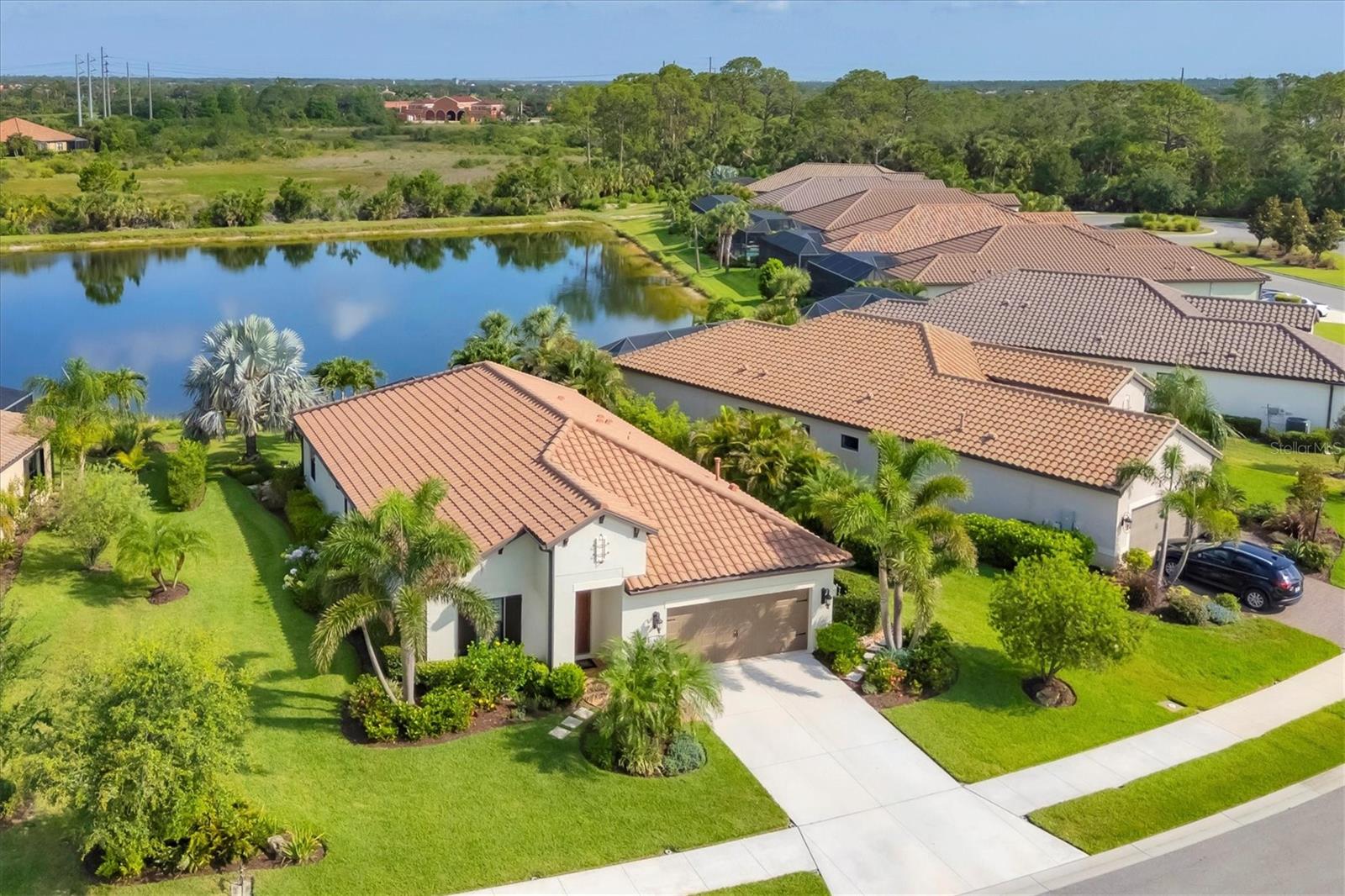 DON'T WAIT TO SEE THIS MAGNIFICENT HOME BEING OFFERED NOW!! Located on a short cul de sac street with little drive through traffic. Boasting a GORGEOUS LAKE VIEW from the extended pavered lanai with SPECTACULAR SUNSETS! Large lot has been transformeed with tropical trees and landscaping to create a peaceful and serene tropical oasis. Perfect for watching wild life. Inside this beautiful home you will find a great room open floor plan with 18" PORCELAIN TILE throughout main areas of home and hardwood in the den up front. Loaded with upgrades this home also features crown molding, tray ceilings, designer fans and fixtures, 4" PLANTATION SHUTTERS and 8' Doors throughout. Kitchen shines with upgraded cabinets, under cabinet lighting, extra recessed lighting, Zodiac counter tops, tile backsplash, stainless steel appliances, and the stove is GAS run for those chefs in the family. Gorgeous Lake views from all main rooms and master bedroom. Let the inside and outside flow together with POCKET SLIDERS TO LANAI. Lanai is pavered ( along with front walk) and extended, with CLEAR VIEW SCREENING to showcase the lake and tropical landscape. Night time is special with outside lighting to make your surroundings glow. If you are tired of the sunshine, there is a RETRACTABLE AWNING WITH LIGHTS, and a RETRACTABLE SIDE SCREEN for shade if desired. Back inside again, property offers 3BD/3BA/DEN. The extremely spacious master bedroom en suite has plenty of room for a king size bed , night stands, and a separate sitting area for reading or watching TV. En suite master bath offers dual sinks, walk in shower, 2 closets and linen closet. Two Guest bedrooms at other end of home for privacy. Guest bedroom 2 has an en suite bath also, perfect for longer staying guests. Separate Den/Office for those who want to work in the home. Eastern exposure in front provides tons of natural light to work with and you can shut the world out with GLASS FRENCH DOORS while still keeping an eye on the comings and goings. Also featured is a whole laundry room with wash sink and hanging/storage racks. 2 Car garage with wall mounts and storage racks. NO REASON TO WORRY ABOUT HURRICANES, HOME WAS BUILT WITH HURRICANE IMPACT WINDOWS AND PROPERTY COMES WITH WHOLE HOUSE KOHLER GENERATOR IF THE LIGHTS DO FLICKER. Electrical system was upgraded. Check out the 3D walk through tour at: https://my.matterport.com/show/?m=vVBf6oLXSd6 Milano is a FANTASTIC GATED COMMUNITY, offering Clubhouse, heated swimming pool, picklball courts, tennis courts, bocce ball, Fire Pit gathering area, dog park, and Myakka River Nature Trails for walking. LOW HOA'S. NO CDD. Located minutes to Downtown Venice, Venice Beach, shopping, restaurants, theaters, outdoor activities, Nokomis Beach, Casey Key, and so much more. The new shops and Atlanta Braves spring training facility is not far away. Up in Sarasota visit the many sights to see at Mote Marine, Selby Gardens, Ringling Museum, and a thriving art center on Main St. Sarasota Airport is just a short drive along with the UTC Mall and shops. Highways are just around the corner. COME SEE THIS BEAUTIFUL HOME NOW BEFORE IT IS GONE!!