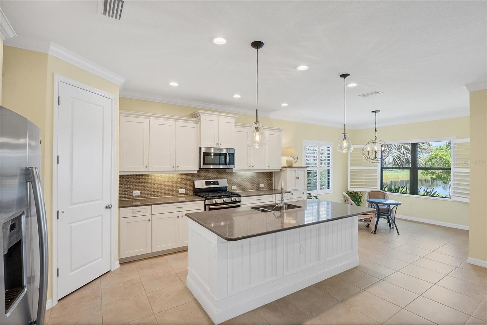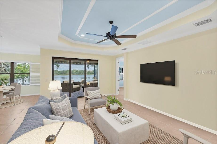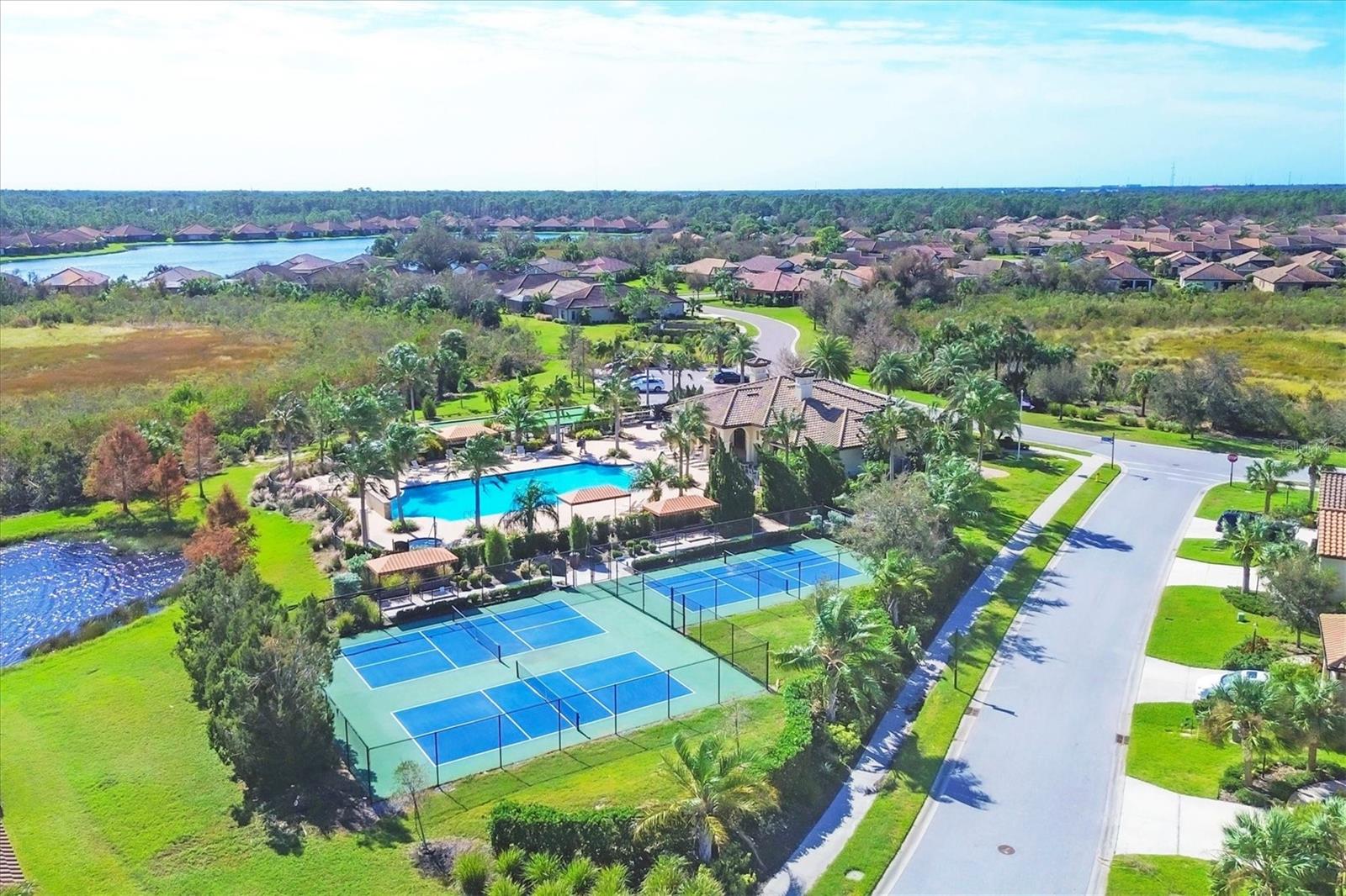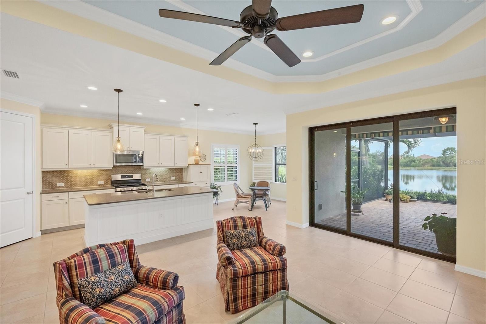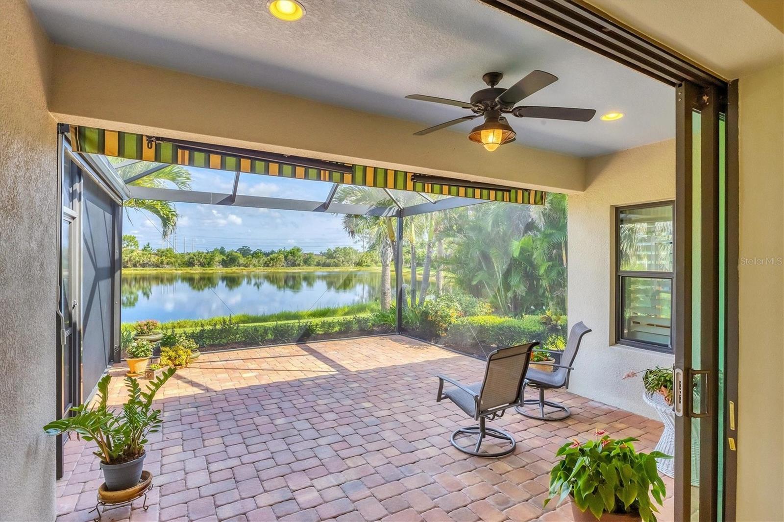 DON'T WAIT TO SEE THIS MAGNIFICENT HOME BEING OFFERED NOW!! Located on a short cul de sac street with little drive through traffic. Boasting a GORGEOUS LAKE VIEW from the extended pavered lanai with SPECTACULAR SUNSETS! Large lot has been transformeed with tropical trees and landscaping to create a peaceful and serene tropical oasis. Perfect for watching wild life. Inside this beautiful home you will find a great room open floor plan with 18" PORCELAIN TILE throughout main areas of home and hardwood in the den up front. Loaded with upgrades this home also features crown molding, tray ceilings, designer fans and fixtures, 4" PLANTATION SHUTTERS and 8' Doors throughout. Kitchen shines with upgraded cabinets, under cabinet lighting, extra recessed lighting, Zodiac counter tops, tile backsplash, stainless steel appliances, and the stove is GAS run for those chefs in the family. Gorgeous Lake views from all main rooms and master bedroom. Let the inside and outside flow together with POCKET SLIDERS TO LANAI. Lanai is pavered ( along with front walk) and extended, with CLEAR VIEW SCREENING to showcase the lake and tropical landscape. Night time is special with outside lighting to make your surroundings glow. If you are tired of the sunshine, there is a RETRACTABLE AWNING WITH LIGHTS, and a RETRACTABLE SIDE SCREEN for shade if desired. Back inside again, property offers 3BD/3BA/DEN. The extremely spacious master bedroom en suite has plenty of room for a king size bed , night stands, and a separate sitting area for reading or watching TV. En suite master bath offers dual sinks, walk in shower, 2 closets and linen closet. Two Guest bedrooms at other end of home for privacy. Guest bedroom 2 has an en suite bath also, perfect for longer staying guests. Separate Den/Office for those who want to work in the home. Eastern exposure in front provides tons of natural light to work with and you can shut the world out with GLASS FRENCH DOORS while still keeping an eye on the comings and goings. Also featured is a whole laundry room with wash sink and hanging/storage racks. 2 Car garage with wall mounts and storage racks. NO REASON TO WORRY ABOUT HURRICANES, HOME WAS BUILT WITH HURRICANE IMPACT WINDOWS AND PROPERTY COMES WITH WHOLE HOUSE KOHLER GENERATOR IF THE LIGHTS DO FLICKER. Electrical system was upgraded. Check out the 3D walk through tour at: https://my.matterport.com/show/?m=vVBf6oLXSd6 Milano is a FANTASTIC GATED COMMUNITY, offering Clubhouse, heated swimming pool, picklball courts, tennis courts, bocce ball, Fire Pit gathering area, dog park, and Myakka River Nature Trails for walking. LOW HOA'S. NO CDD. Located minutes to Downtown Venice, Venice Beach, shopping, restaurants, theaters, outdoor activities, Nokomis Beach, Casey Key, and so much more. The new shops and Atlanta Braves spring training facility is not far away. Up in Sarasota visit the many sights to see at Mote Marine, Selby Gardens, Ringling Museum, and a thriving art center on Main St. Sarasota Airport is just a short drive along with the UTC Mall and shops. Highways are just around the corner. COME SEE THIS BEAUTIFUL HOME NOW BEFORE IT IS GONE!!